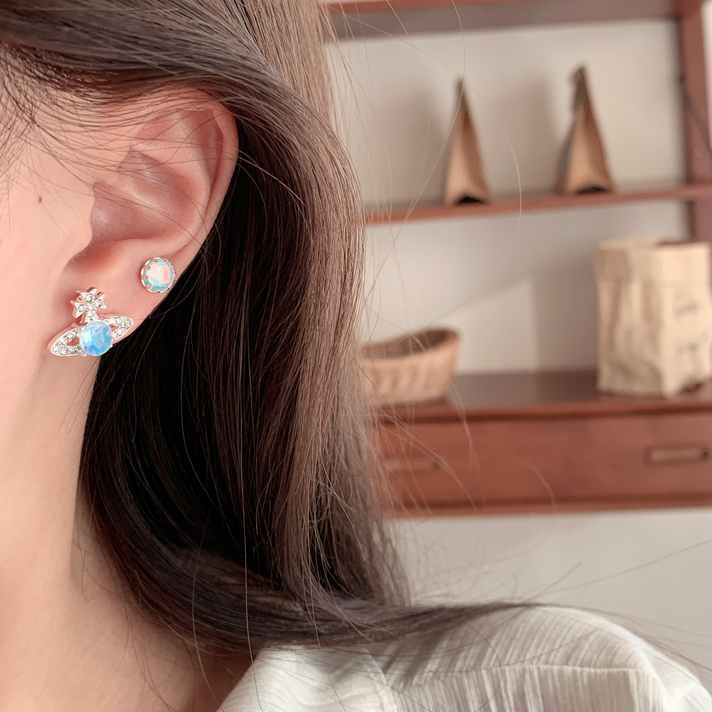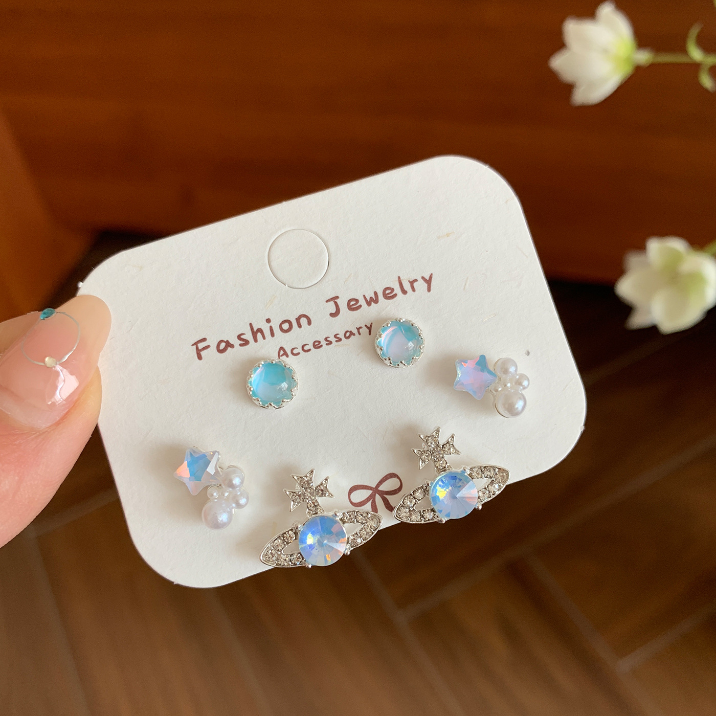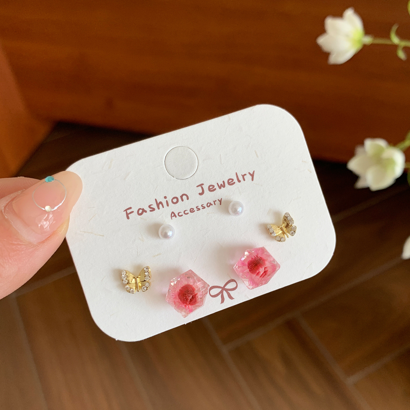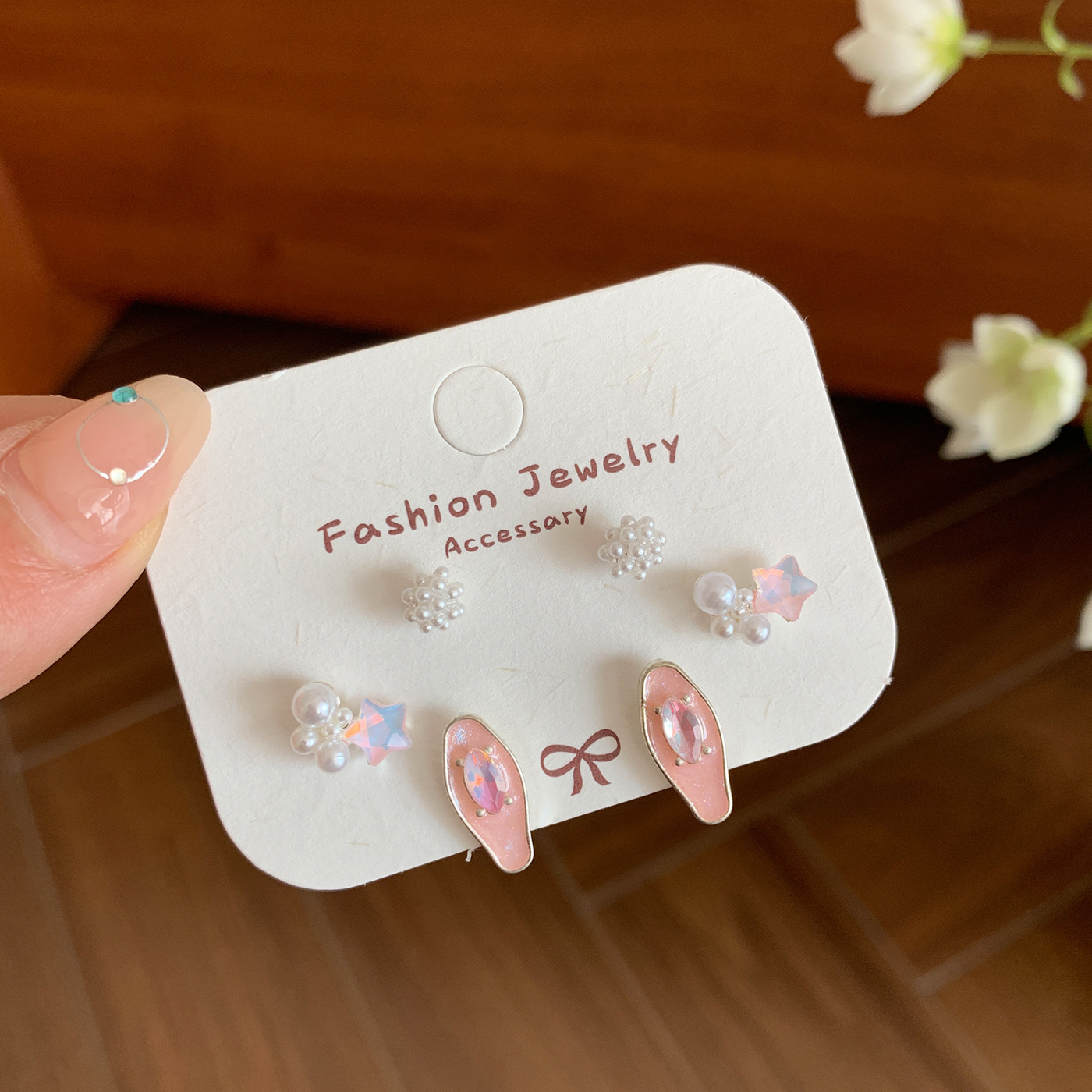 卡通滴油彩色小熊花花耳钉套装女银针小众设计高级感可爱学生耳饰