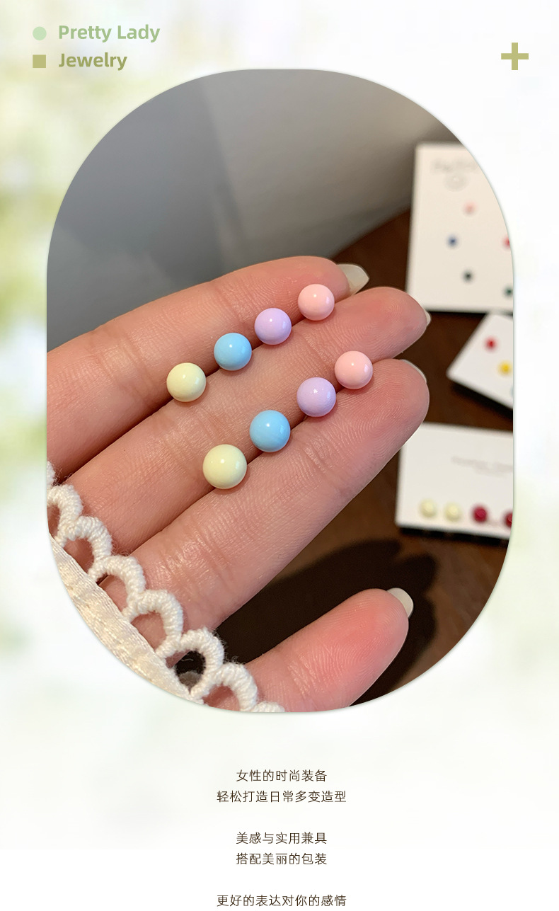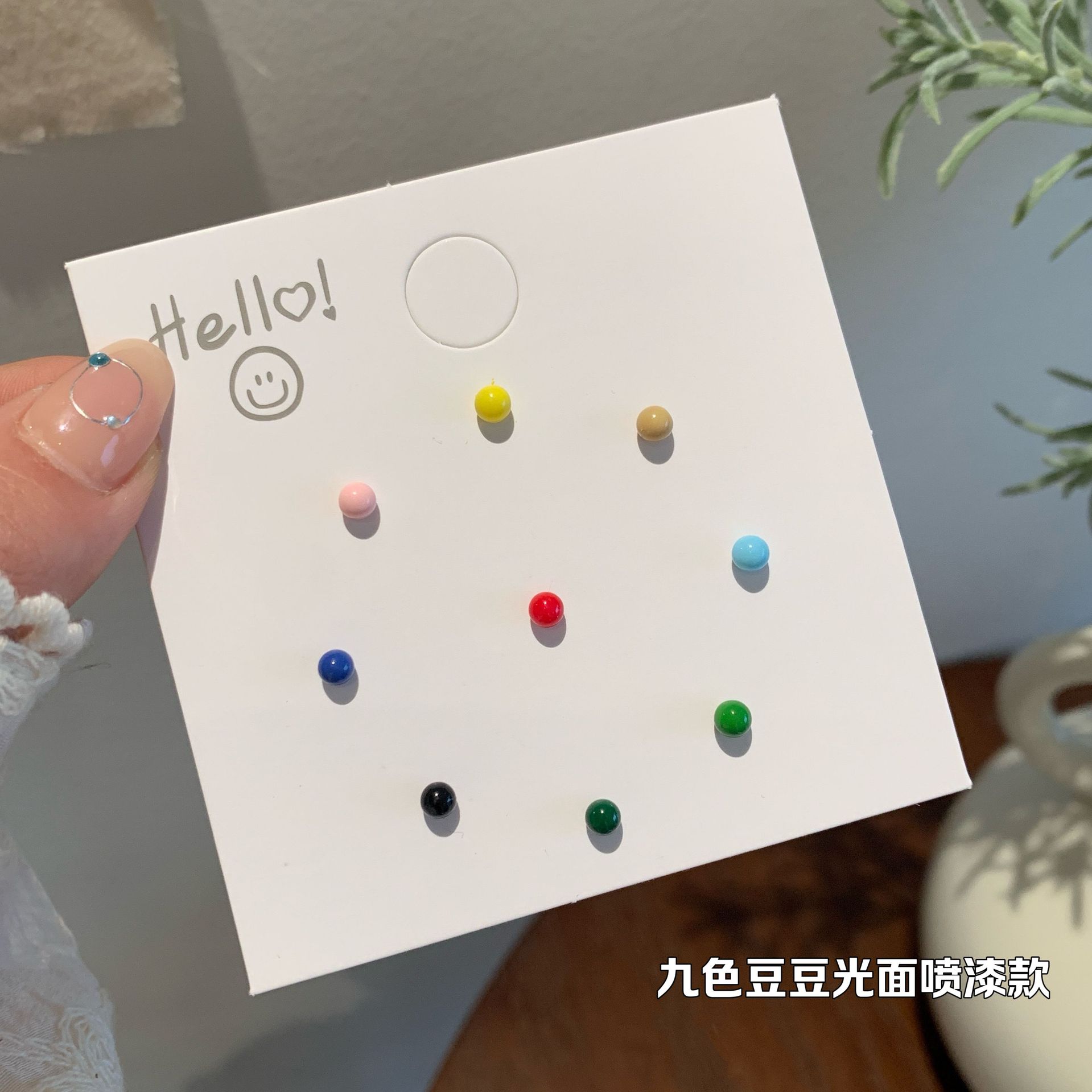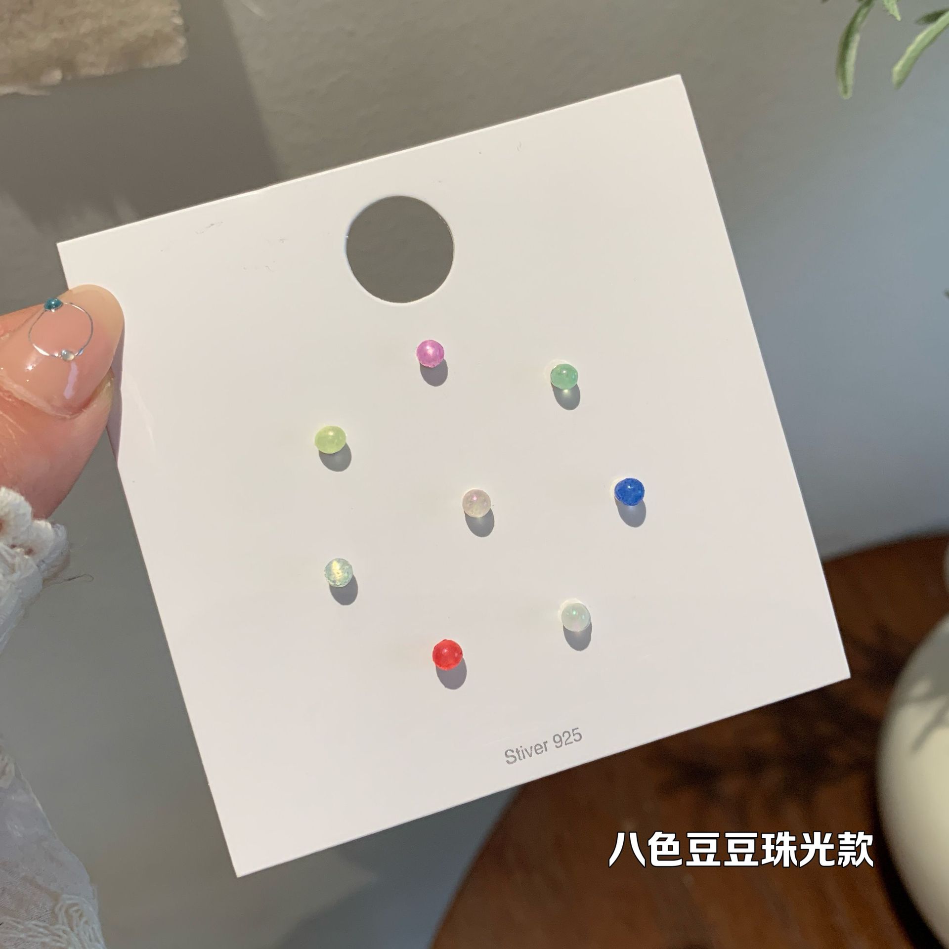 彩色迷你滴油豆豆耳钉套装女银针养耳洞耳骨钉小巧学生百搭耳饰
