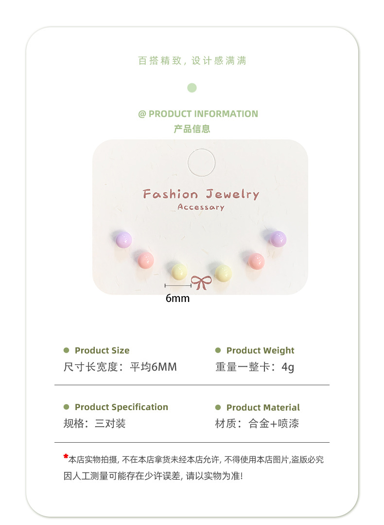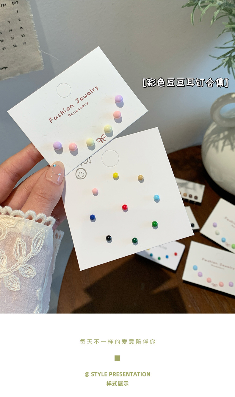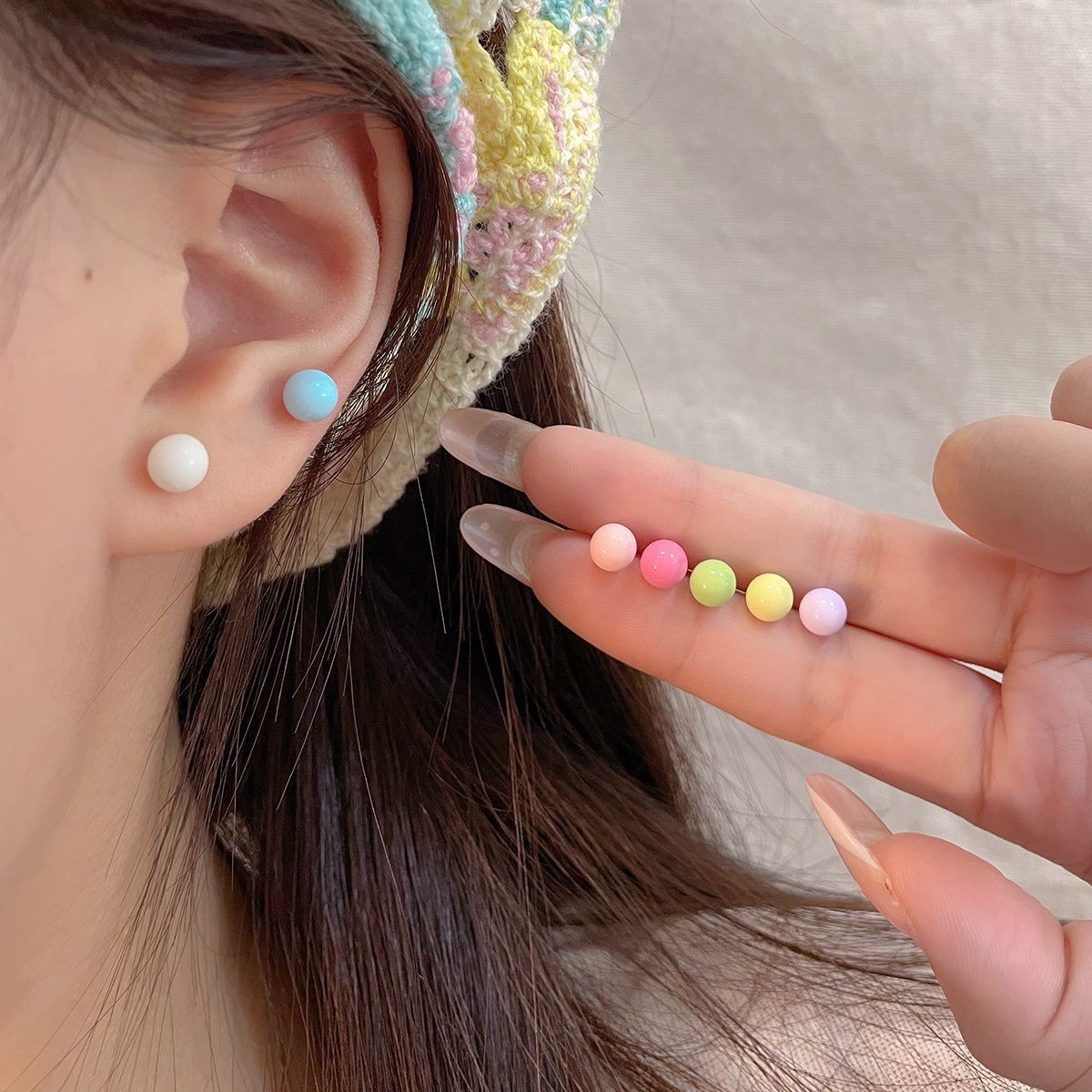 彩色迷你滴油豆豆耳钉套装女银针养耳洞耳骨钉小巧学生百搭耳饰
