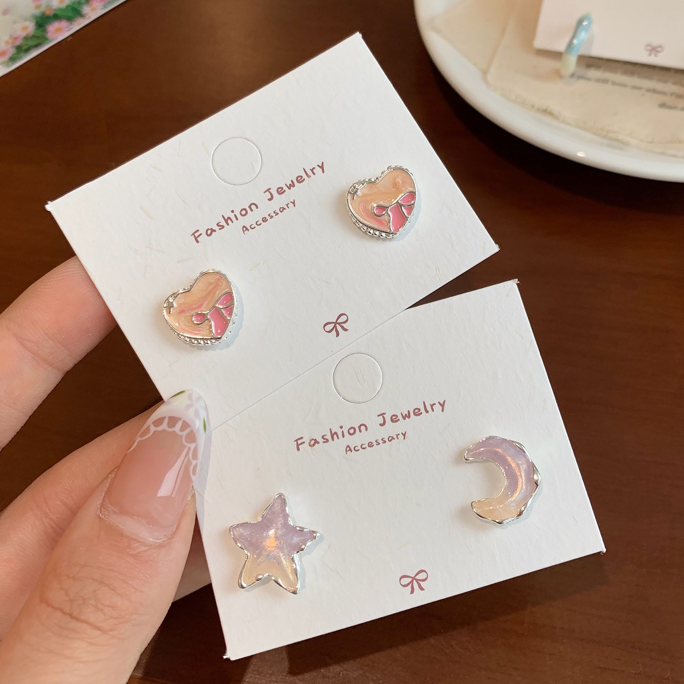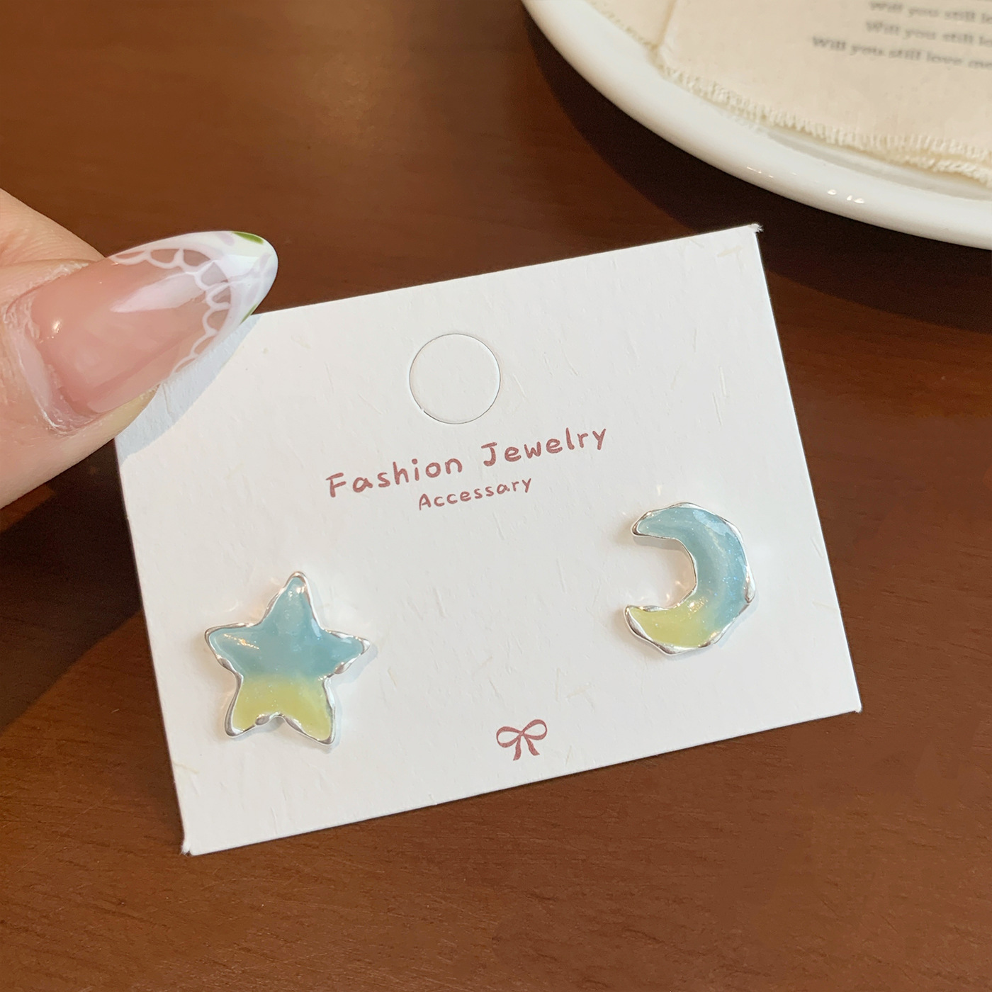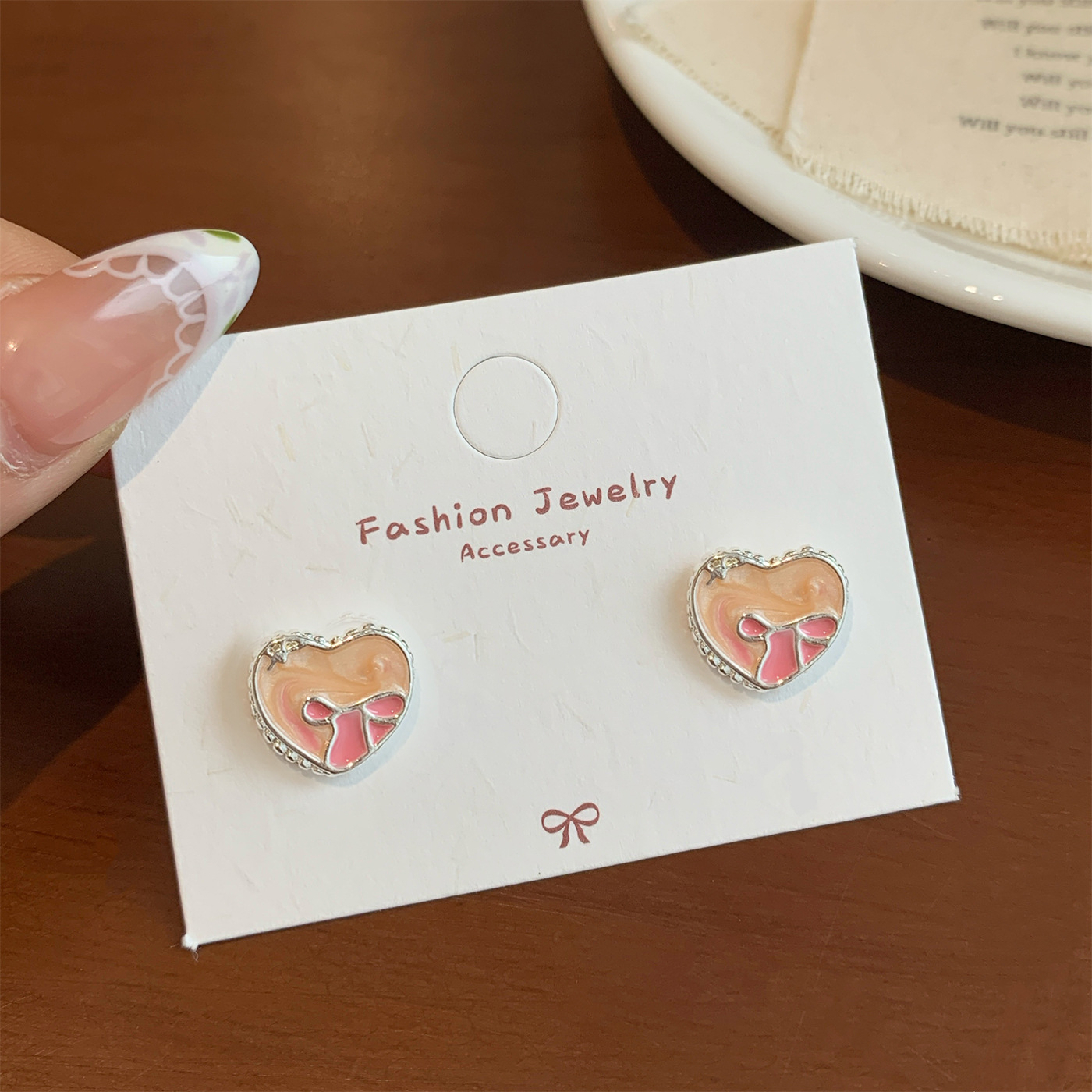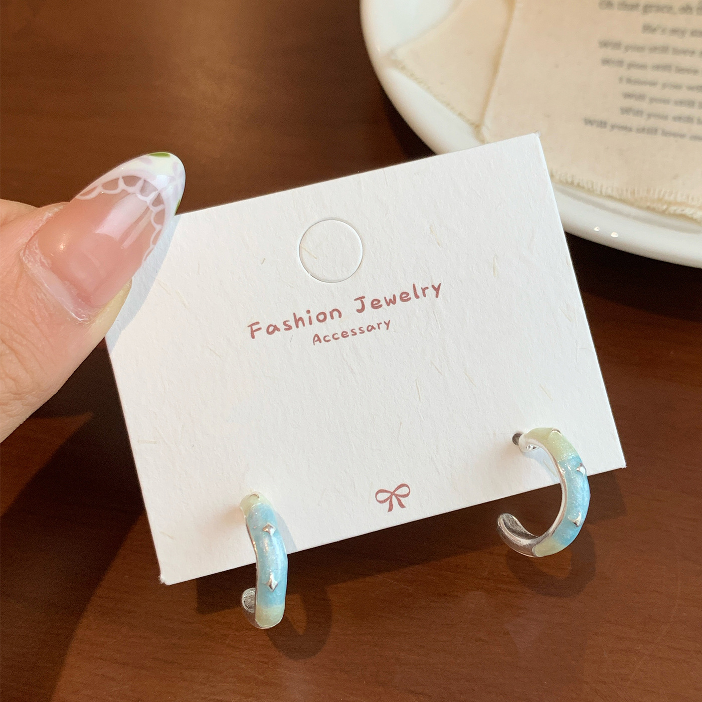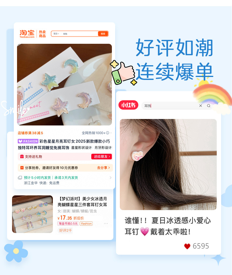 新款滴油炫彩晕染爱心蝴蝶结C圈耳钉女银针星星甜美精致百搭耳饰