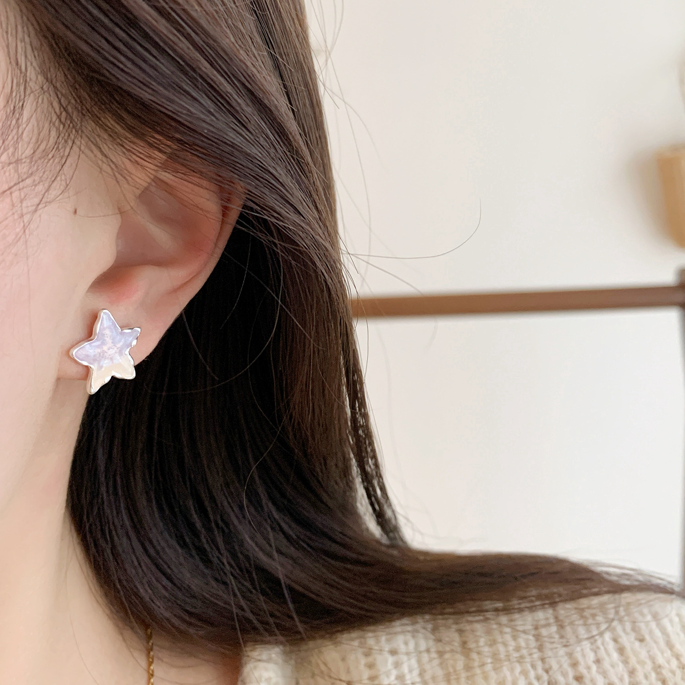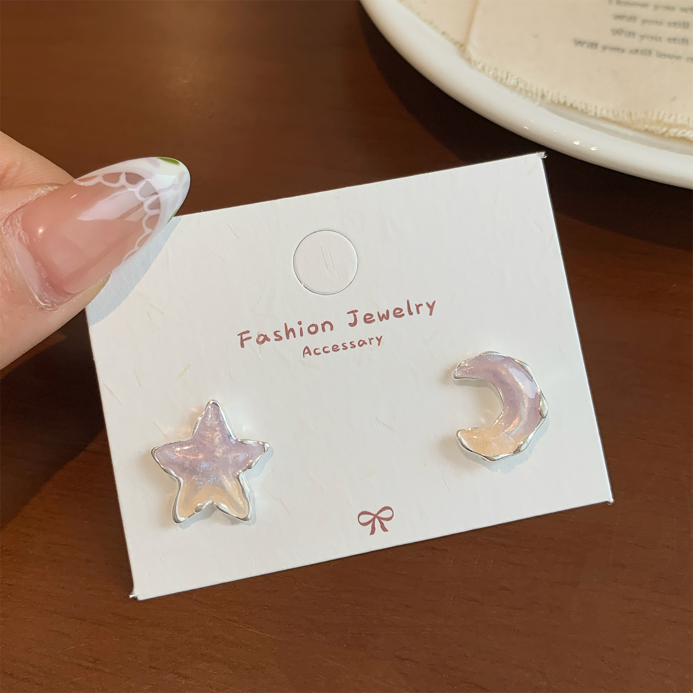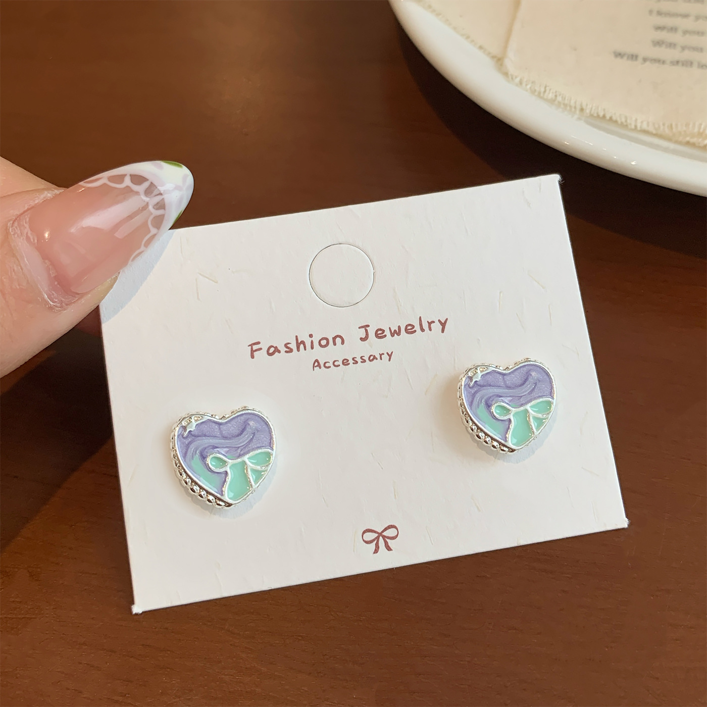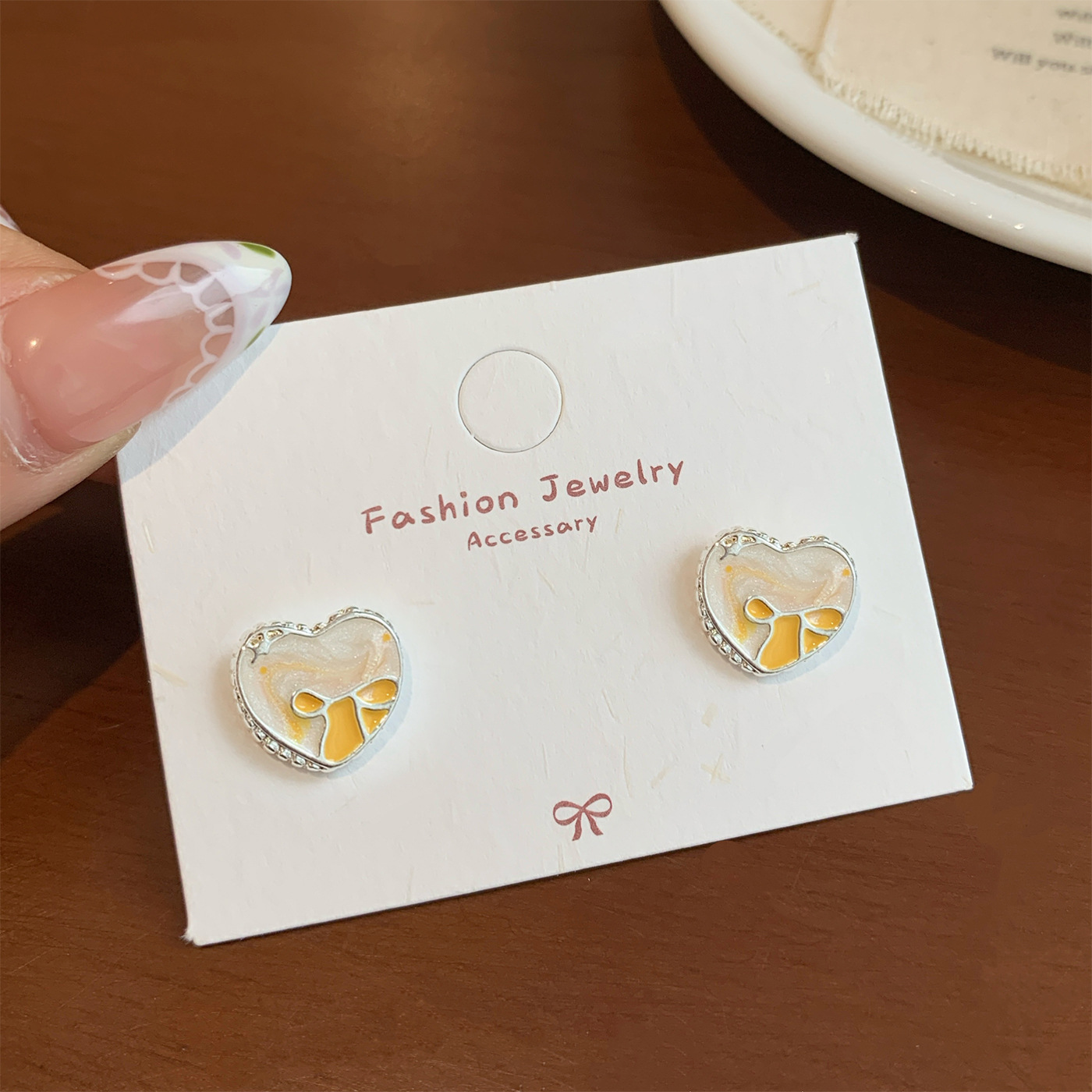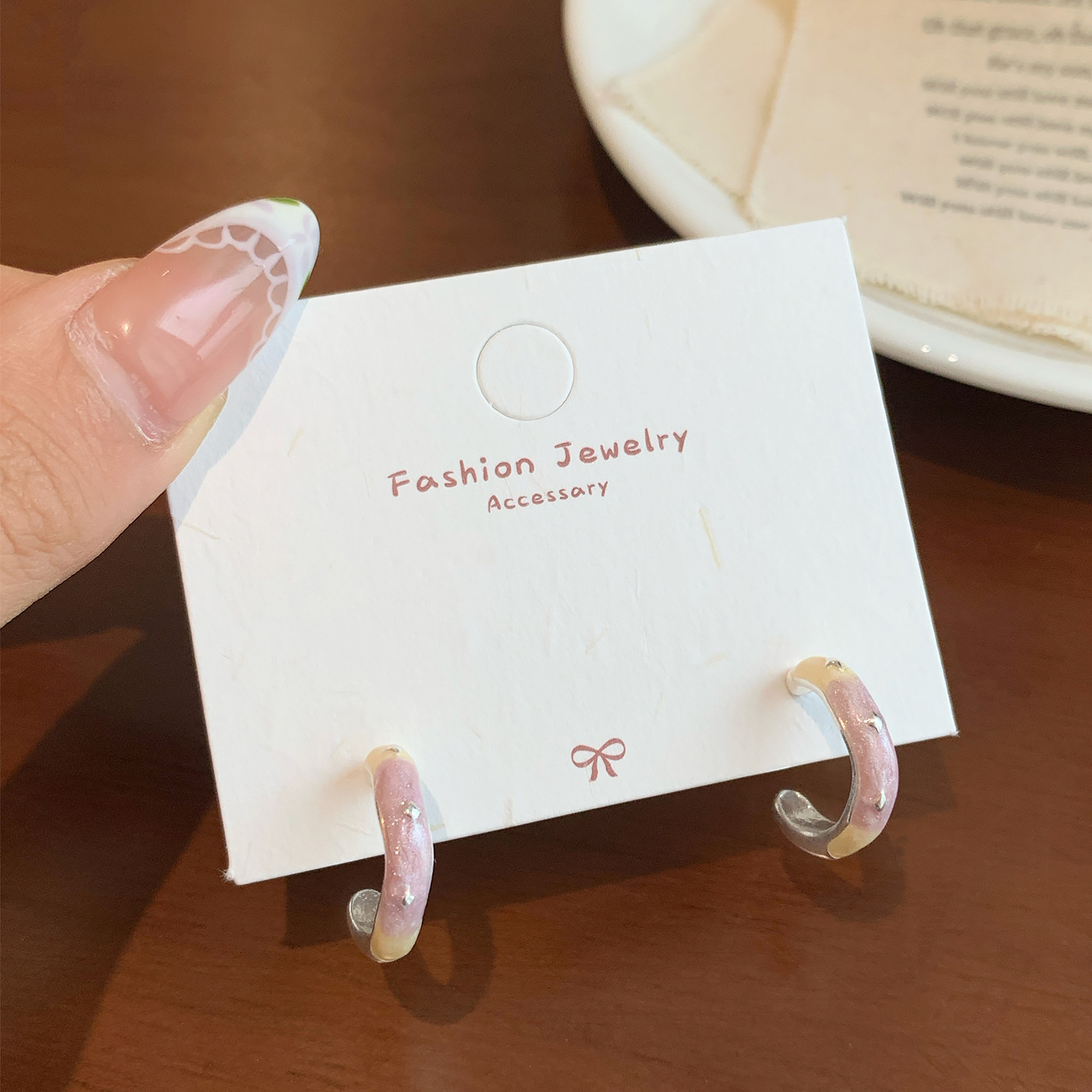新款滴油炫彩晕染爱心蝴蝶结C圈耳钉女银针星星甜美精致百搭耳饰