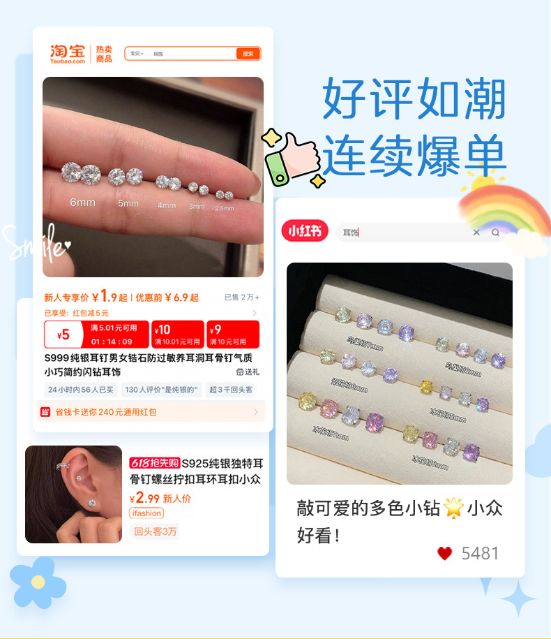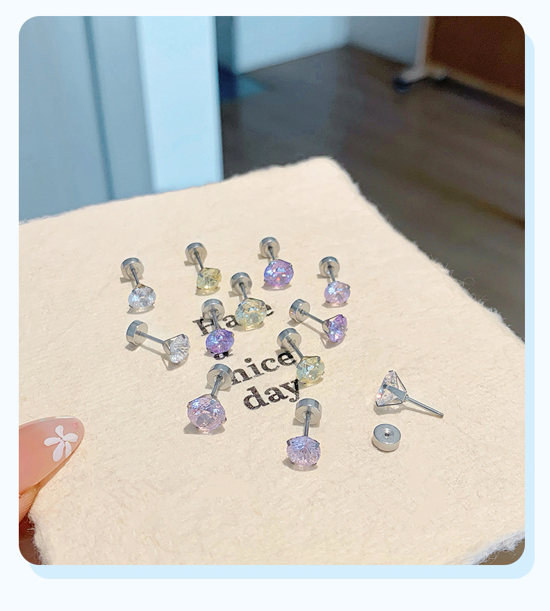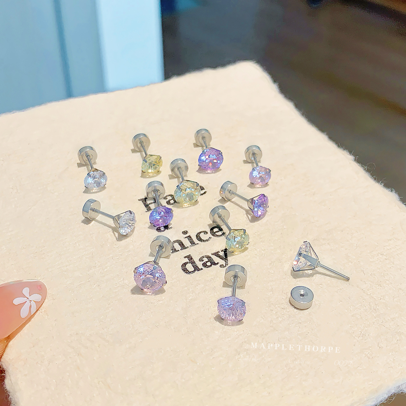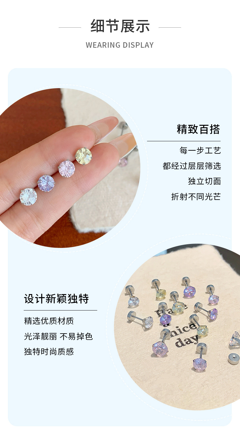 爆闪四爪锆石螺旋款耳骨钉女小巧简约个性锆石精致养耳洞华子耳钉