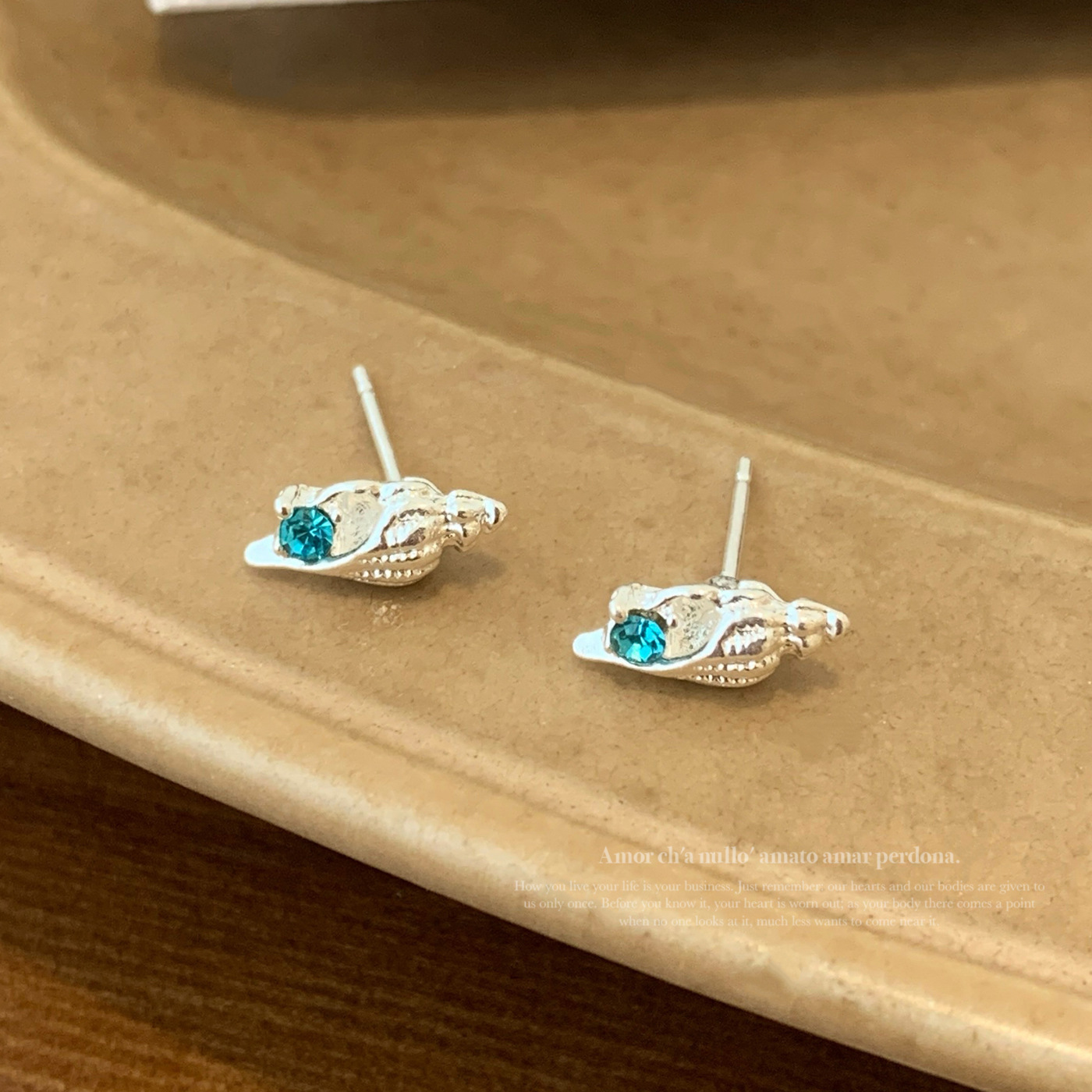 海洋蓝色锆石海星海螺耳钉女银针夏日小众设计感沙滩度假风耳饰