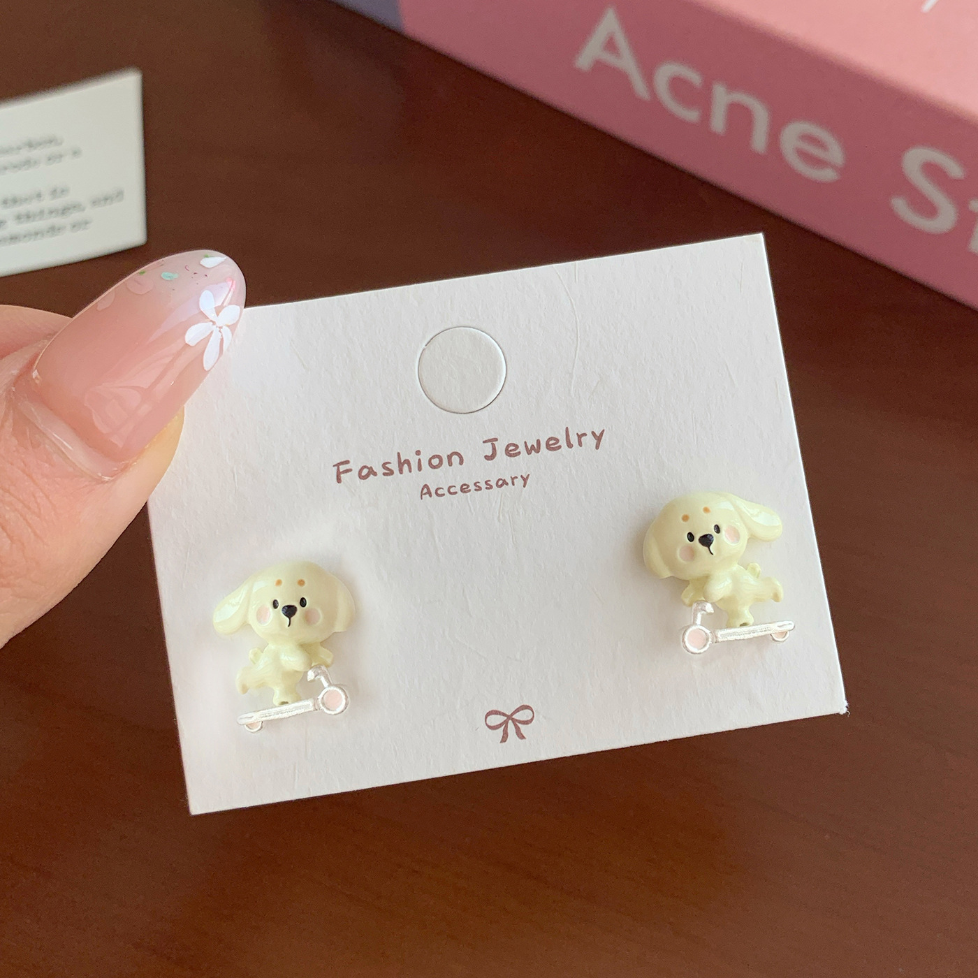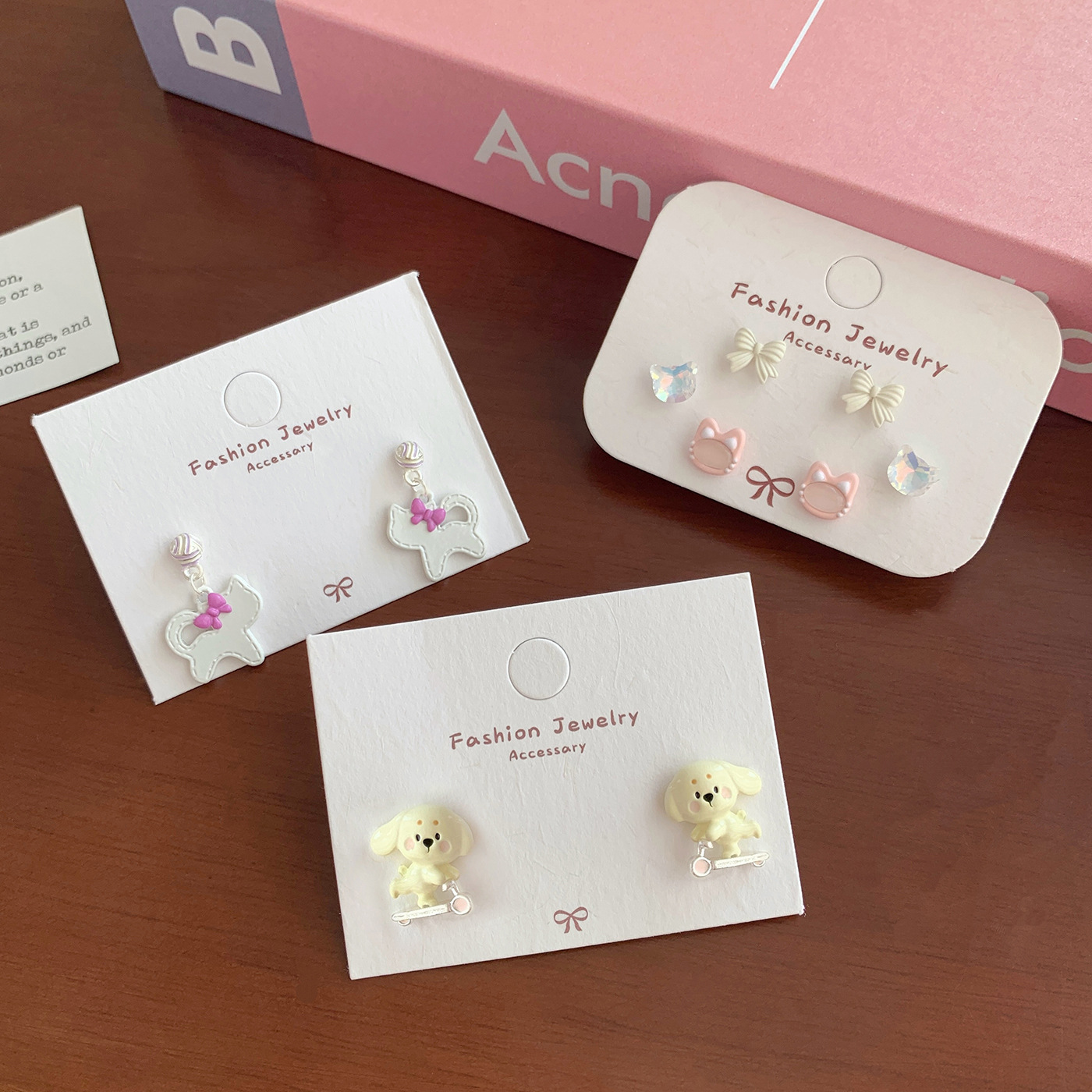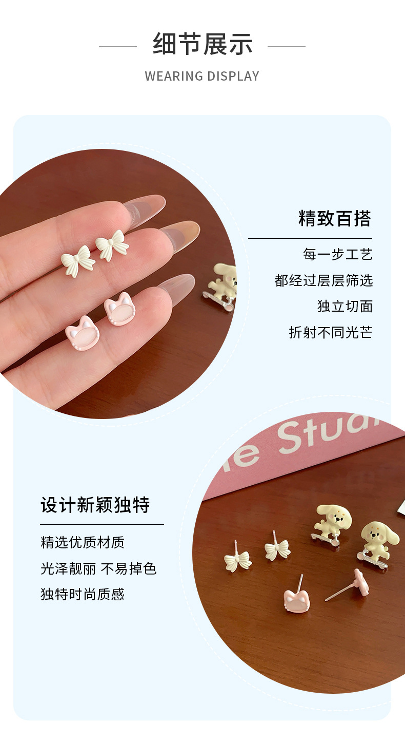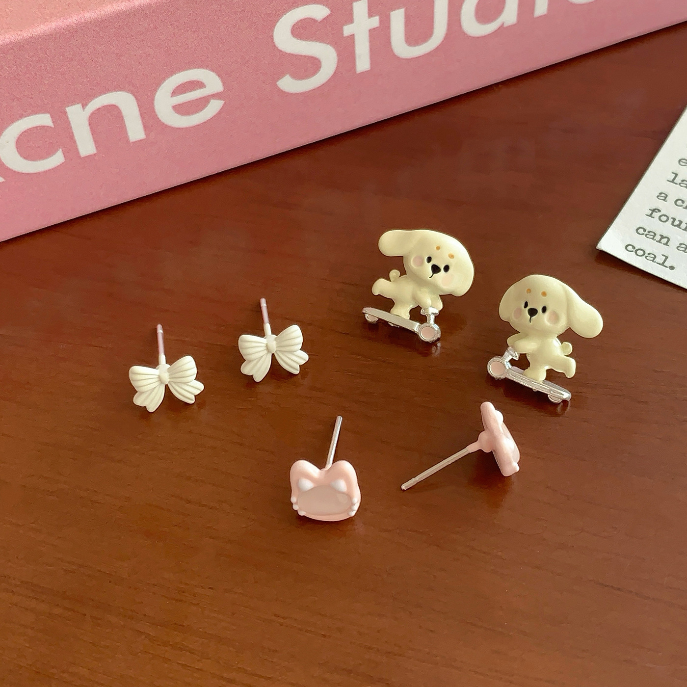 小清新可爱粉色猫咪耳钉套装女卡通动物滑板车小狗童趣学生耳钉