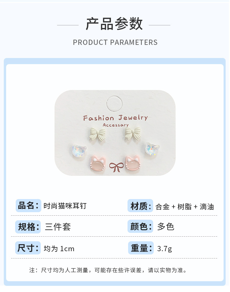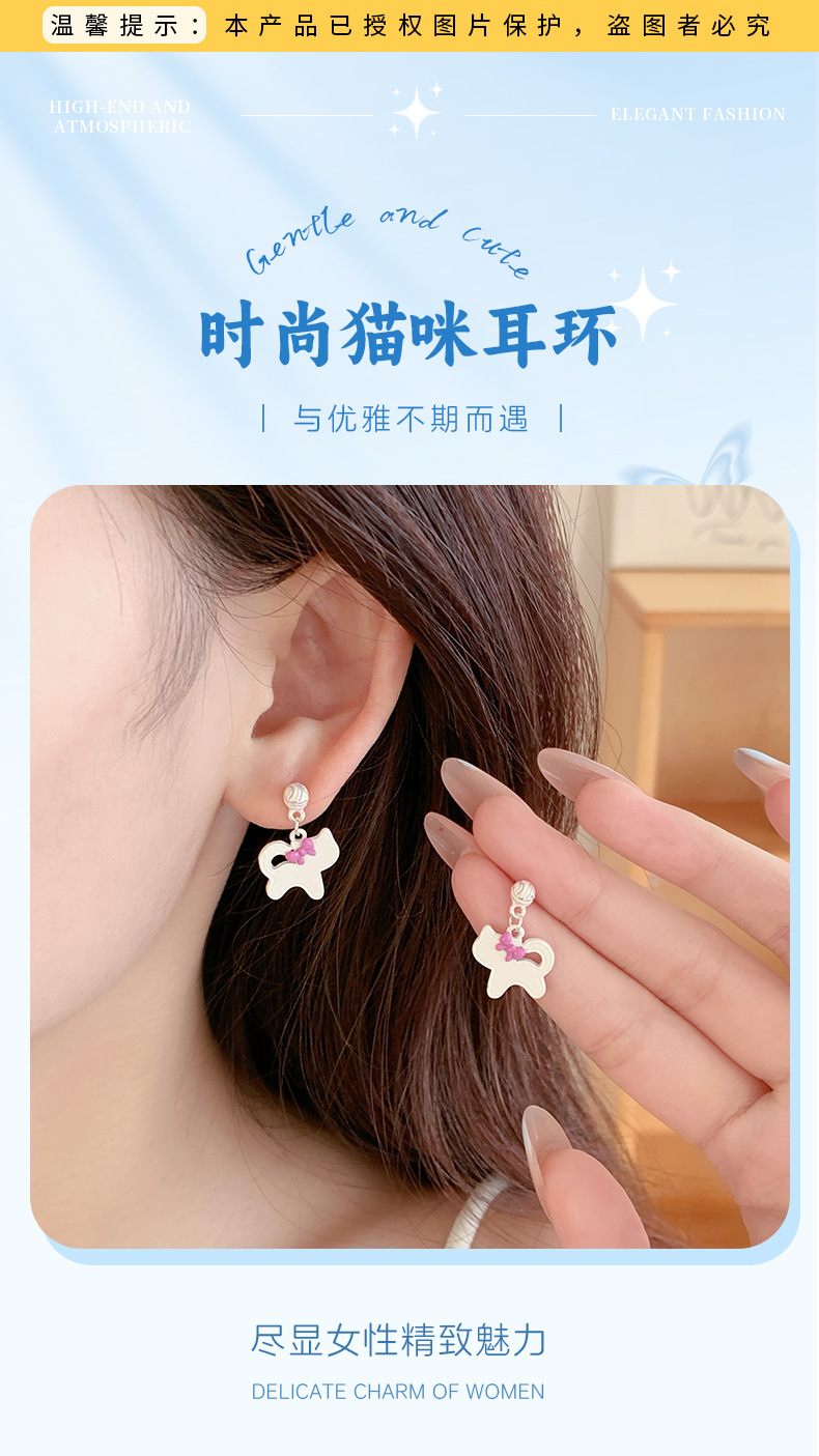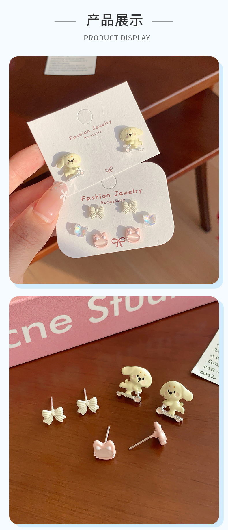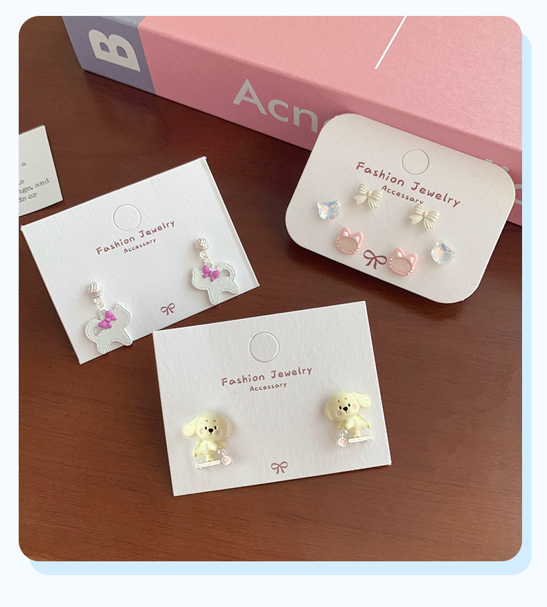 小清新可爱粉色猫咪耳钉套装女卡通动物滑板车小狗童趣学生耳钉