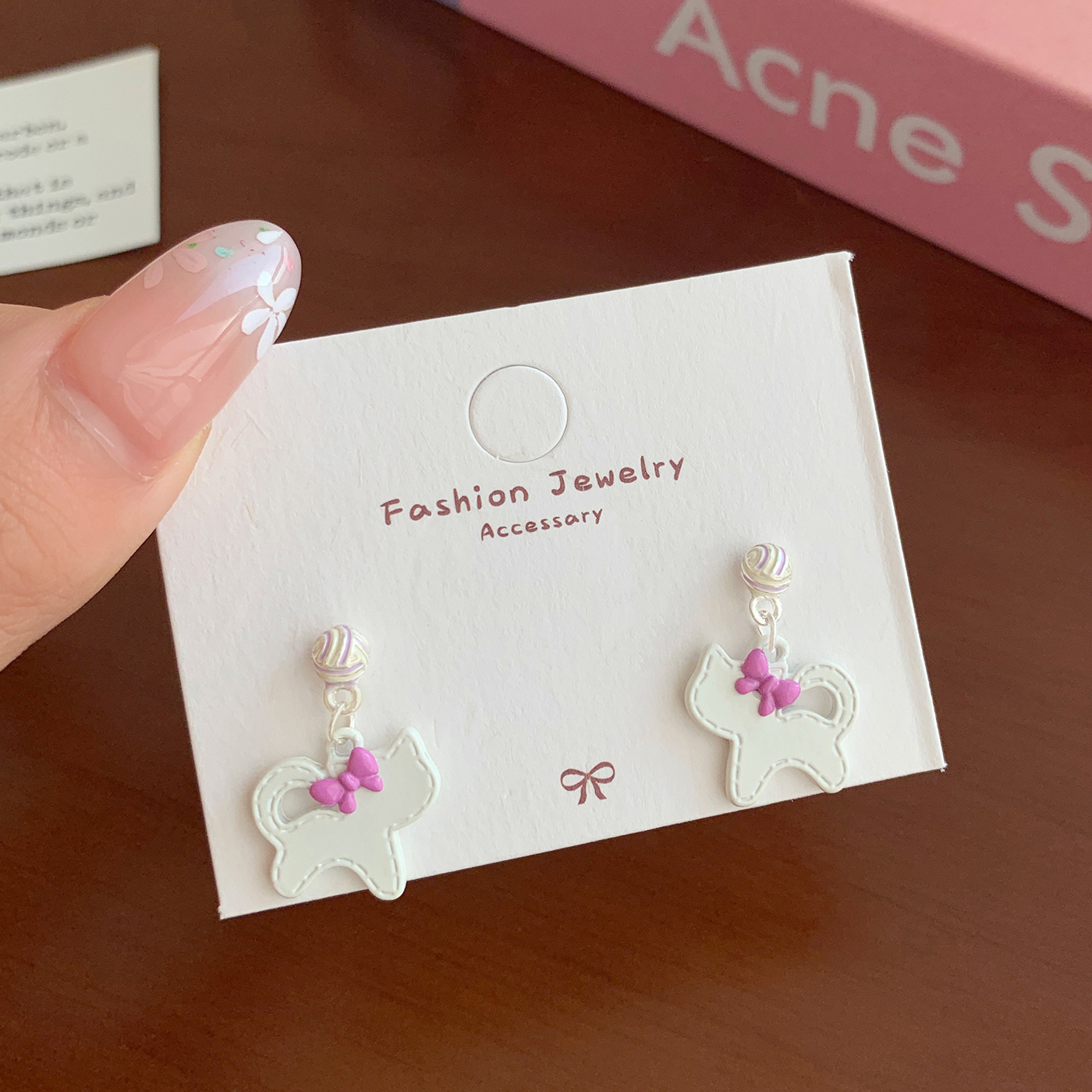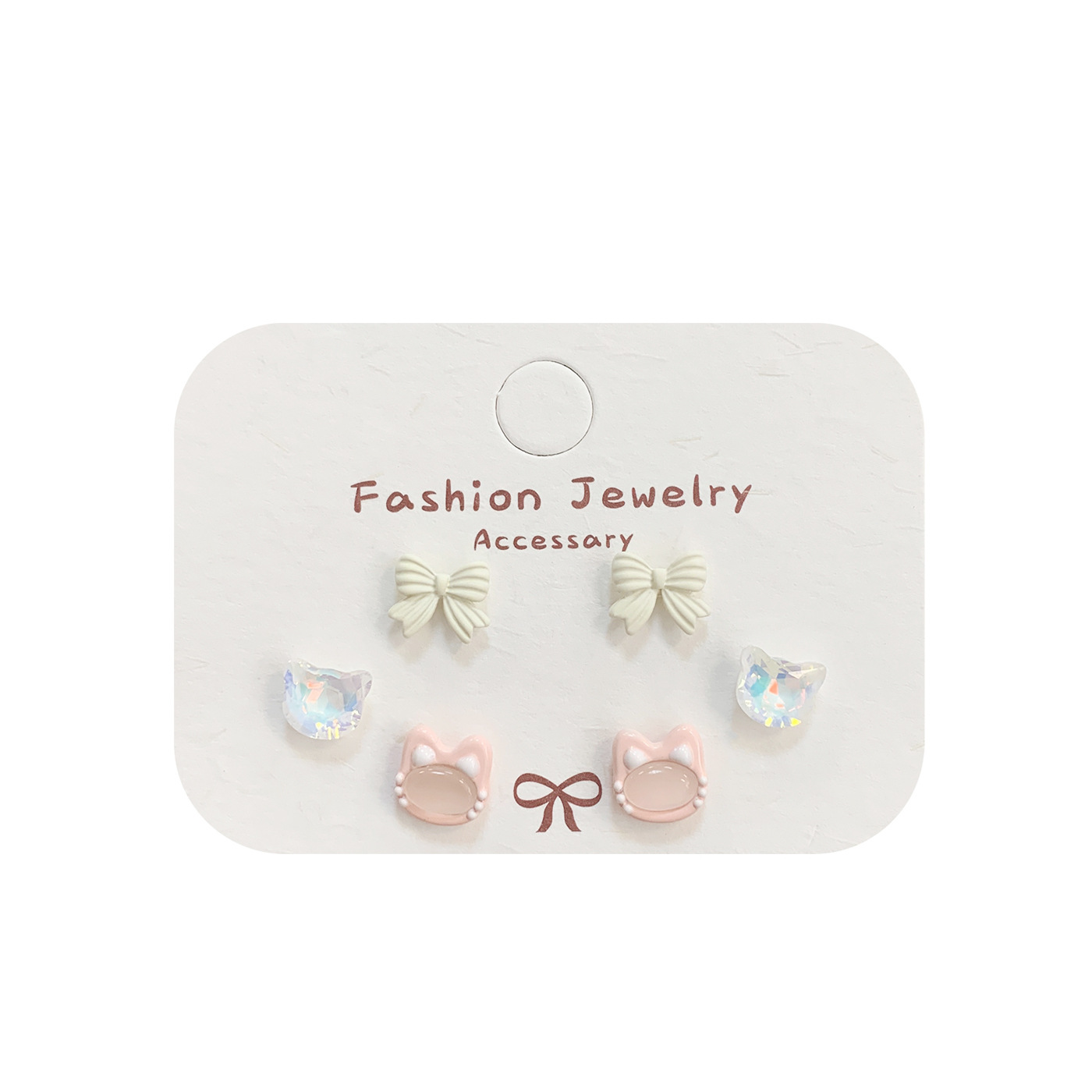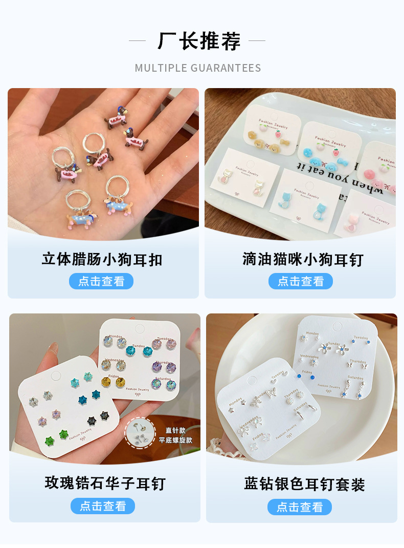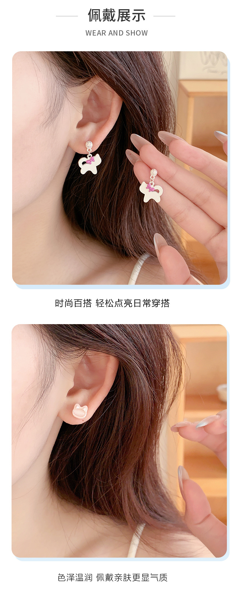 小清新可爱粉色猫咪耳钉套装女卡通动物滑板车小狗童趣学生耳钉