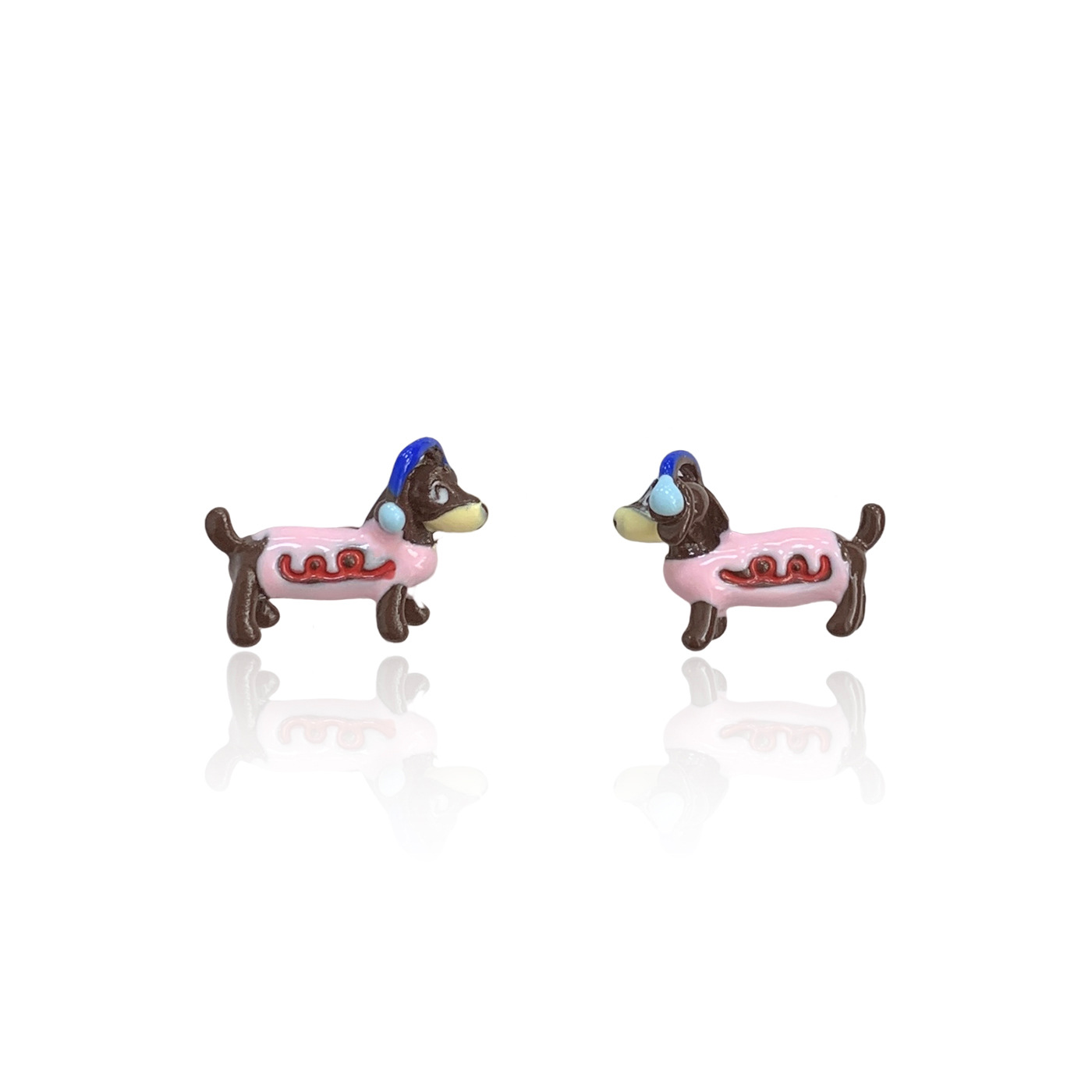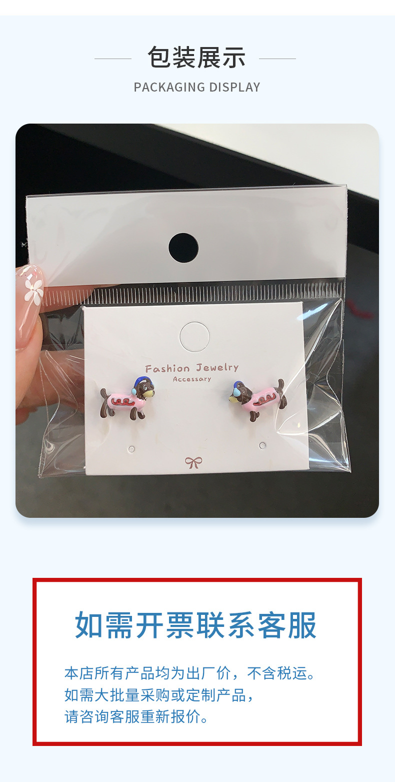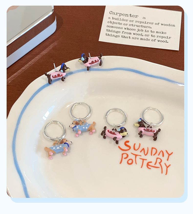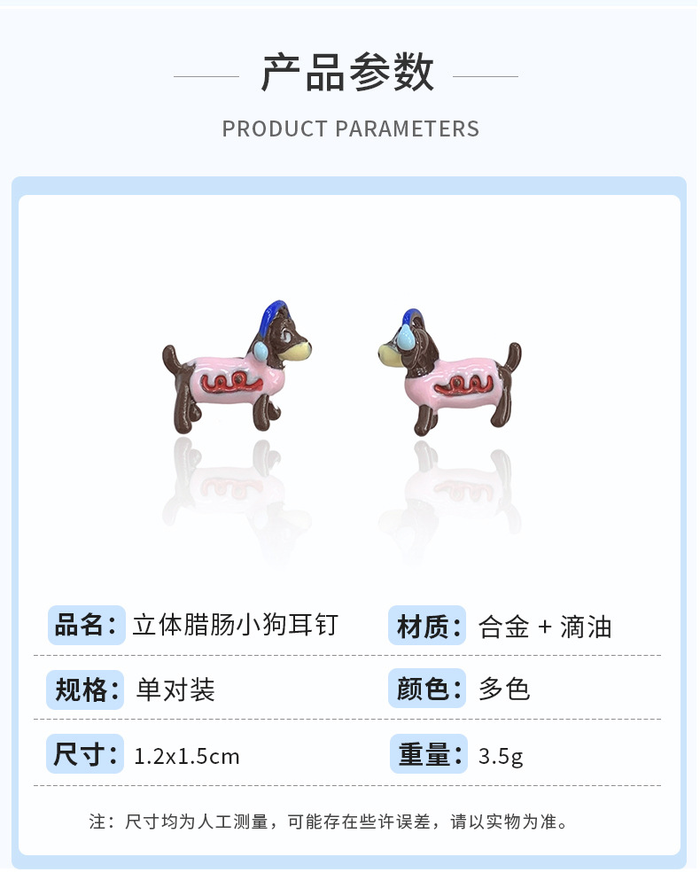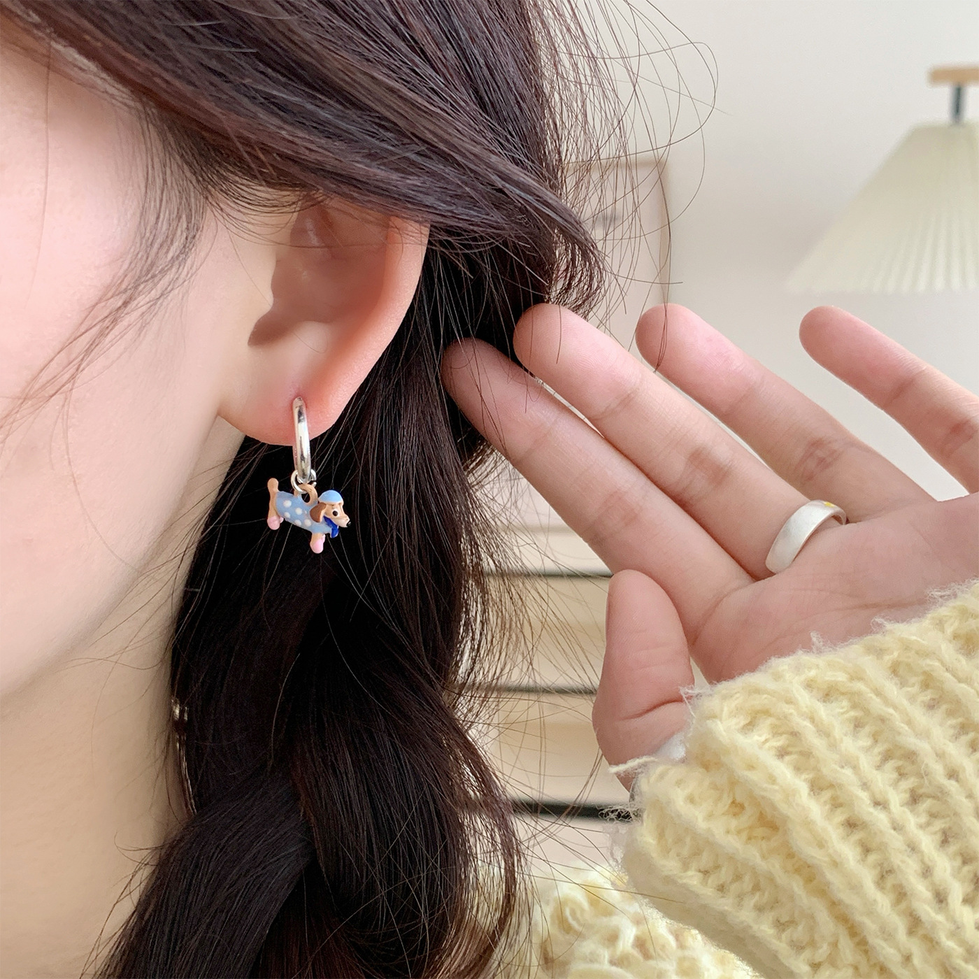 新款卡通彩色滴油腊肠狗耳扣女可爱精致小众设计感童趣学生耳饰