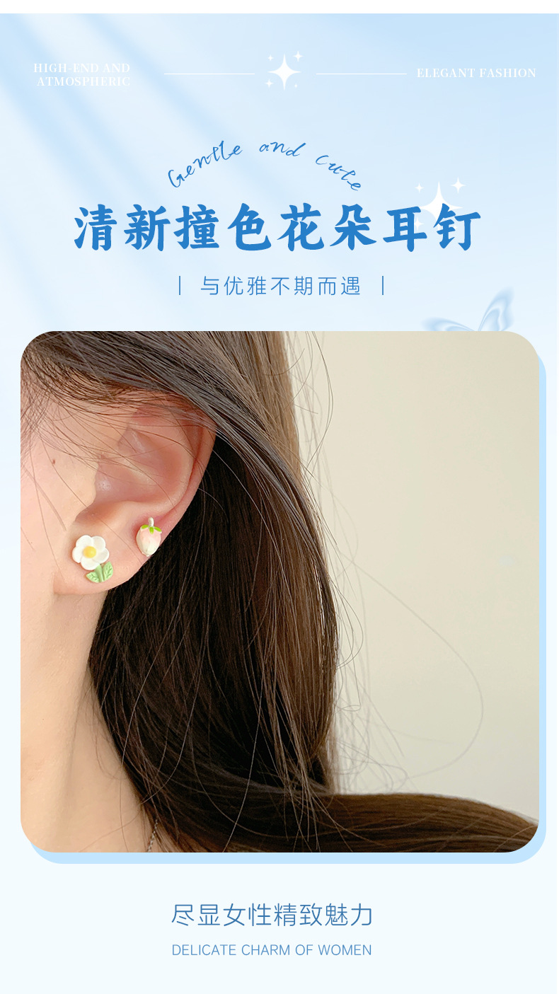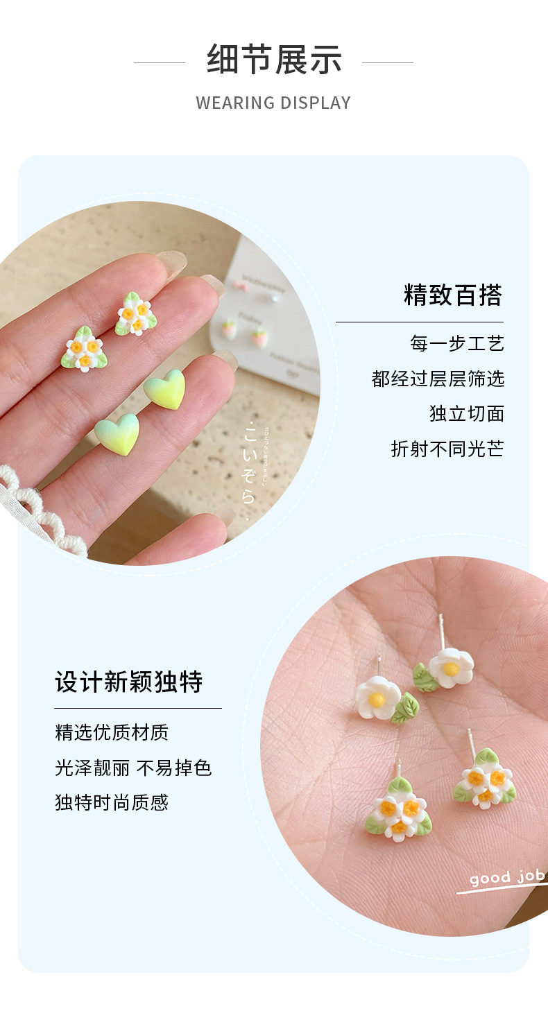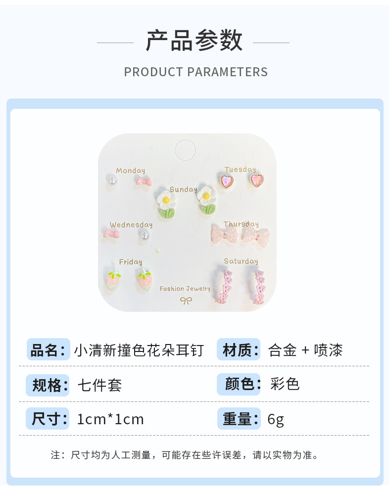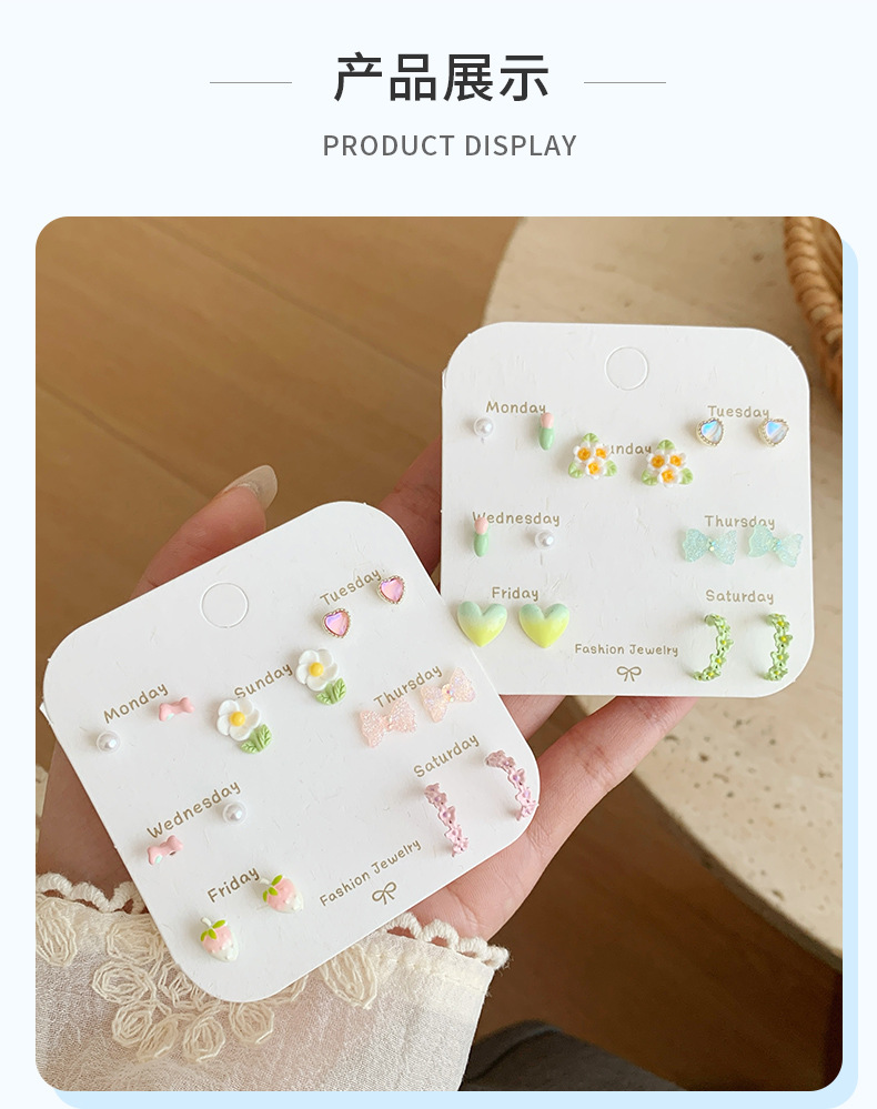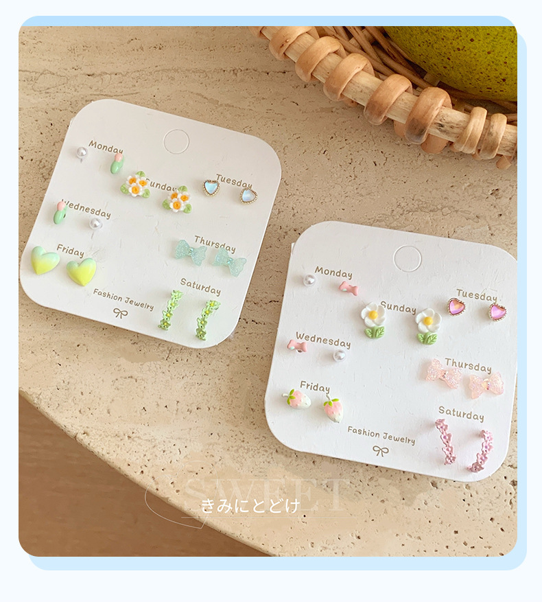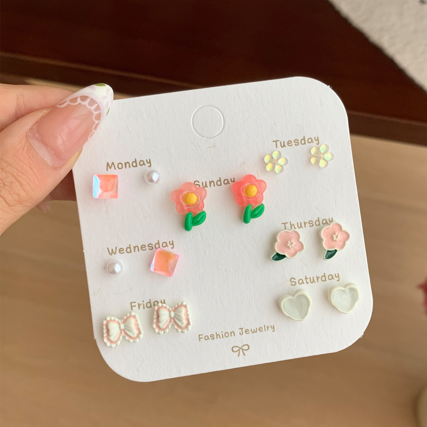 春夏森系ins风清新花朵耳钉一周银针少女心新款学生耳饰套装批发