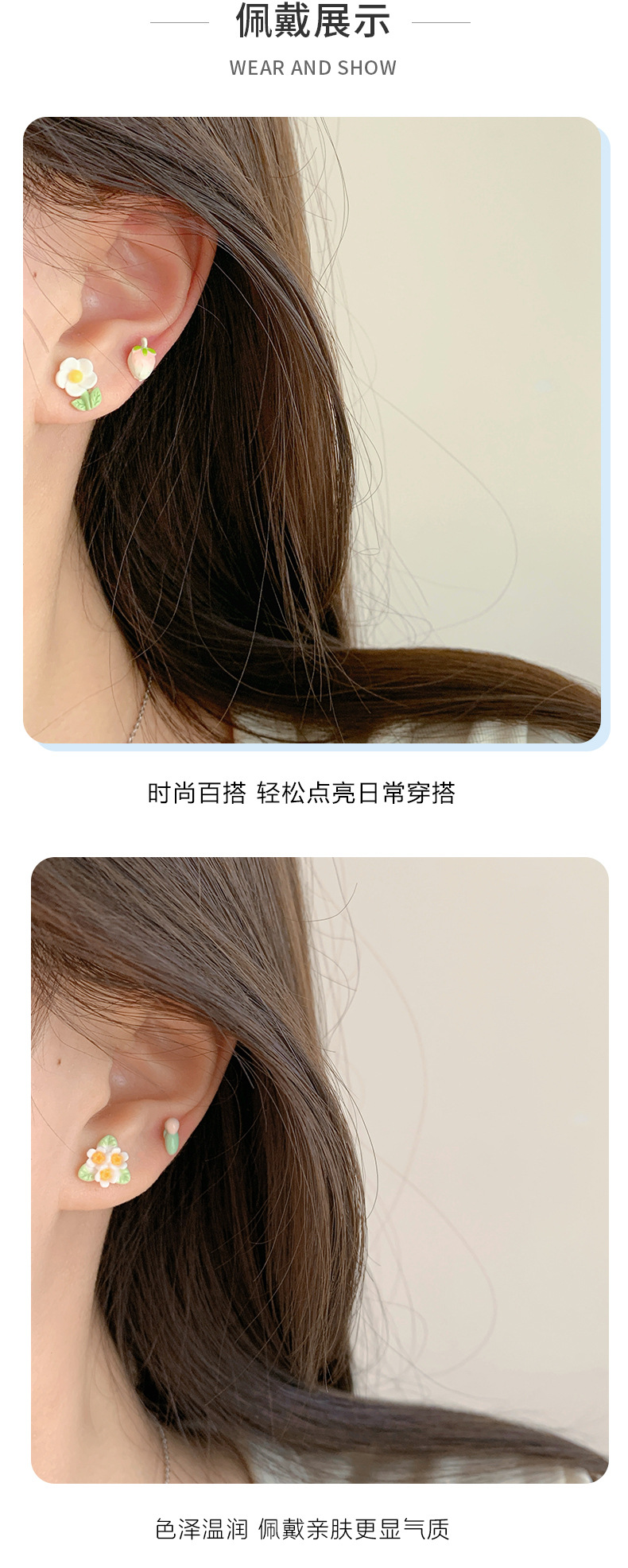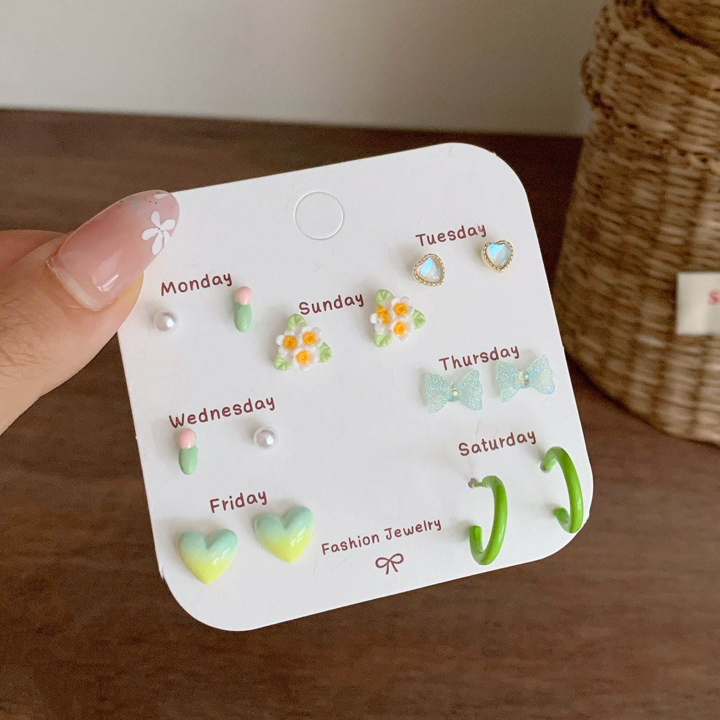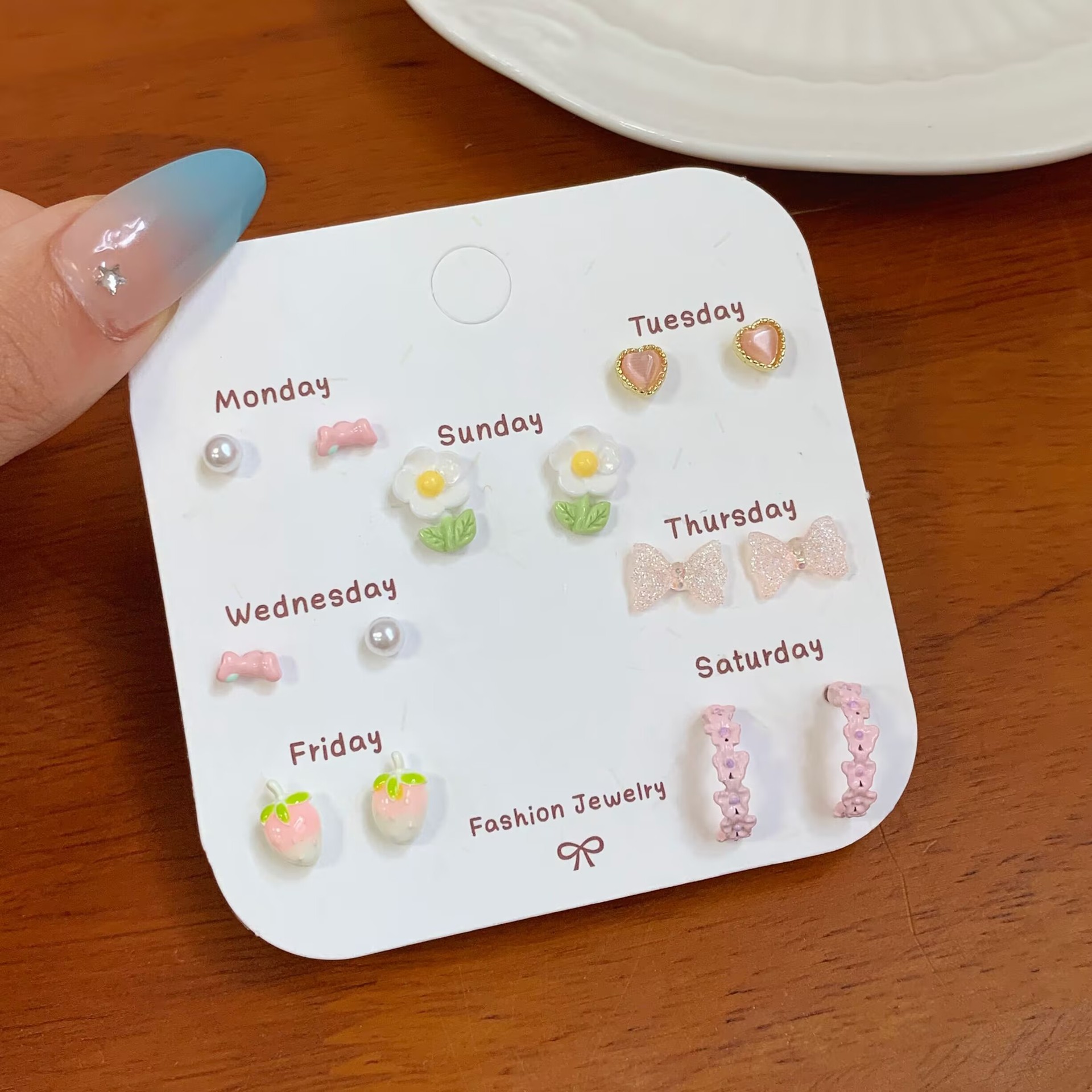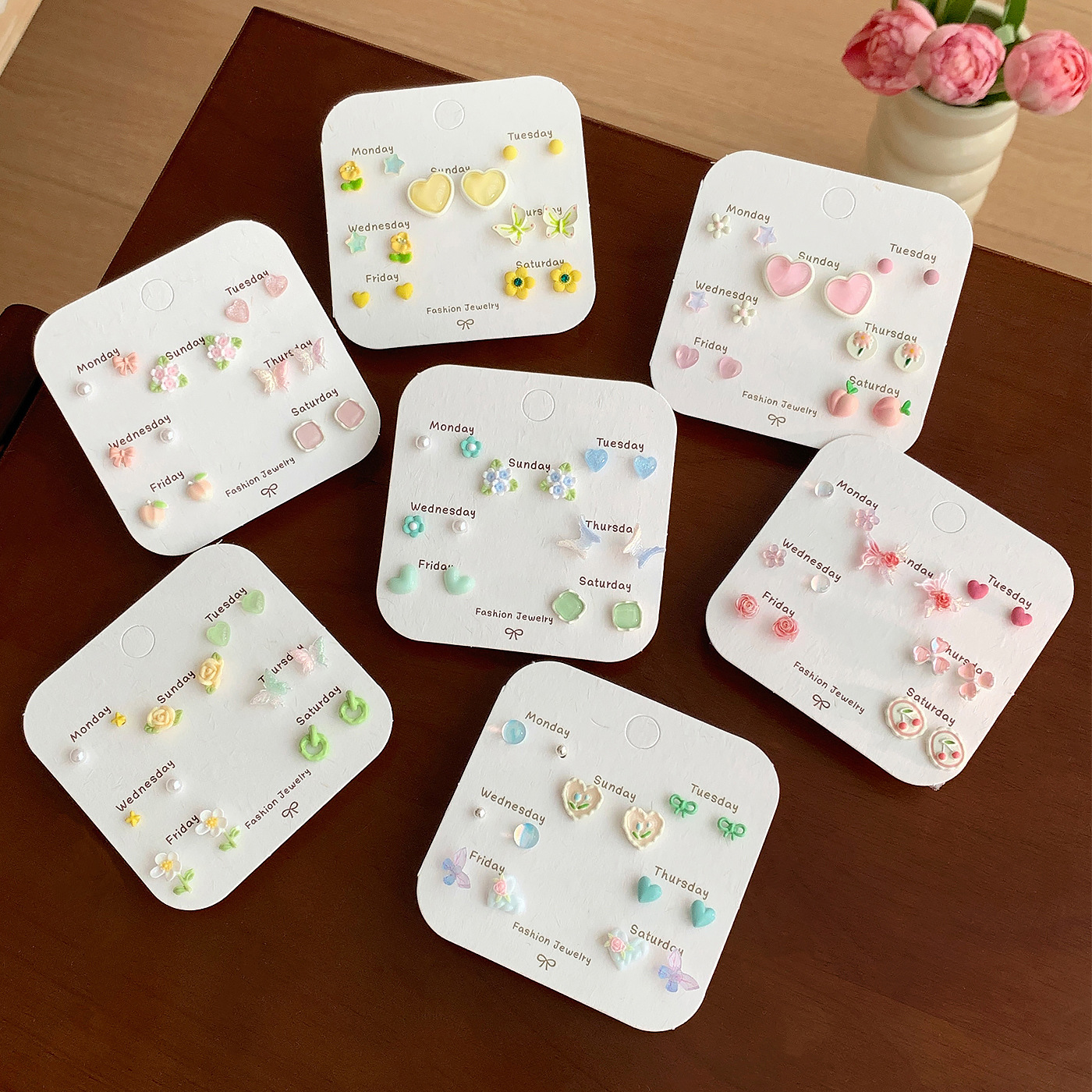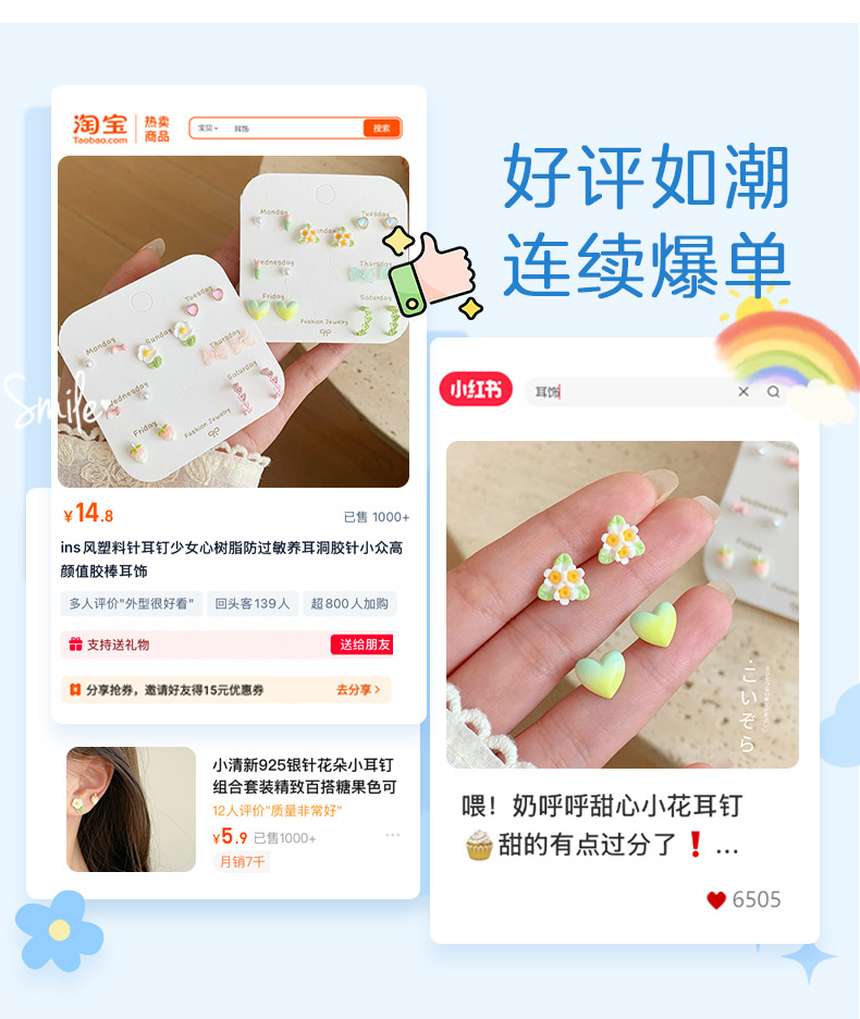 春夏森系ins风清新花朵耳钉一周银针少女心新款学生耳饰套装批发