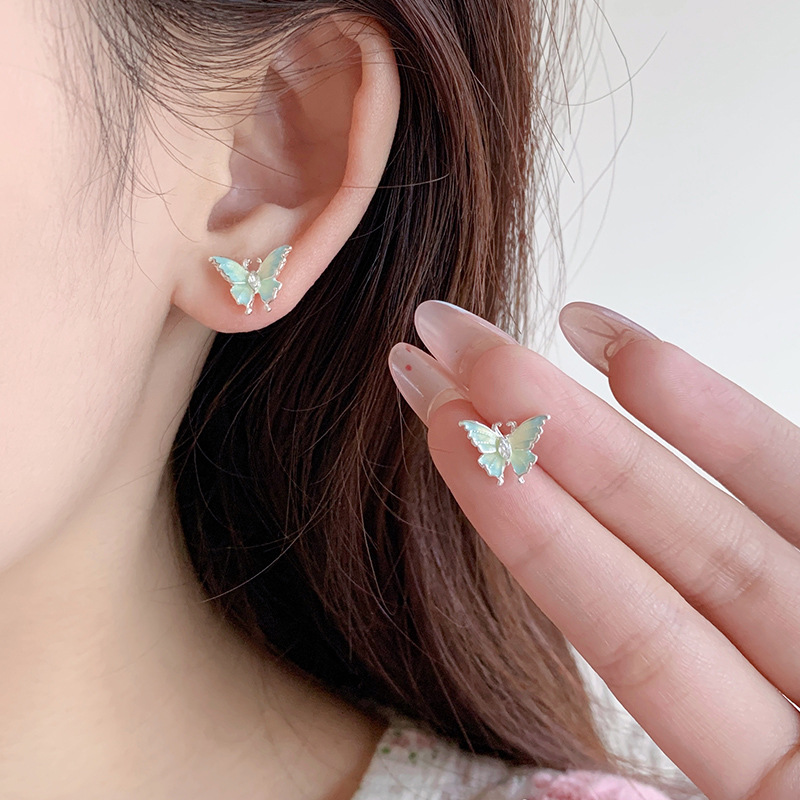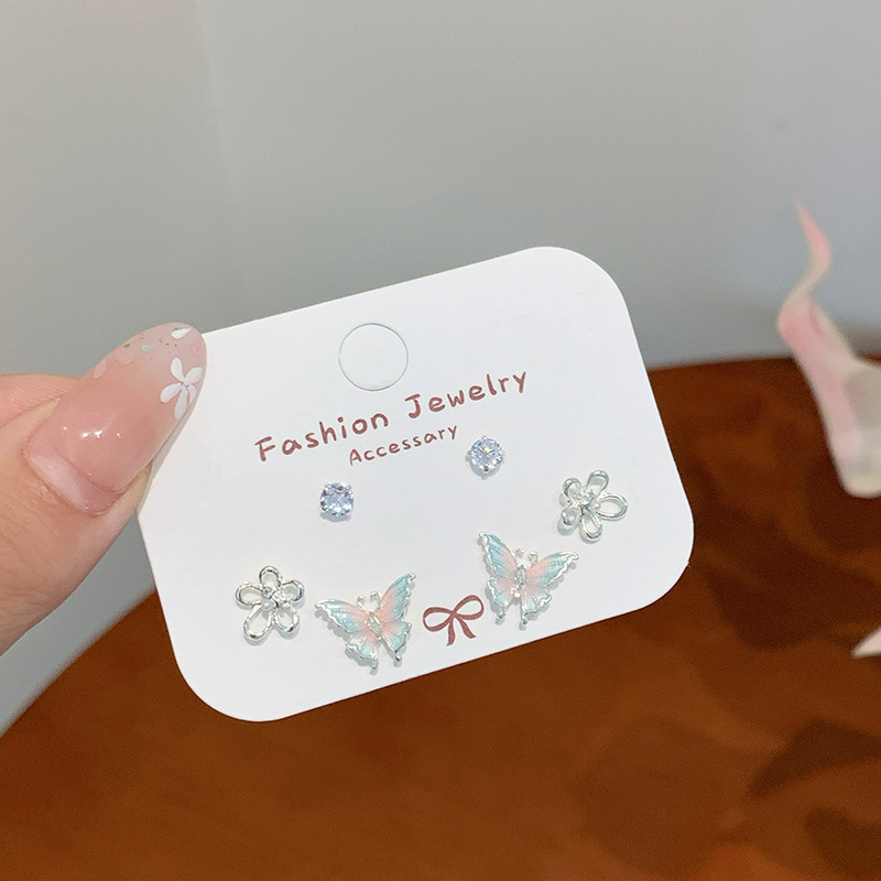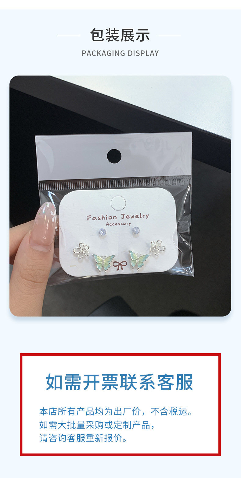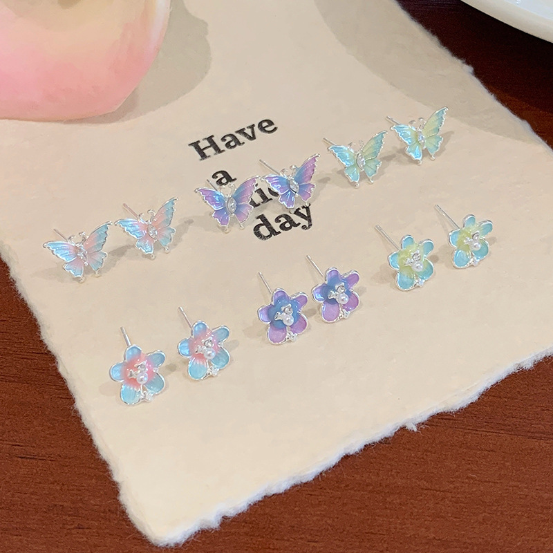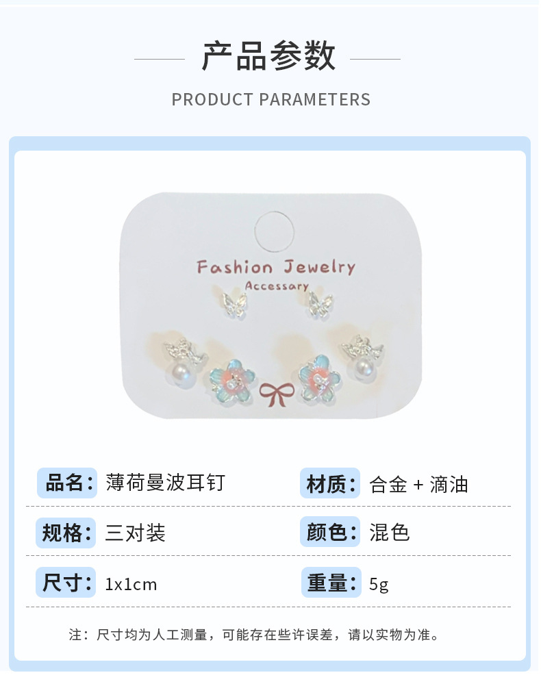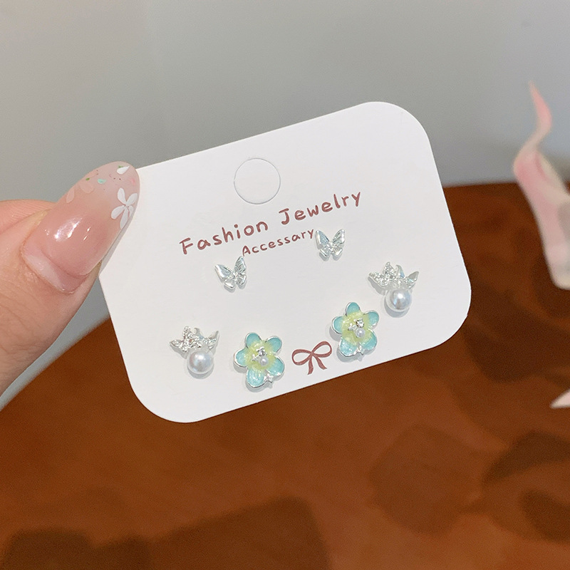 夏日甜美薄荷曼波蝴蝶耳环套装女银针小清新花朵小众轻奢百搭耳饰