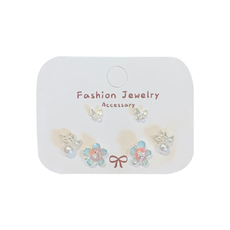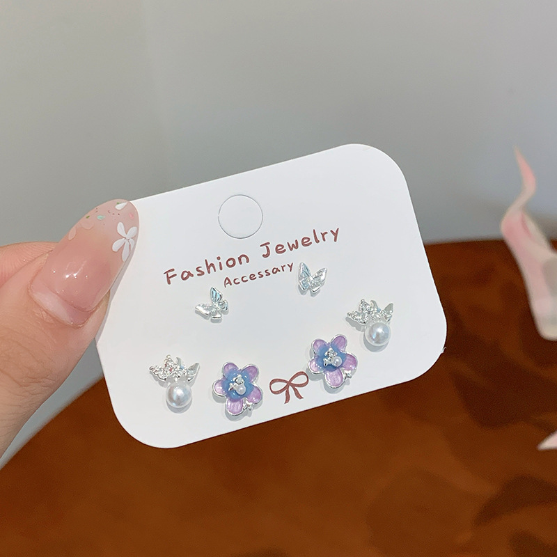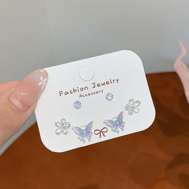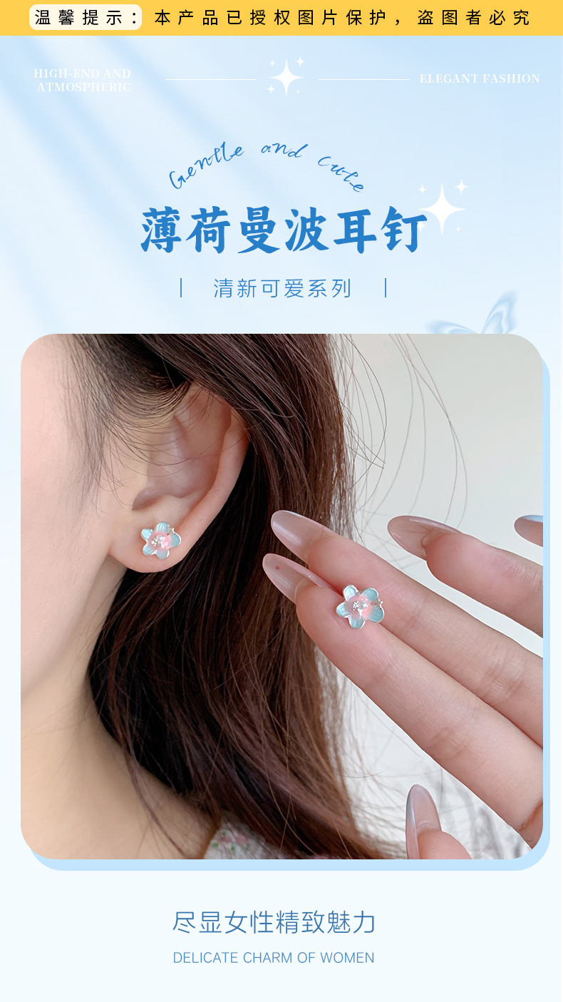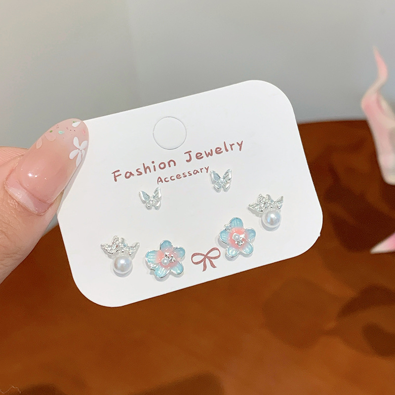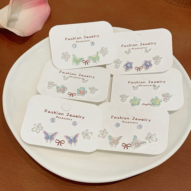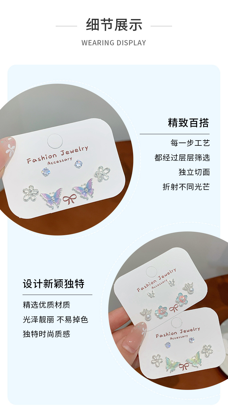 夏日甜美薄荷曼波蝴蝶耳环套装女银针小清新花朵小众轻奢百搭耳饰