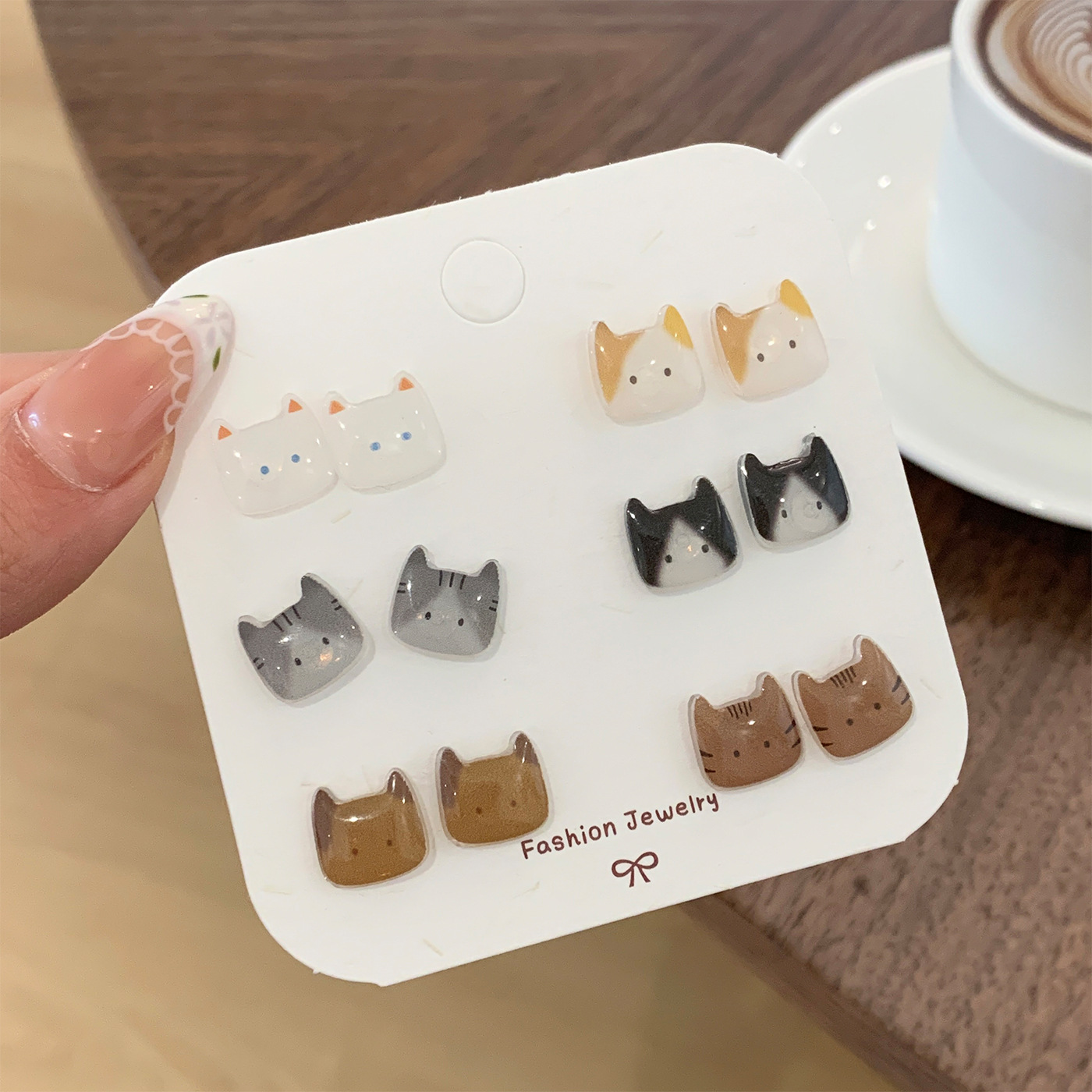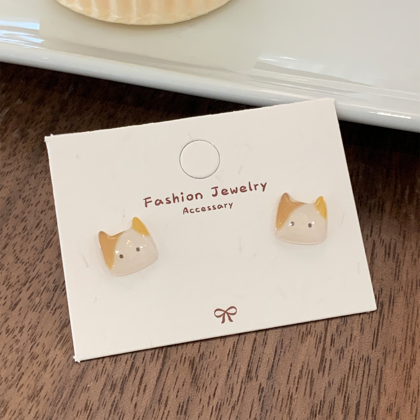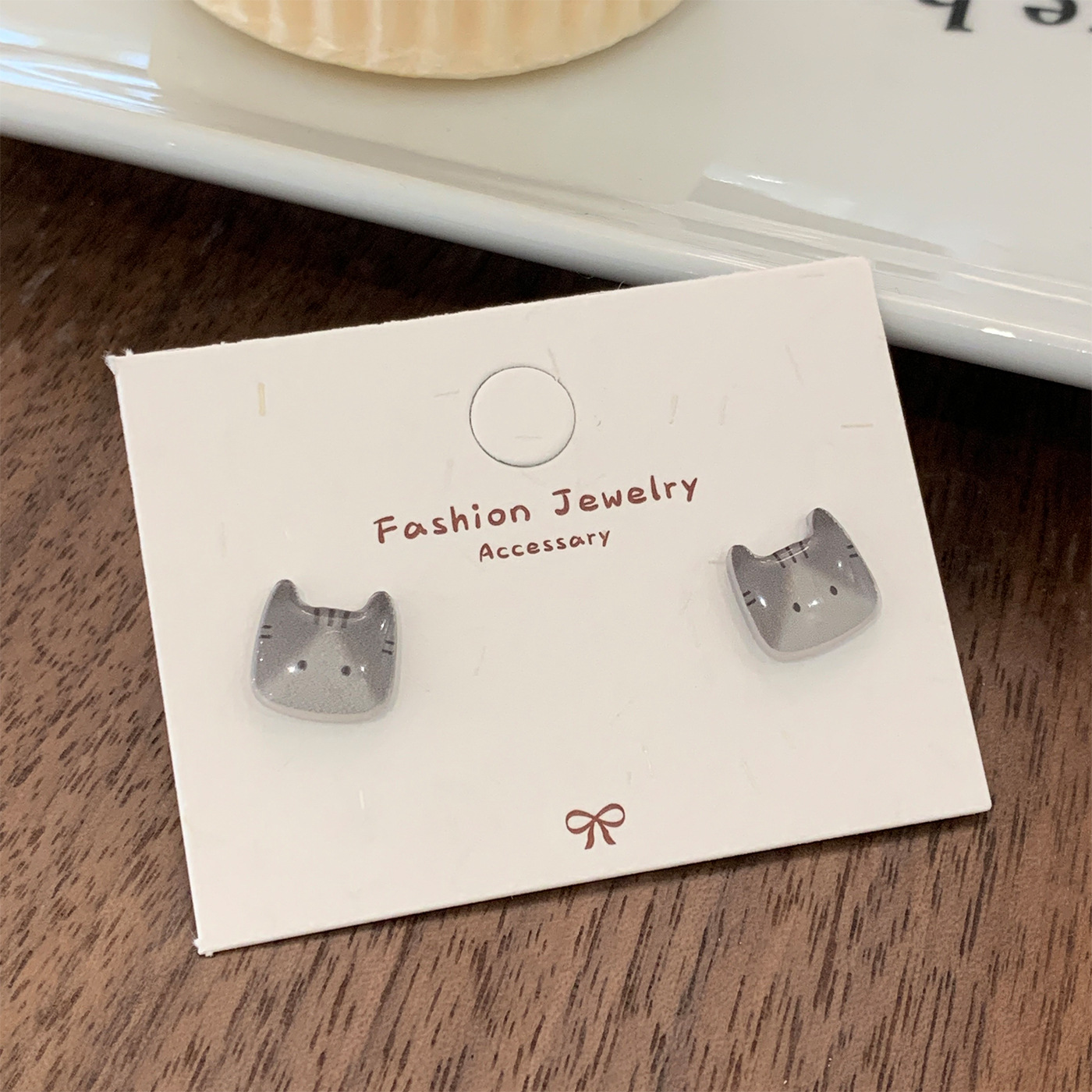 日系可爱猫咪脑袋耳钉女银针套装卡通树脂小巧精致设计感学生耳饰