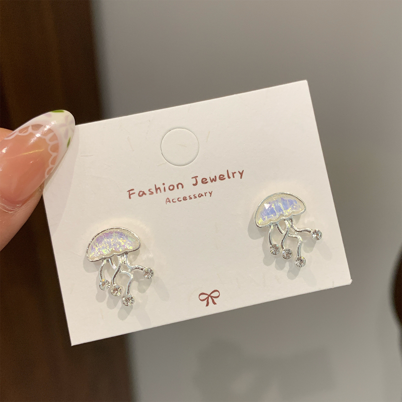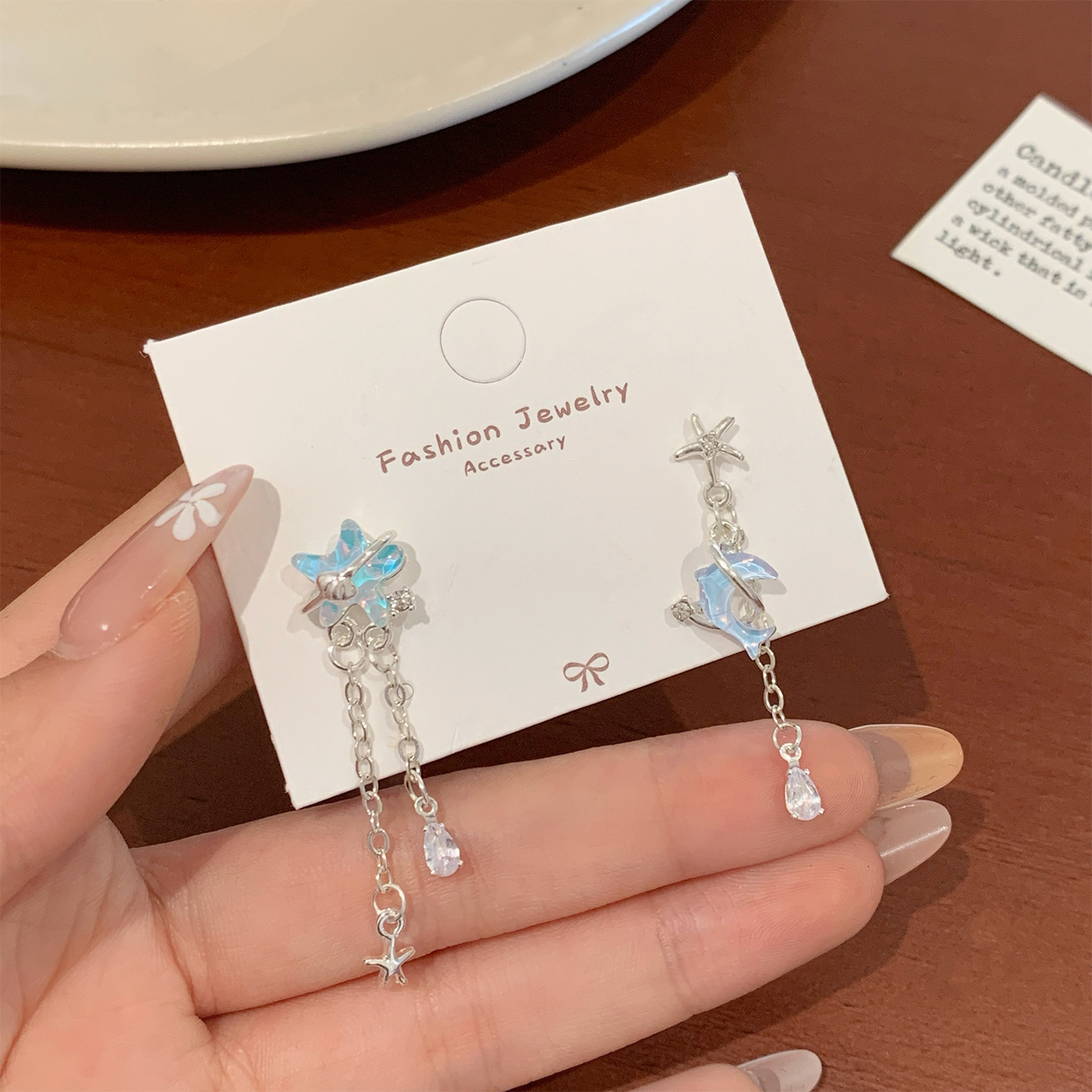夏季超仙海洋水母锆石耳环女银针气质甜美精致五角星流苏贝壳耳钉