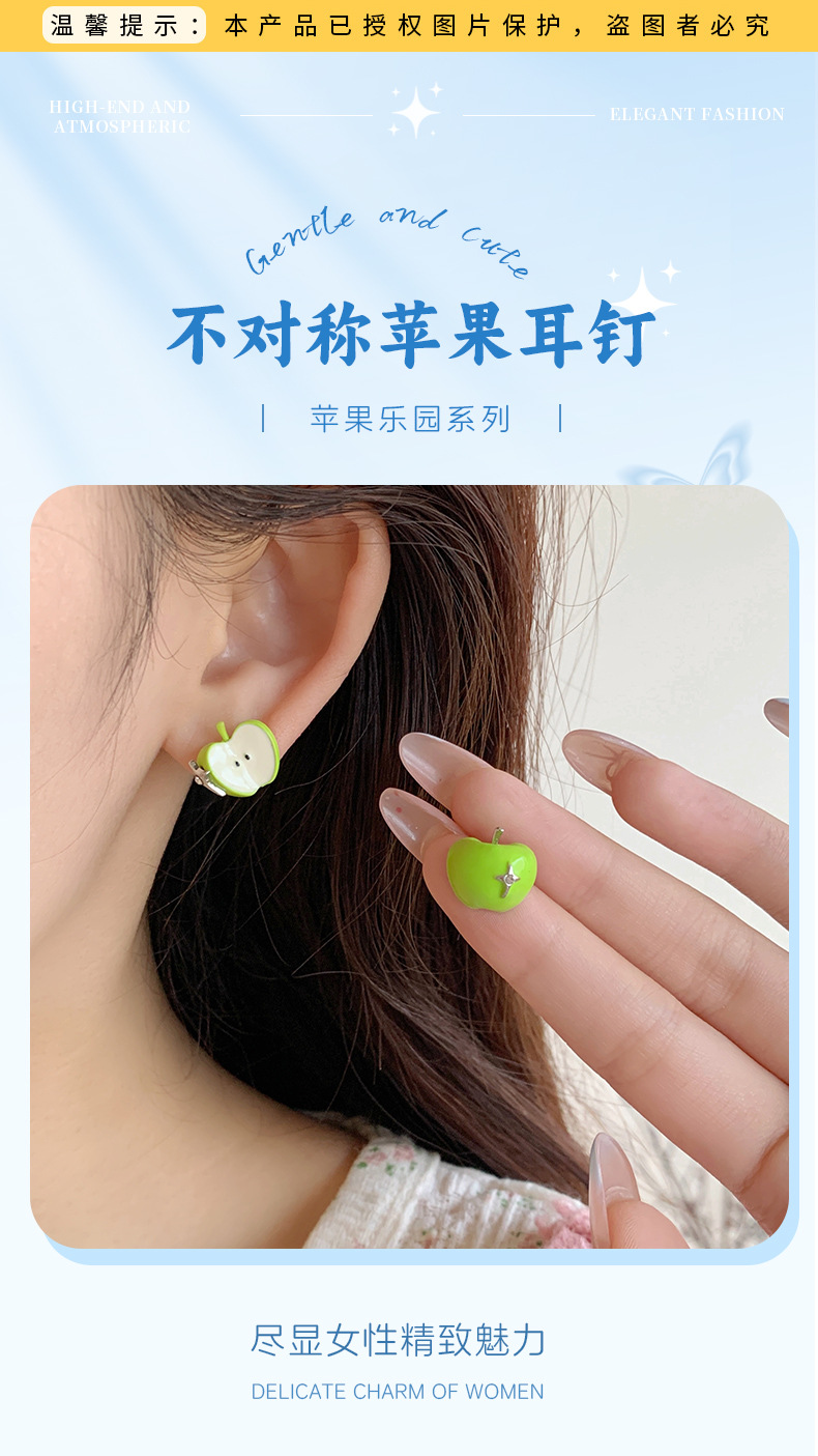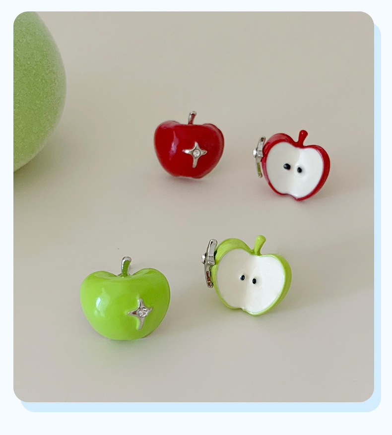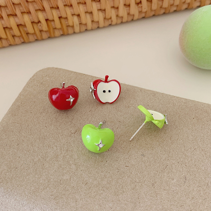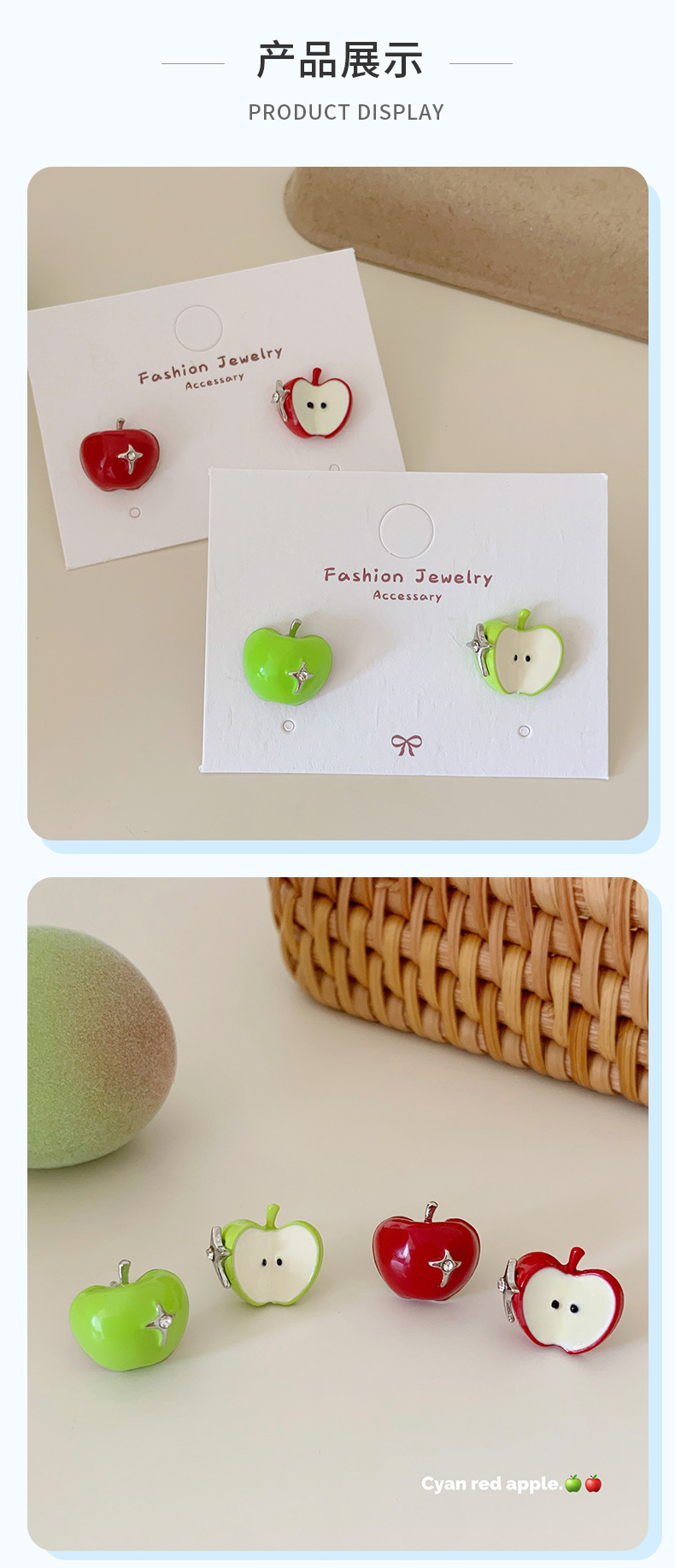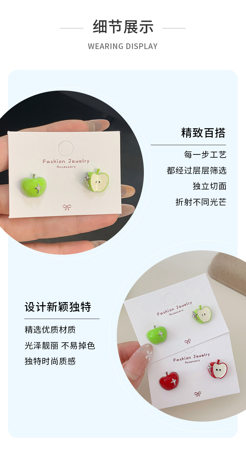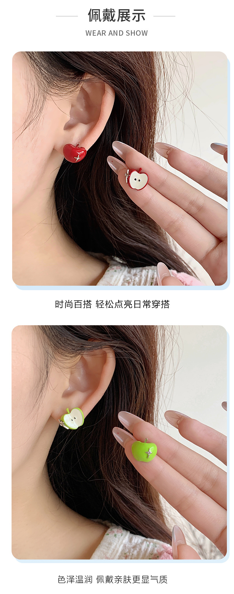 夏日小清新童趣青苹果红苹果耳钉女银针少女感小众滴油可爱耳饰