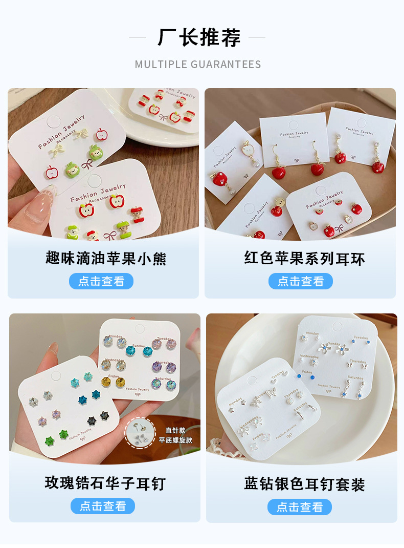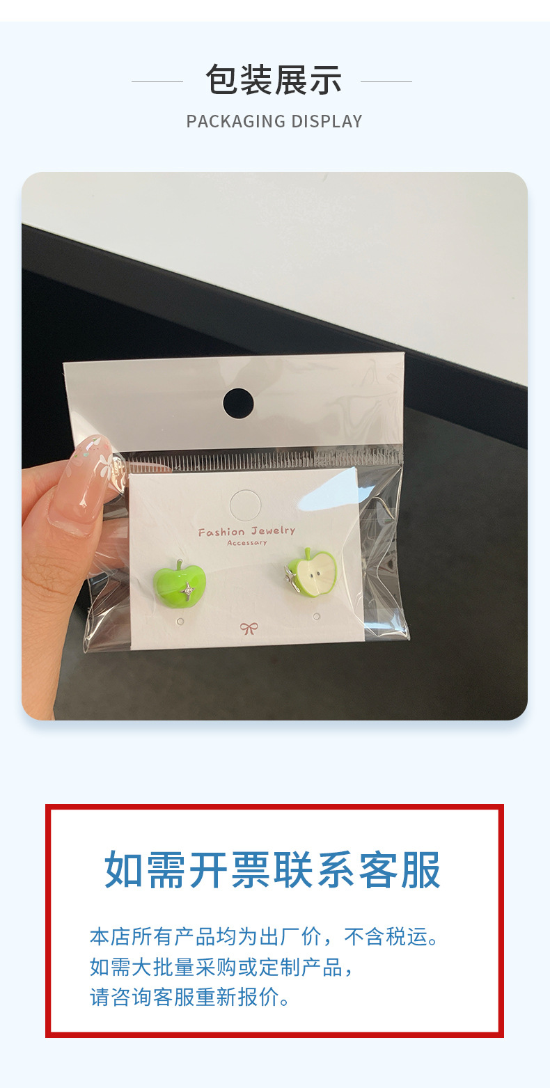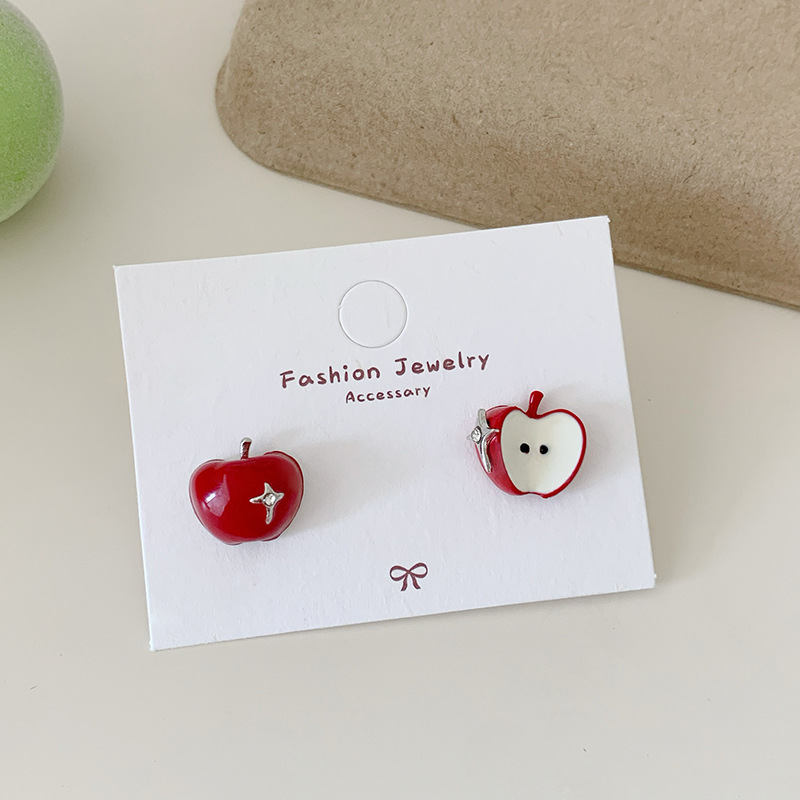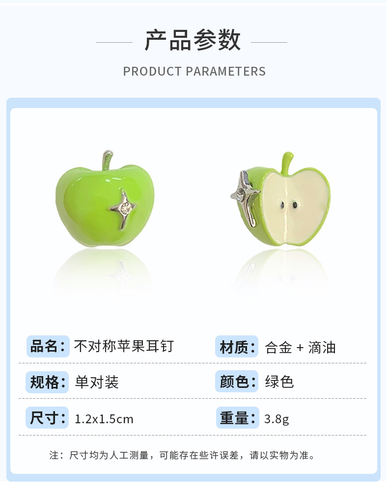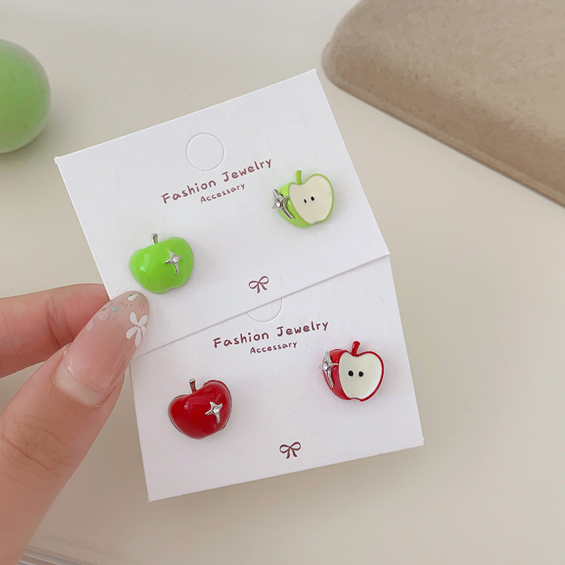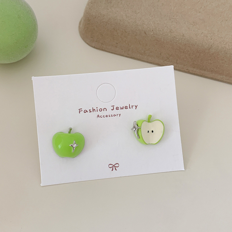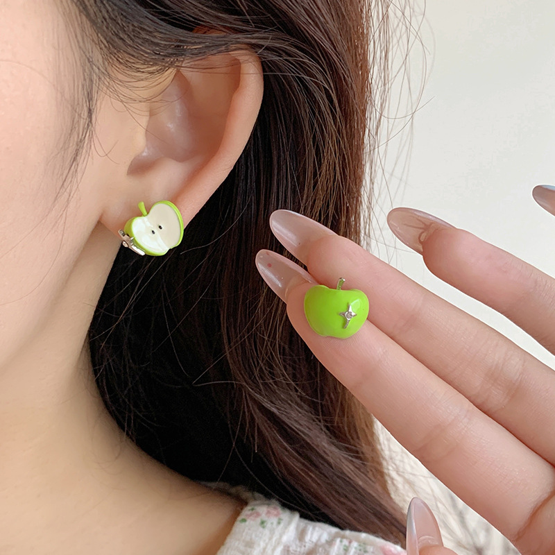 夏日小清新童趣青苹果红苹果耳钉女银针少女感小众滴油可爱耳饰