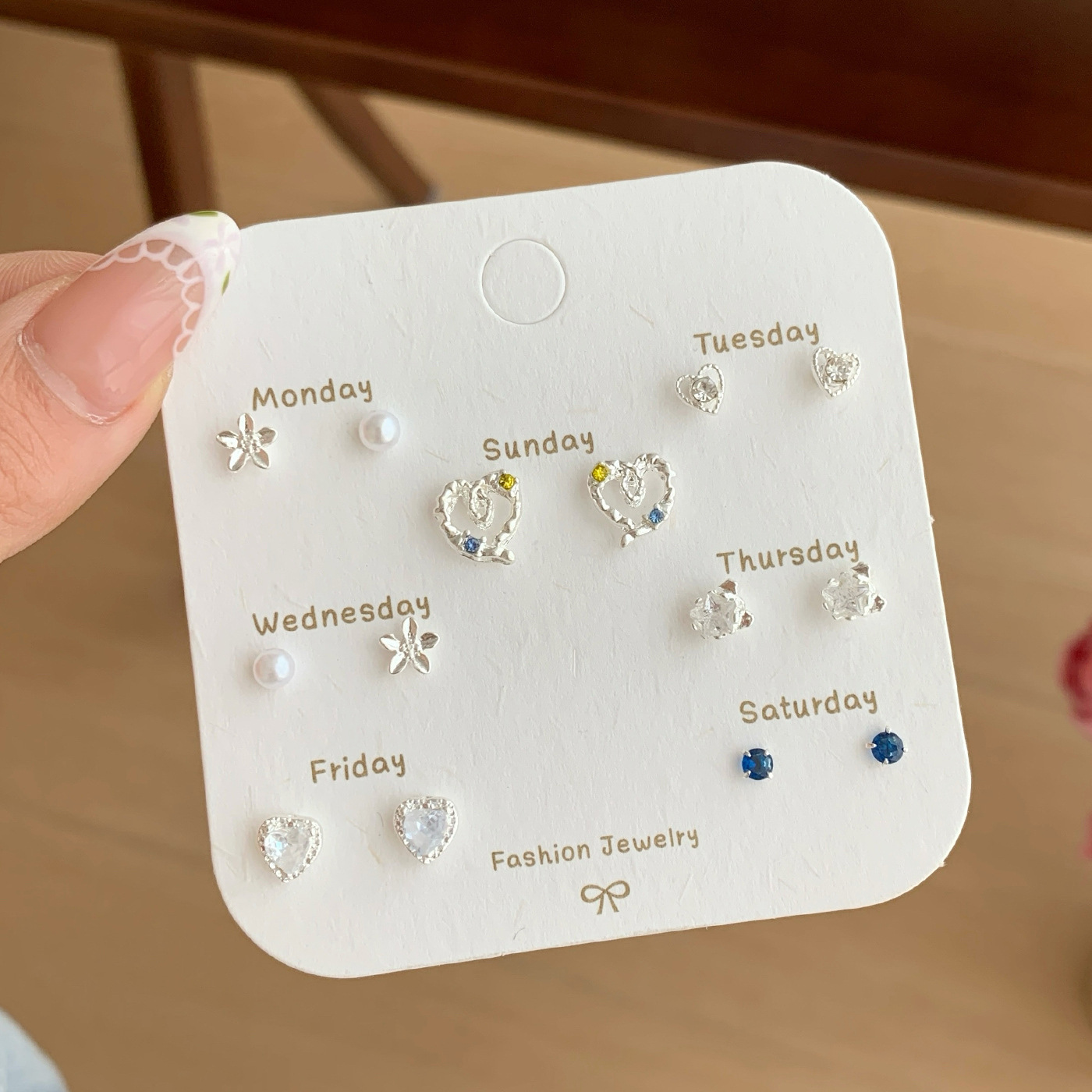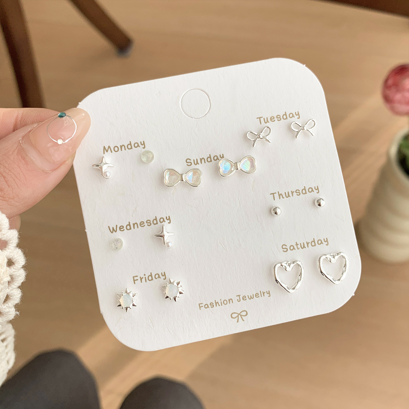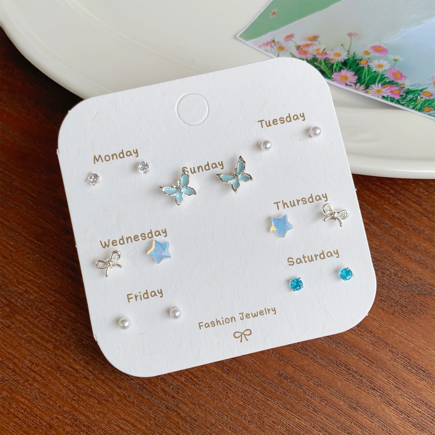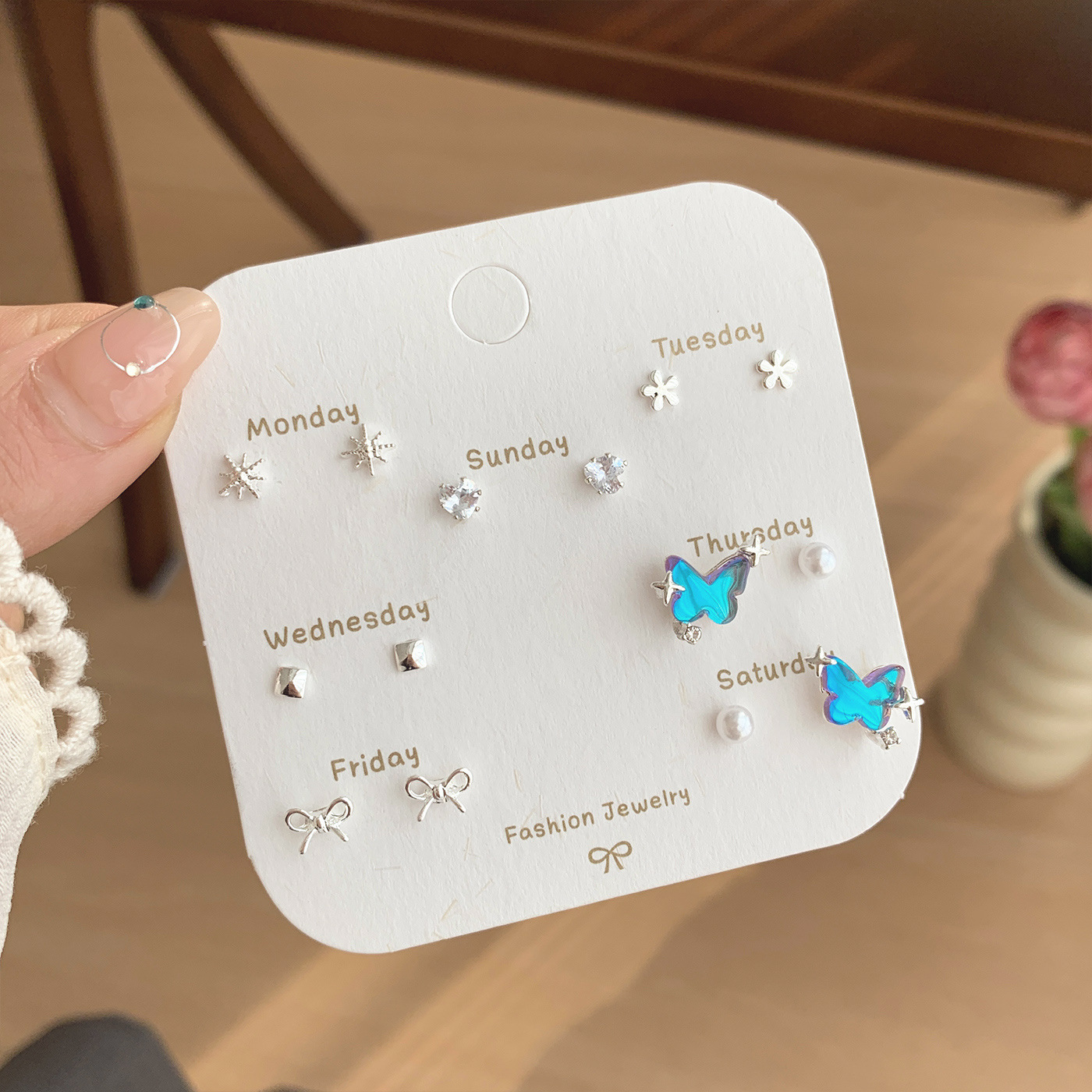 简约蓝钻银色小巧耳钉套装女银针几何设计感精致百搭学生一周耳饰
