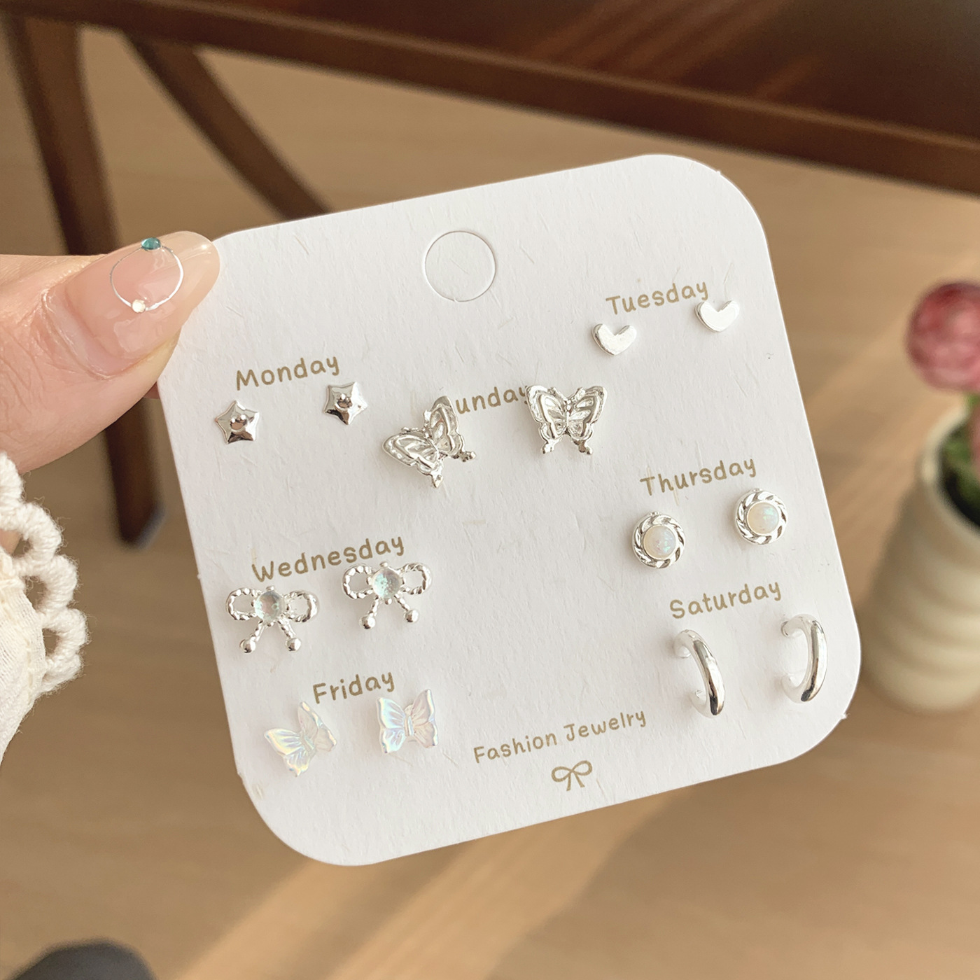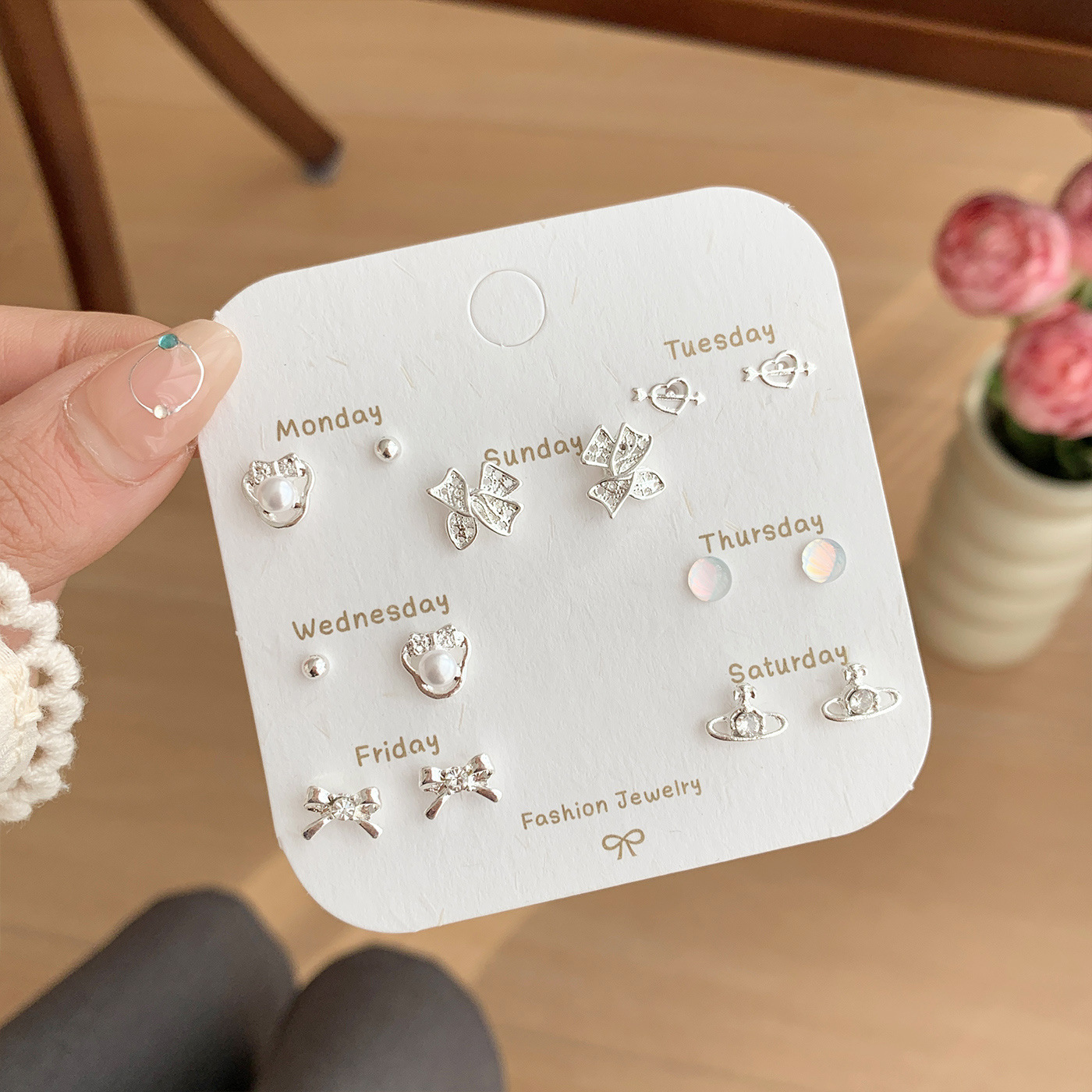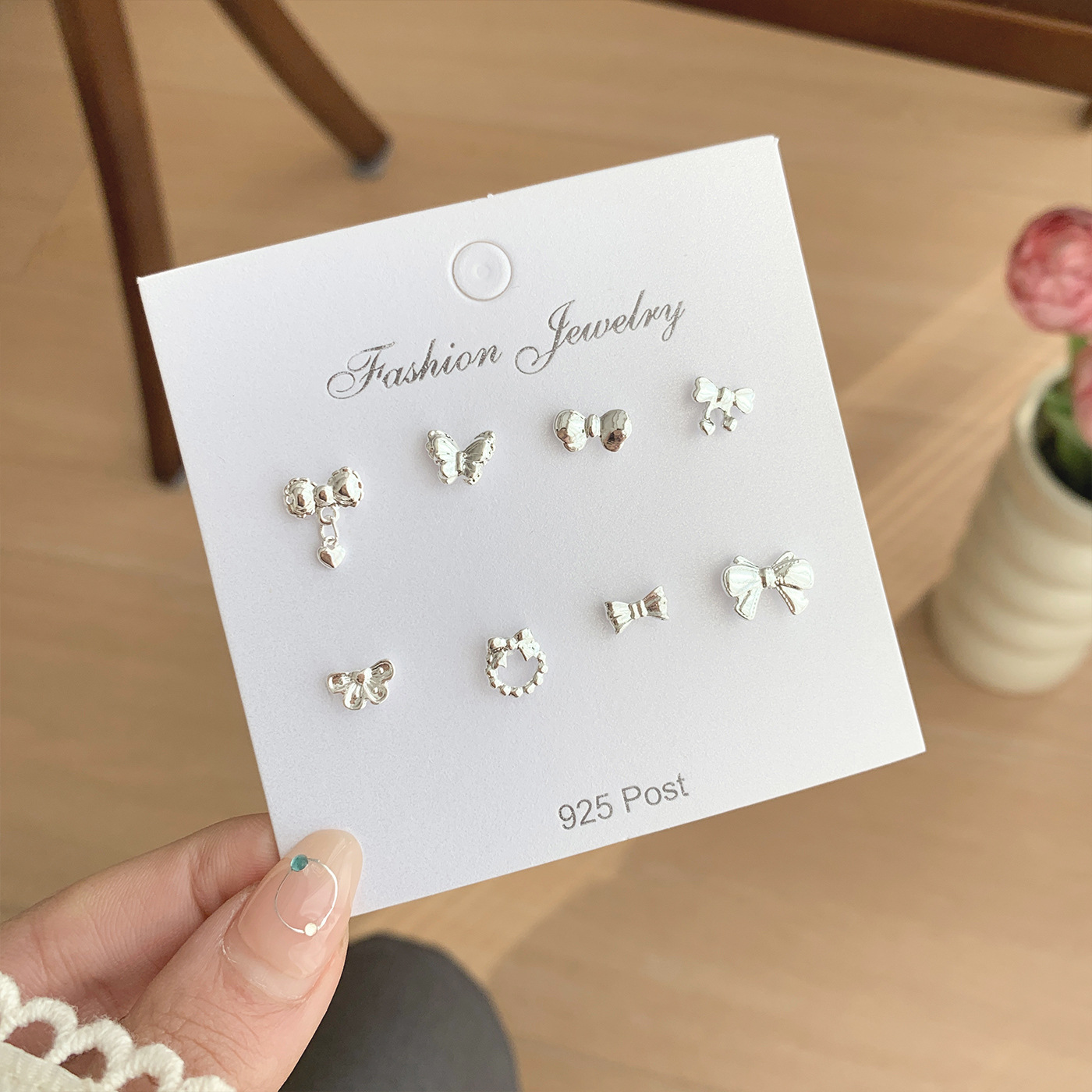 简约蓝钻银色小巧耳钉套装女银针几何设计感精致百搭学生一周耳饰
