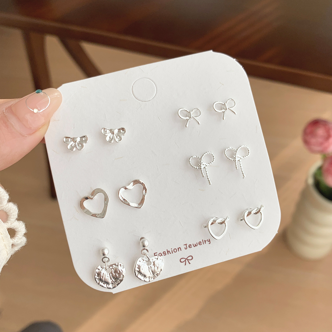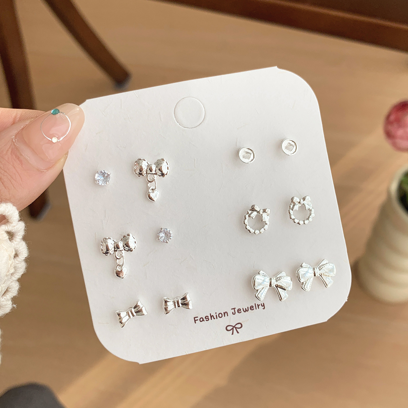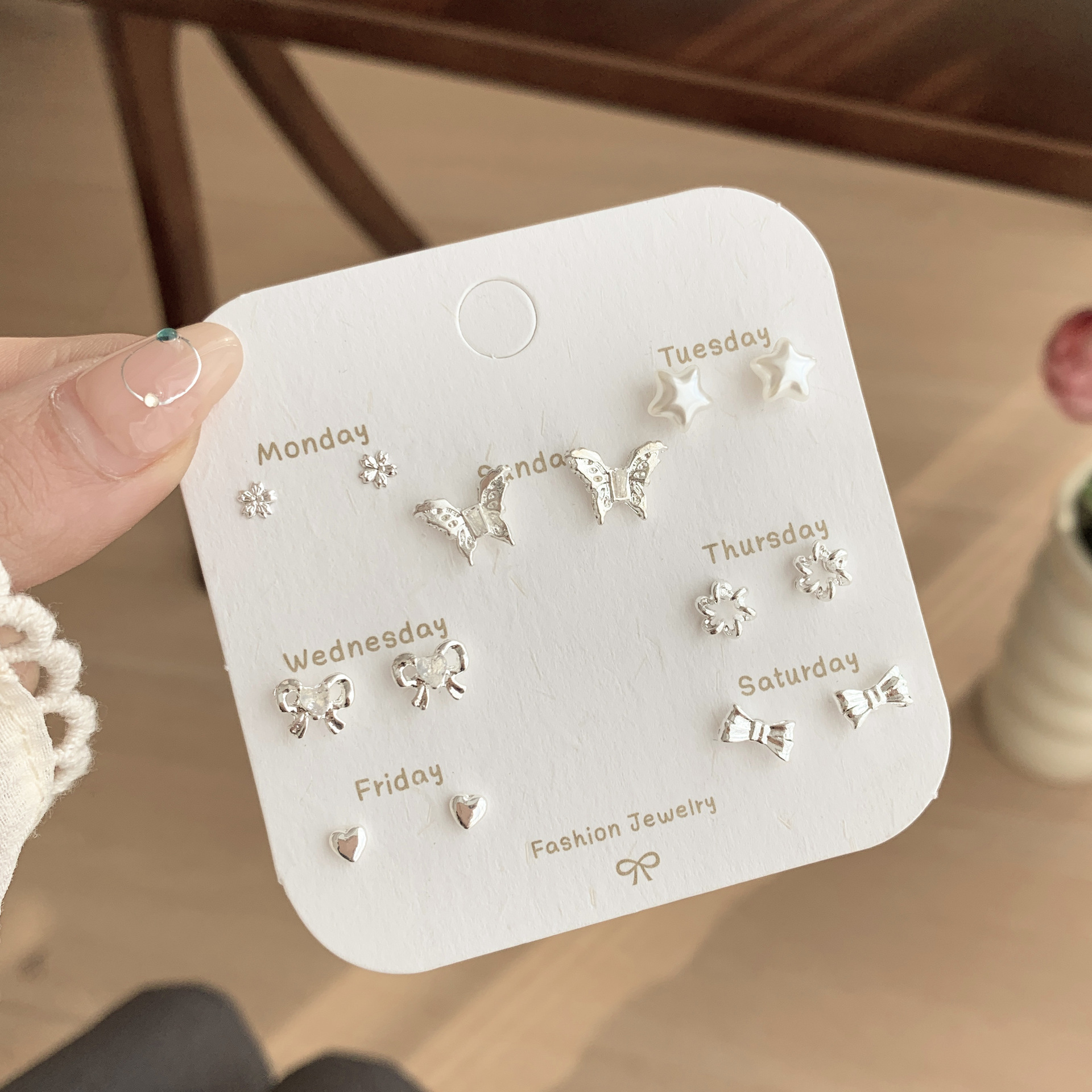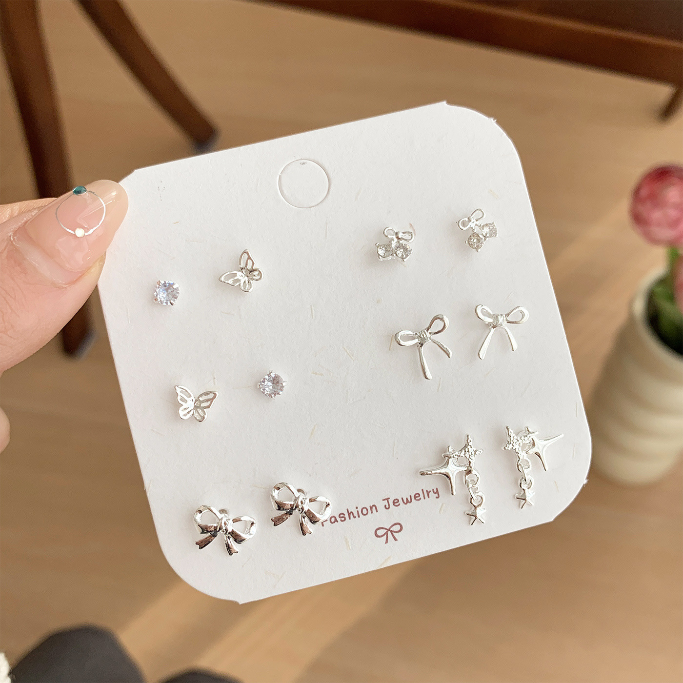 简约蓝钻银色小巧耳钉套装女银针几何设计感精致百搭学生一周耳饰