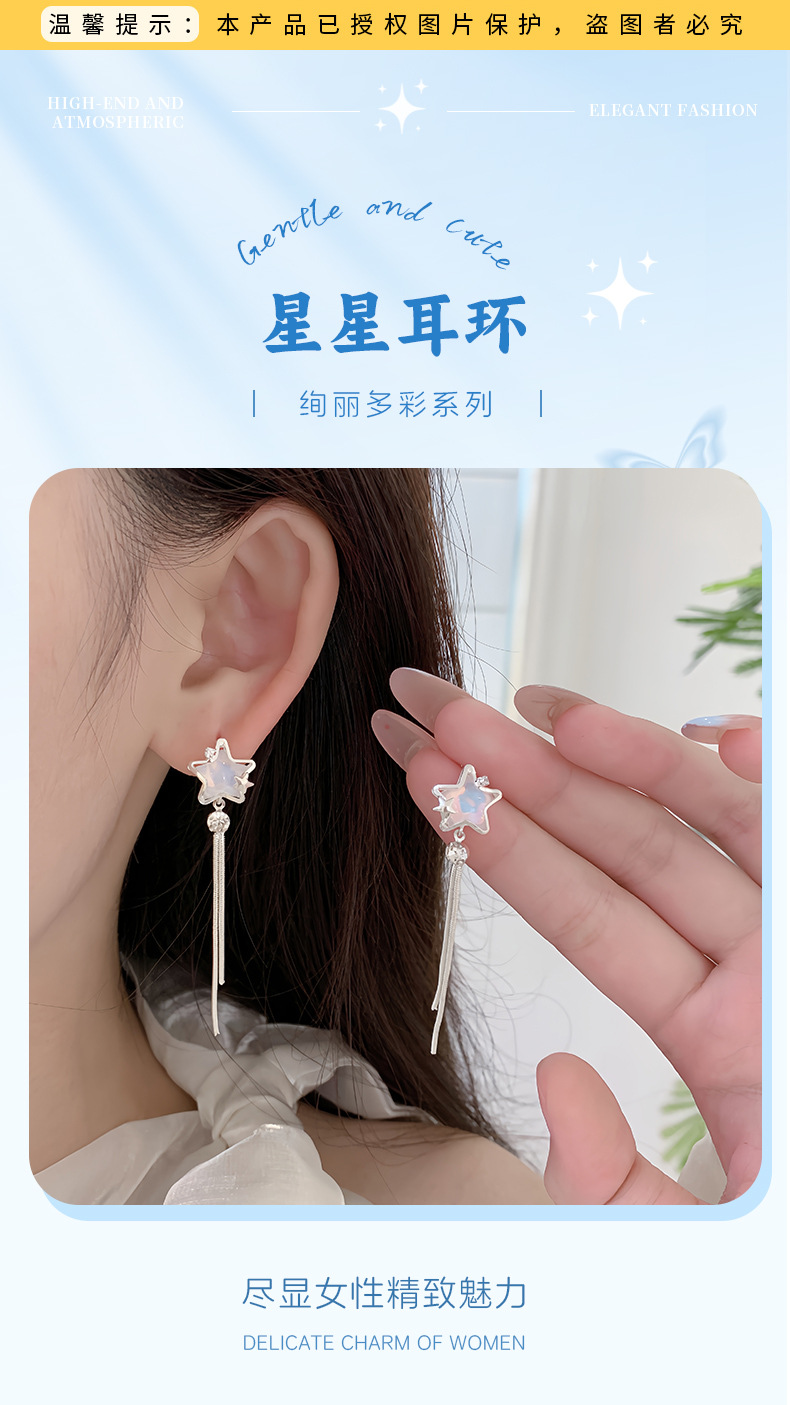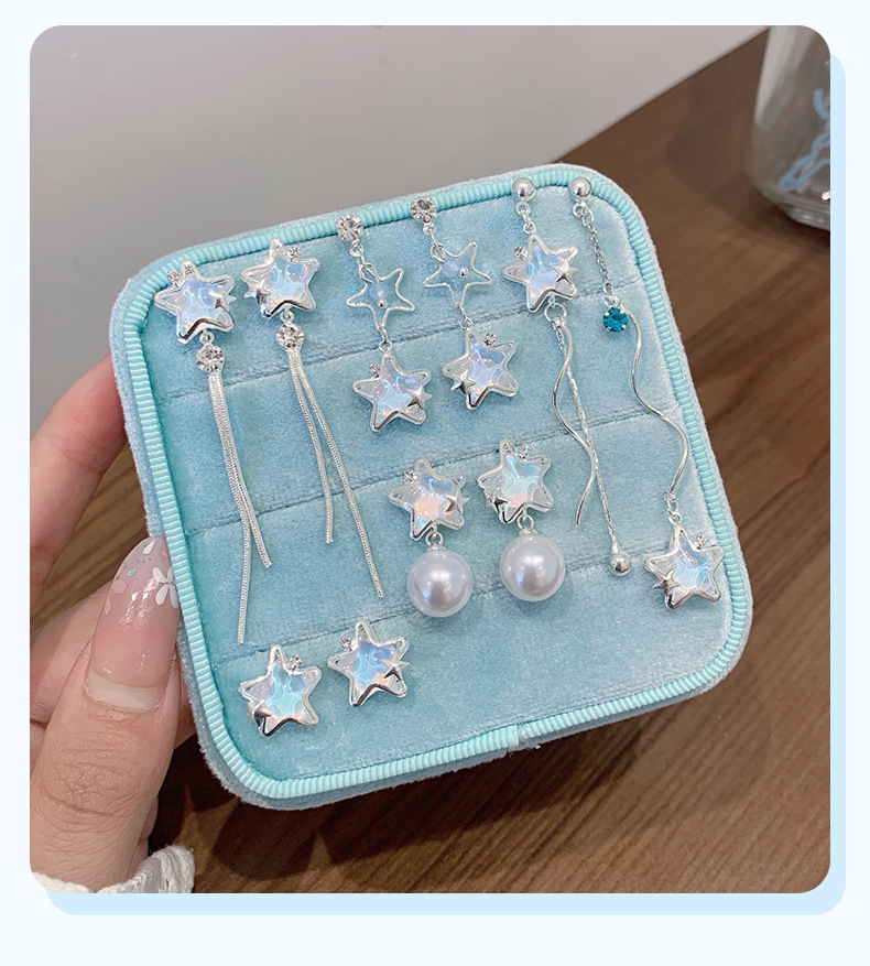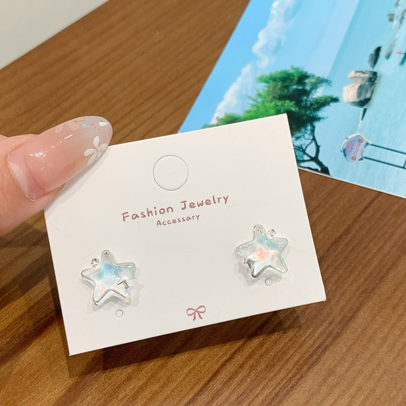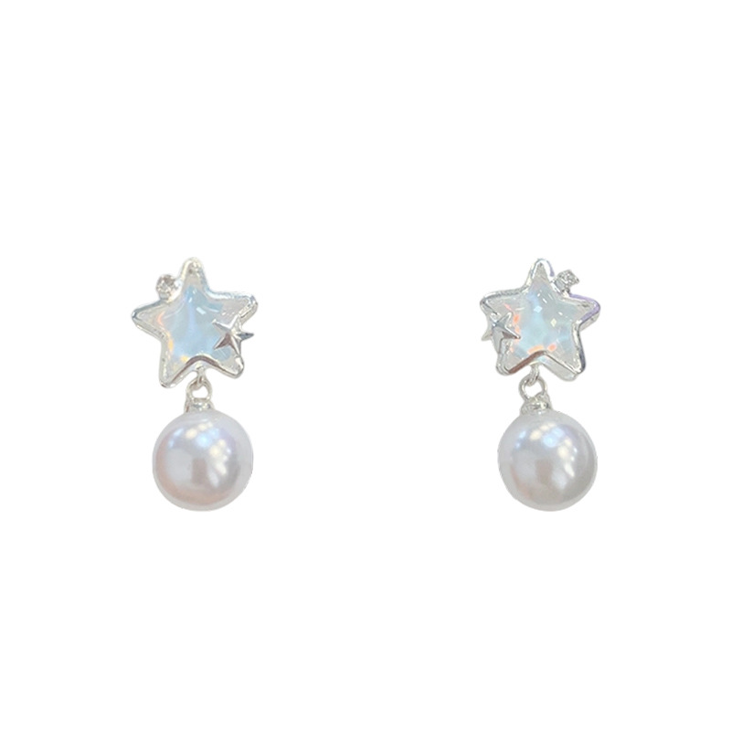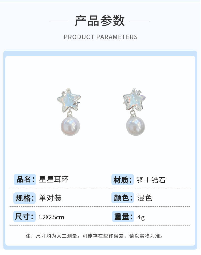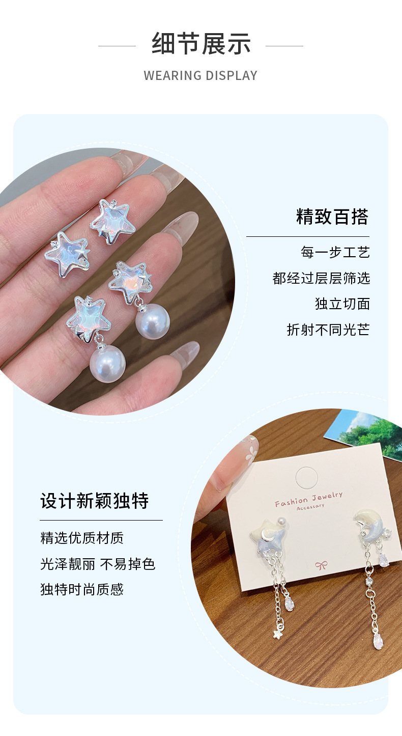 夏季铜微镶海洋闪耀星星耳环女银针小清新珍珠小众轻奢设计感耳饰