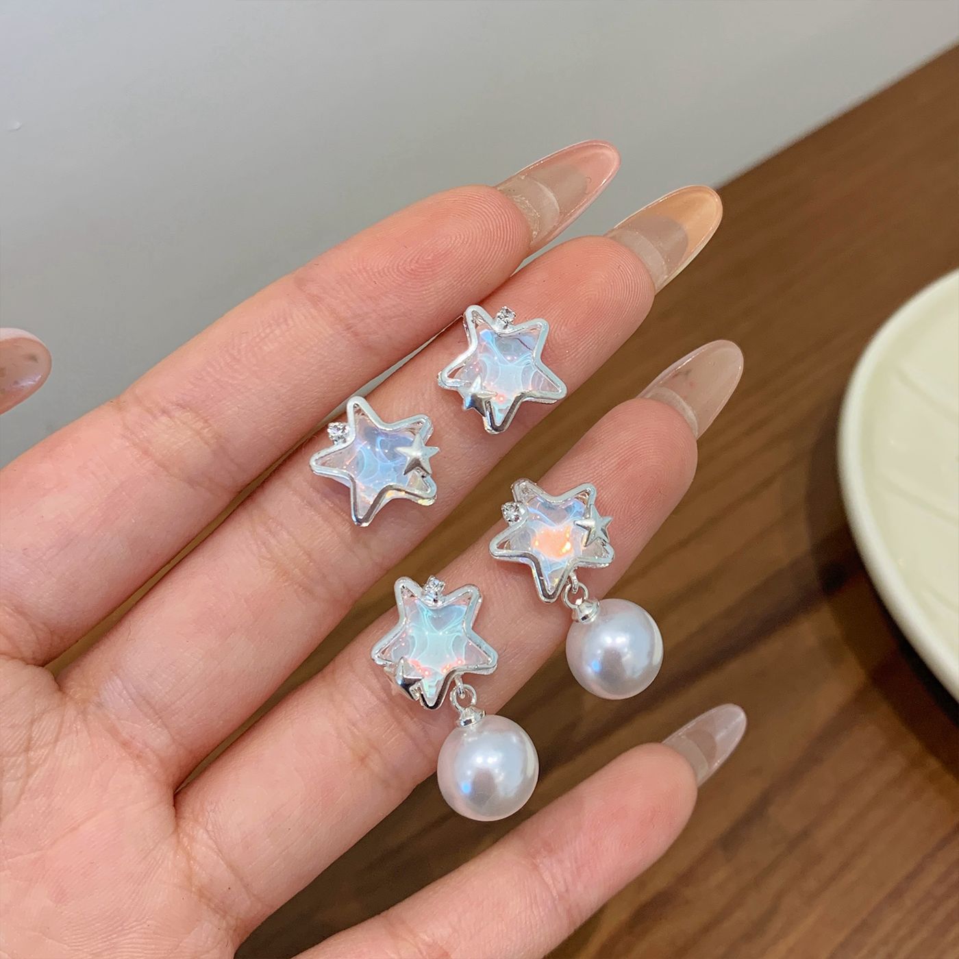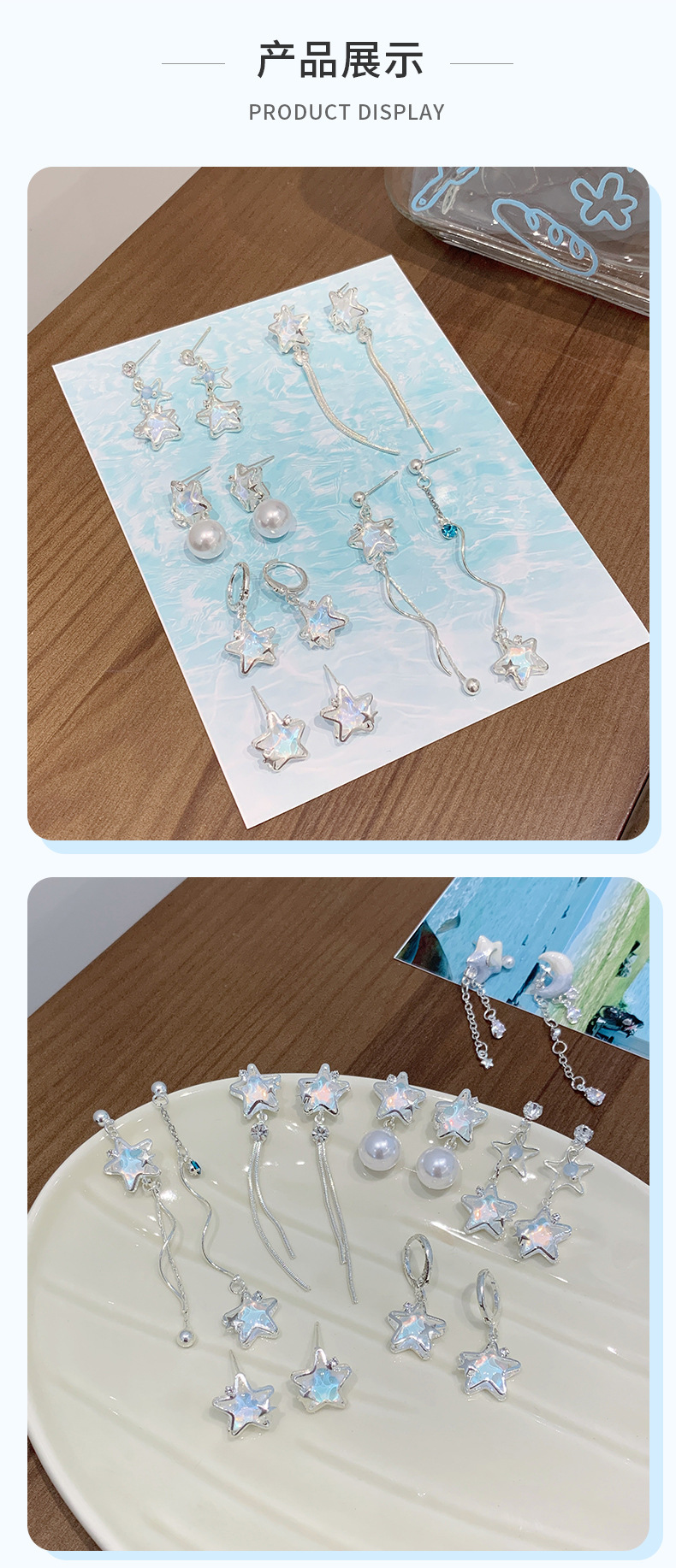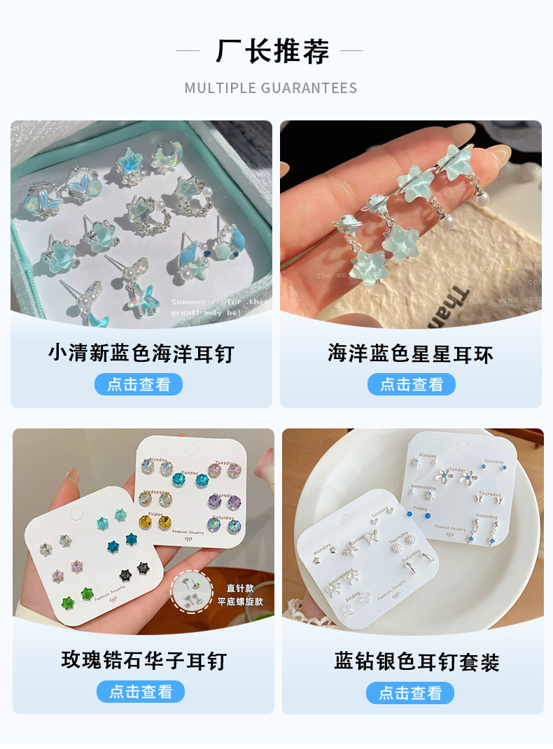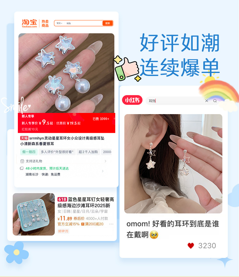 夏季铜微镶海洋闪耀星星耳环女银针小清新珍珠小众轻奢设计感耳饰