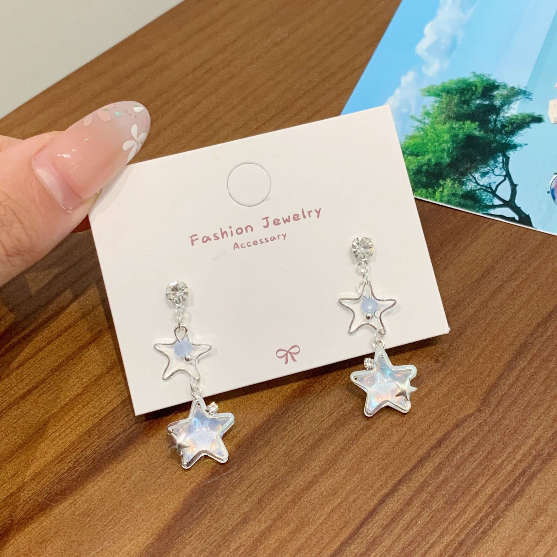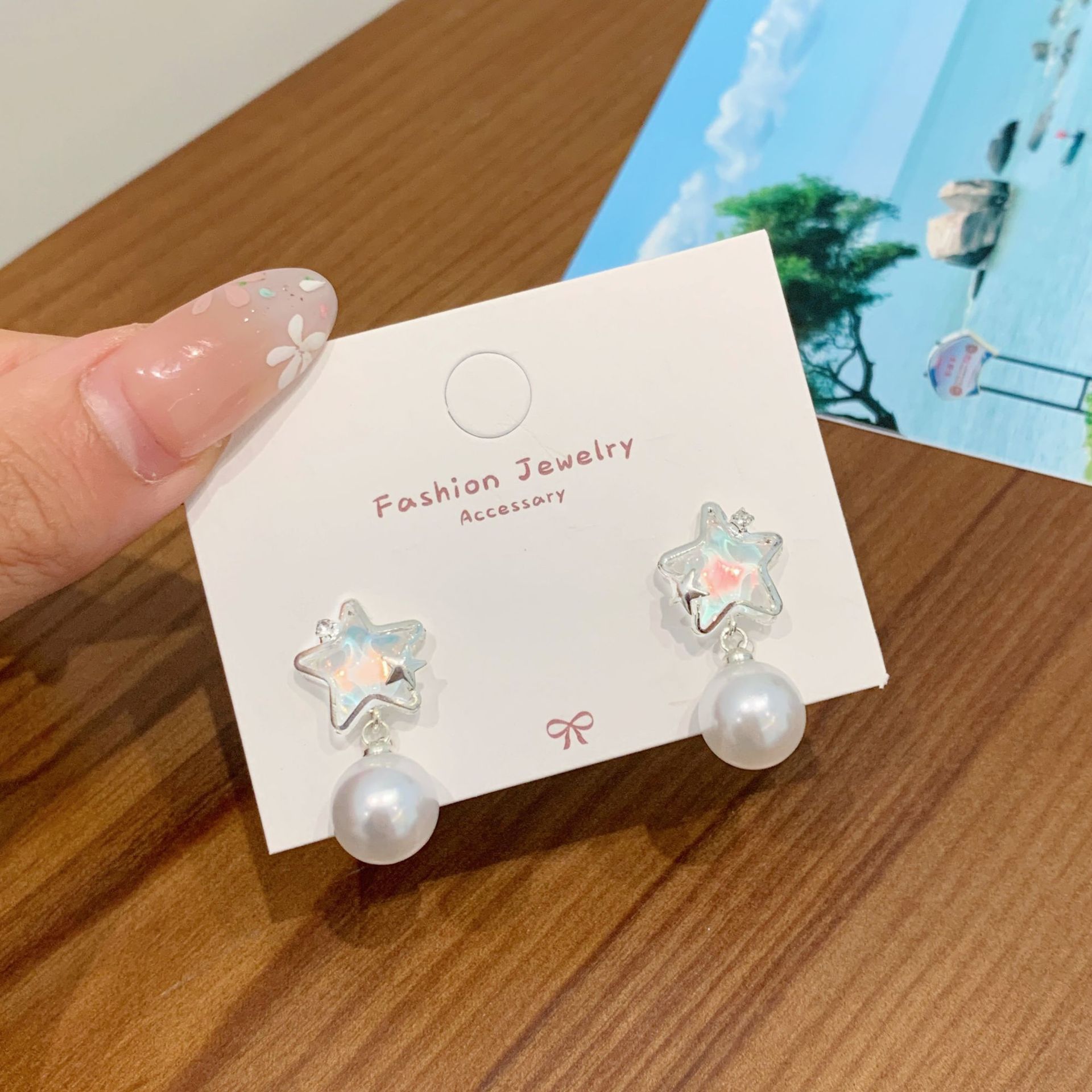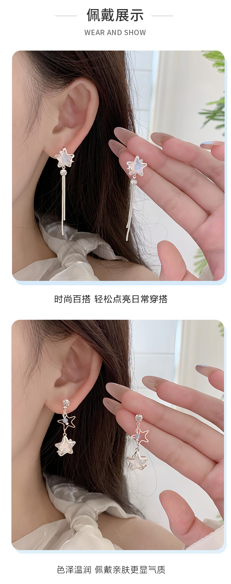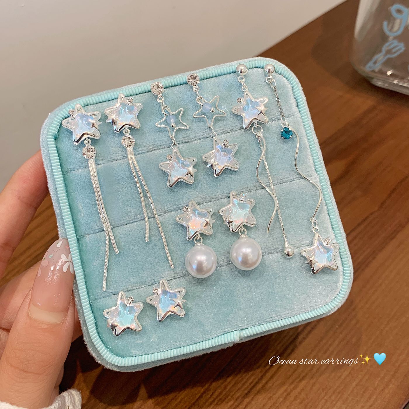 夏季铜微镶海洋闪耀星星耳环女银针小清新珍珠小众轻奢设计感耳饰