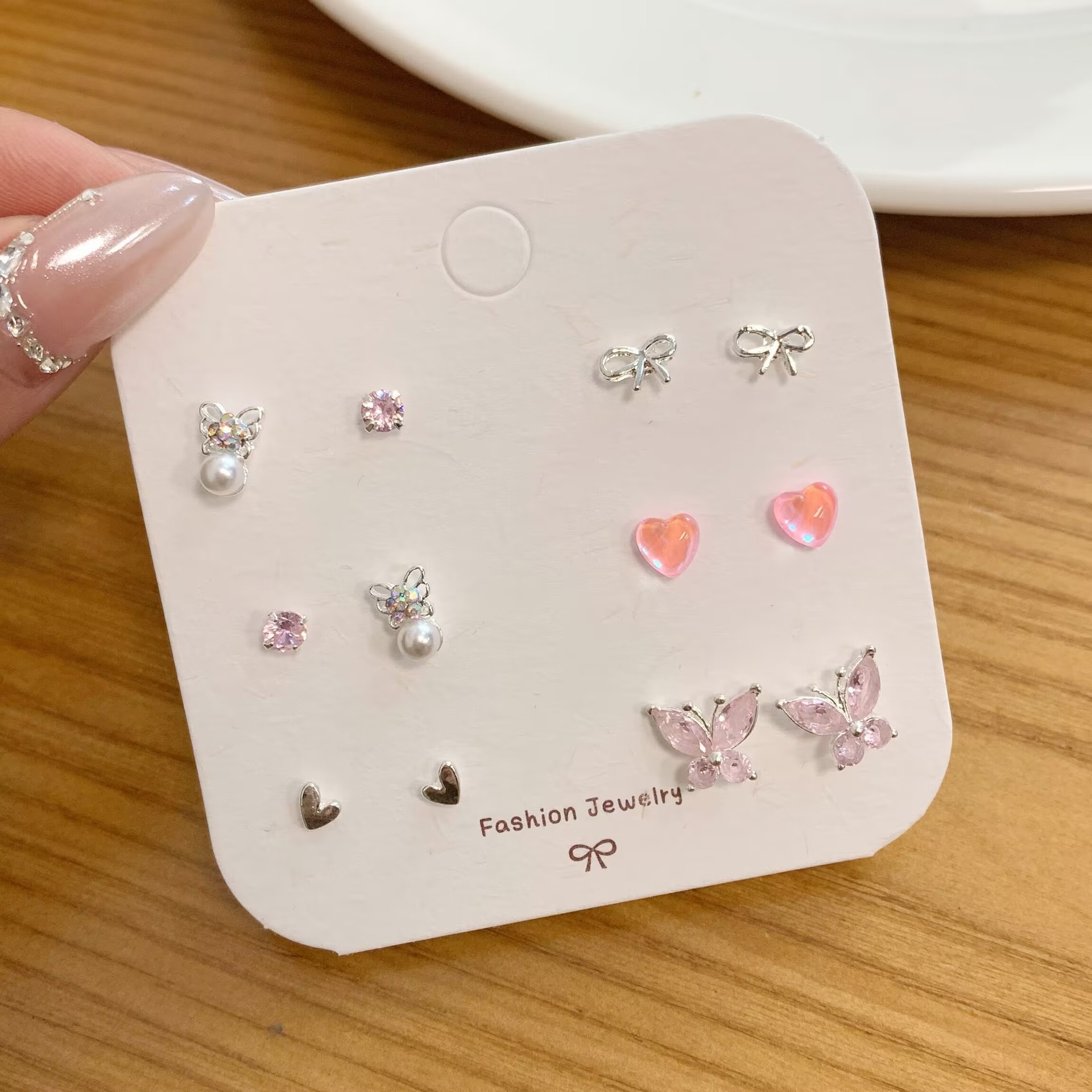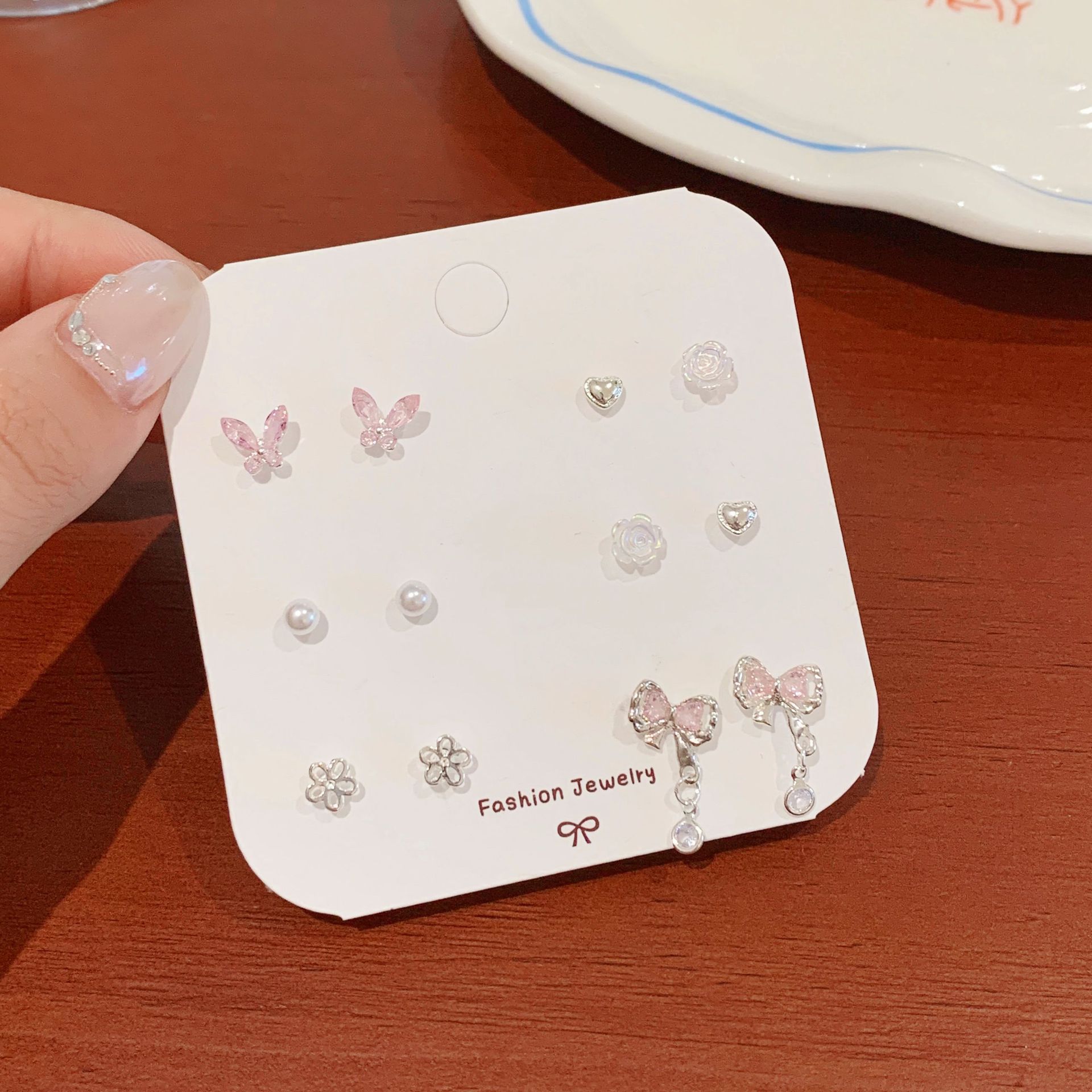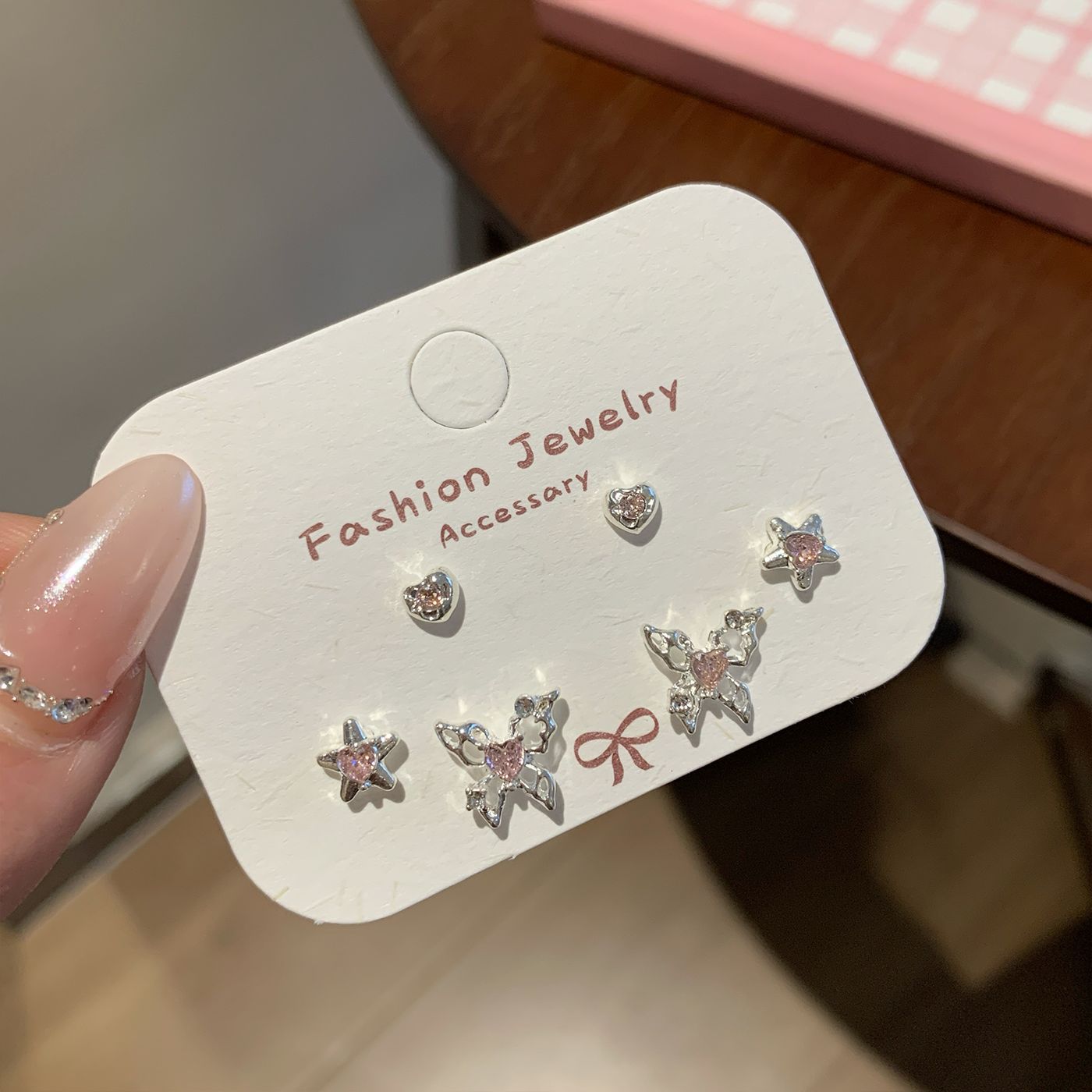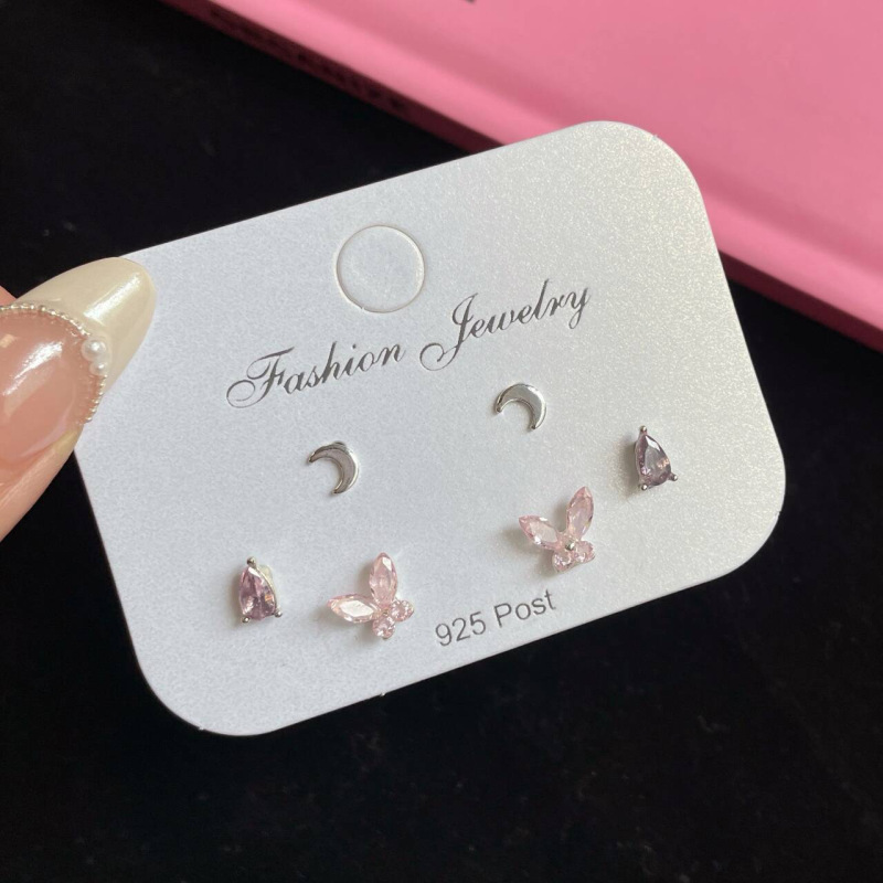 春季粉色甜酷蝴蝶小耳钉女银针小巧日常精致锆石闪烁学生耳饰批发
