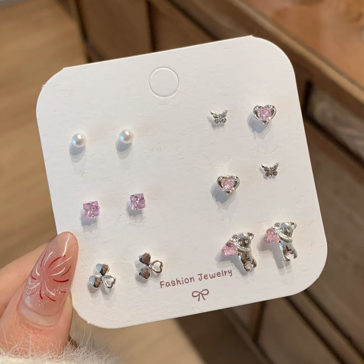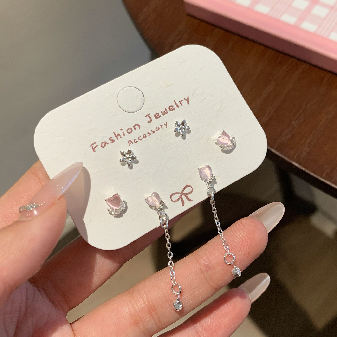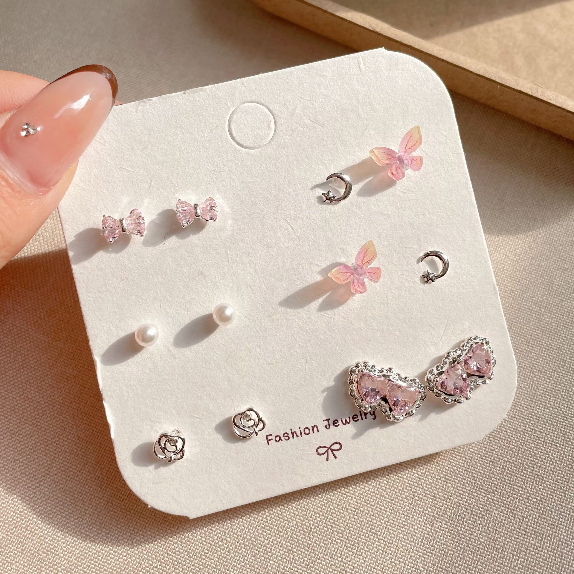 春季粉色甜酷蝴蝶小耳钉女银针小巧日常精致锆石闪烁学生耳饰批发