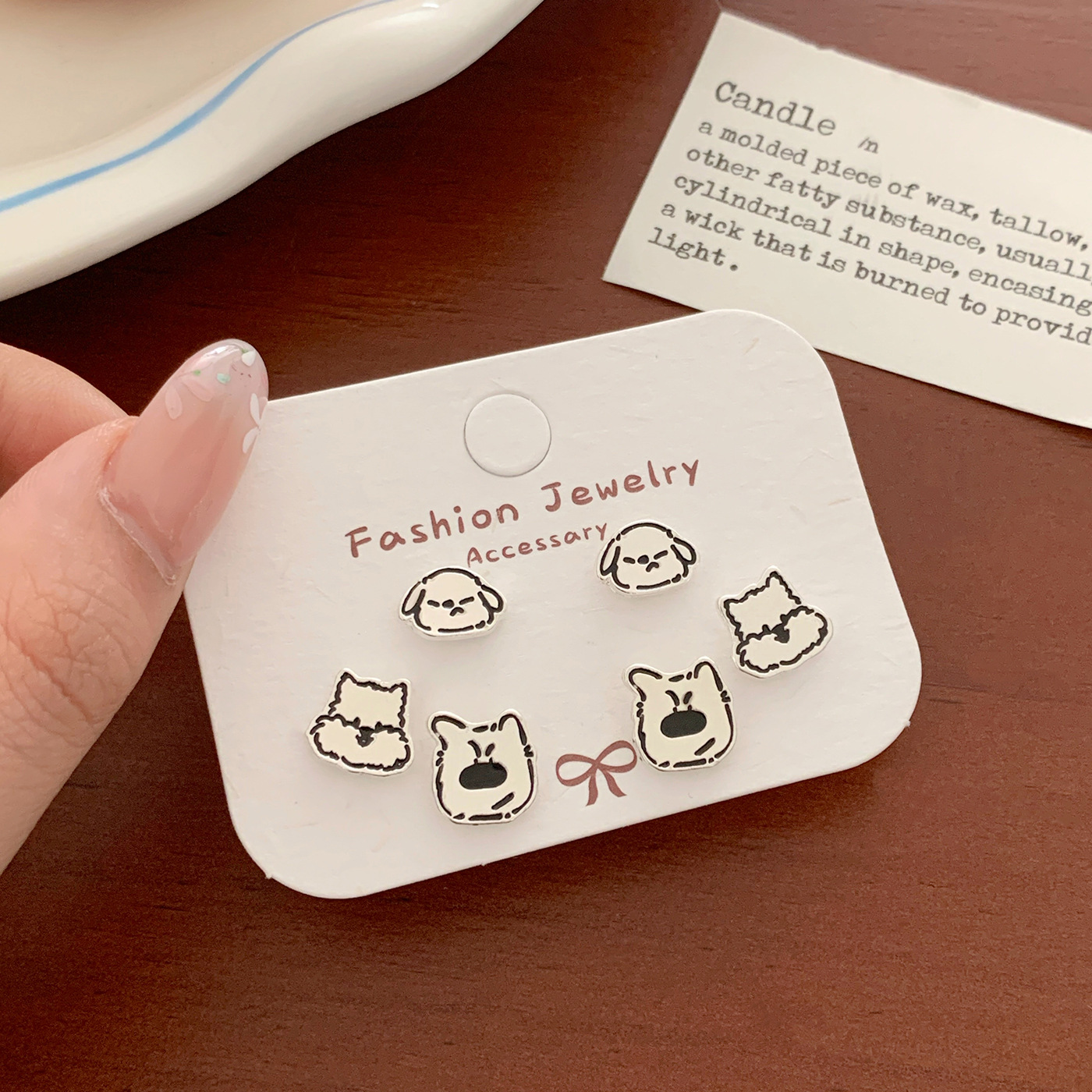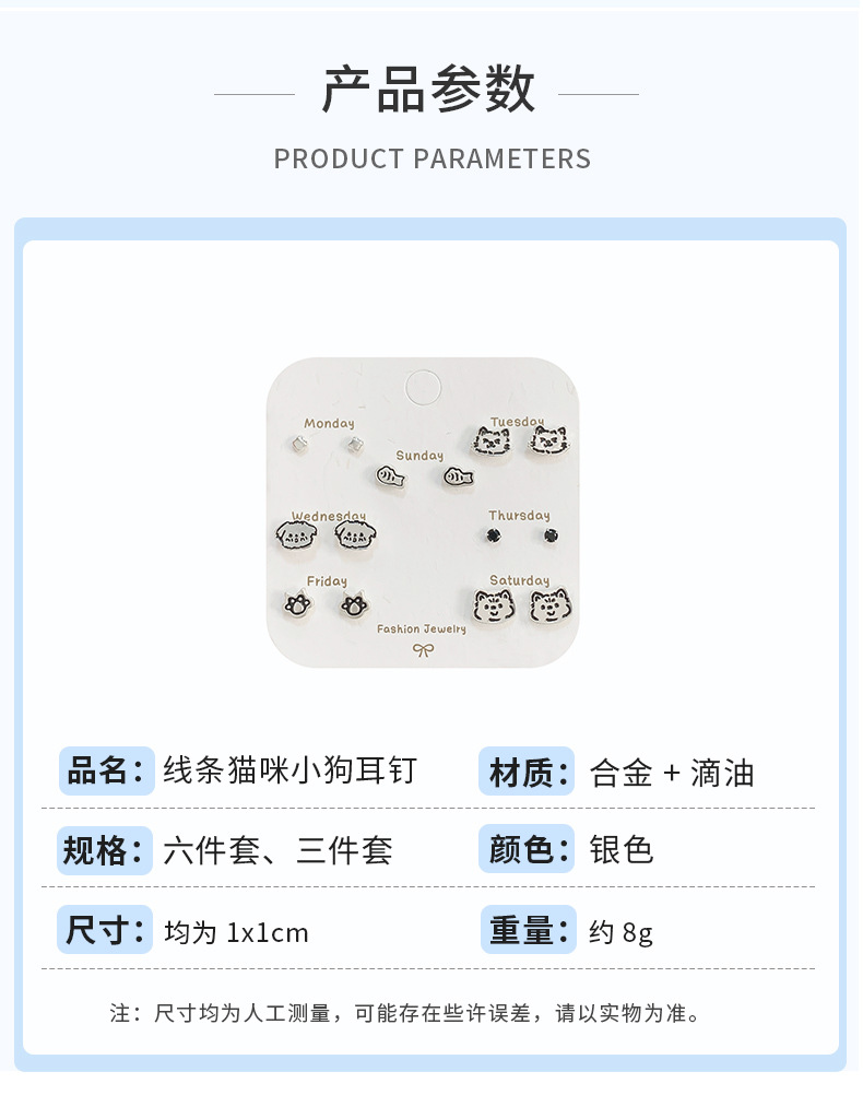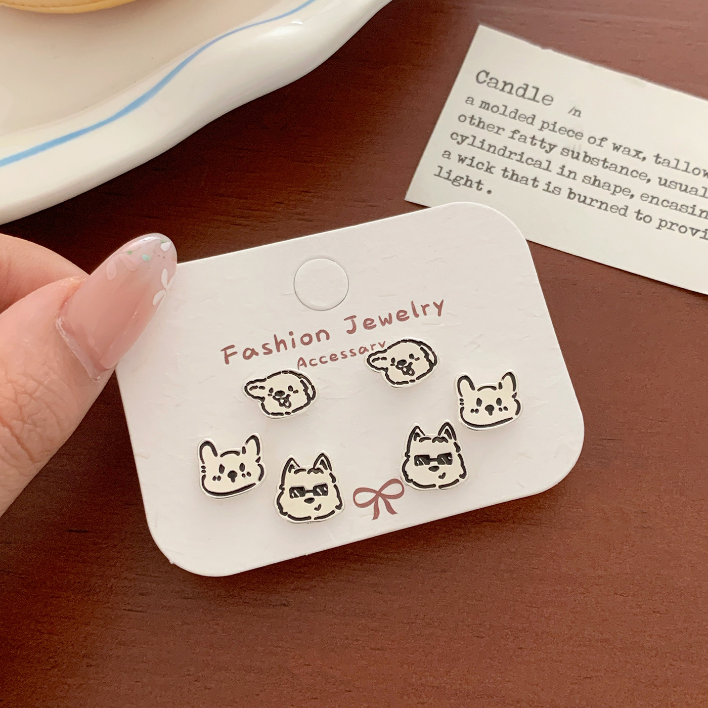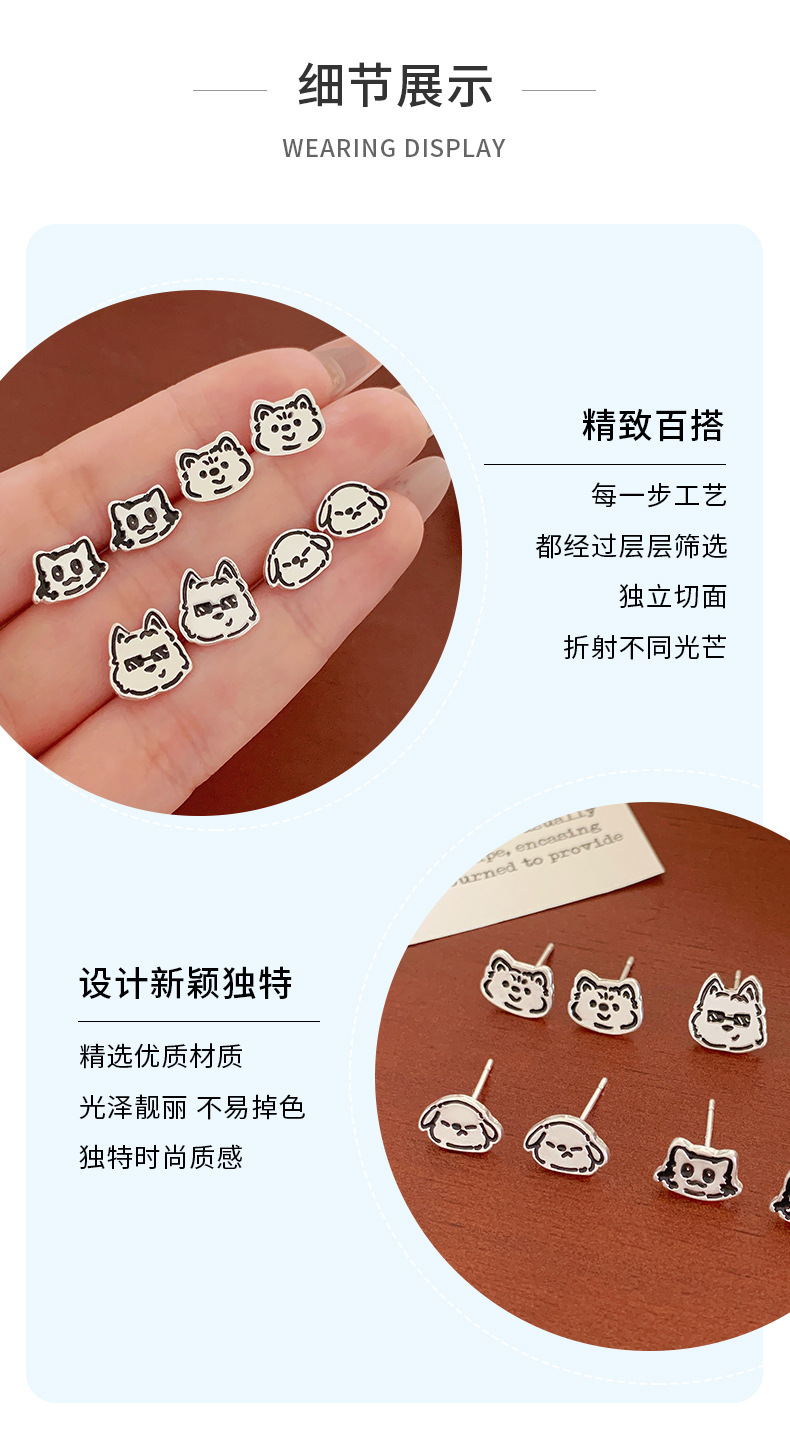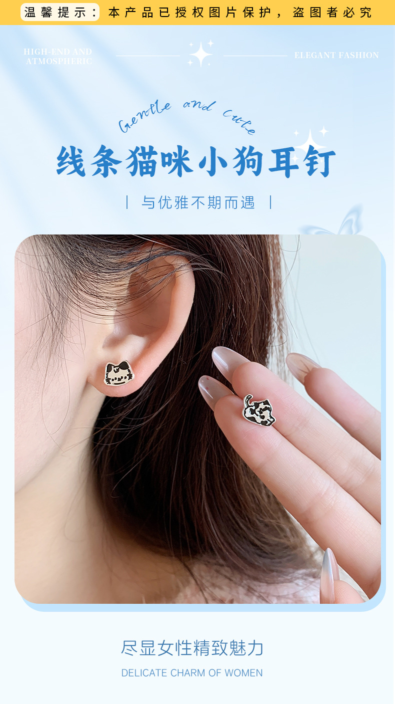 原创设计高级感线条猫咪小狗耳钉套装女银针小众可爱小巧卡通耳饰