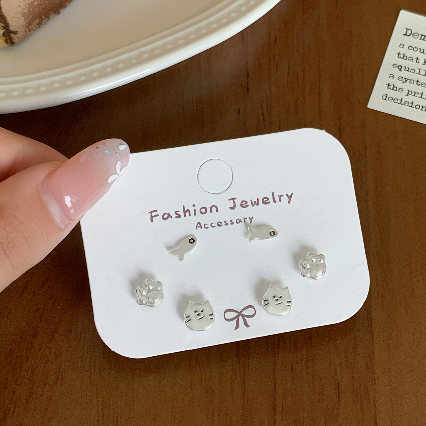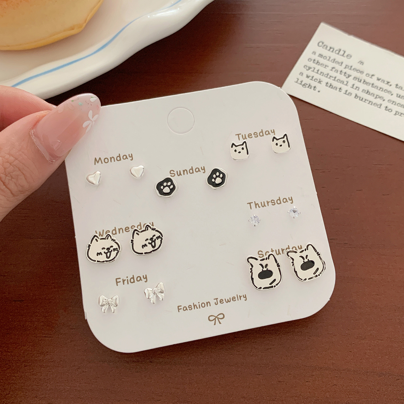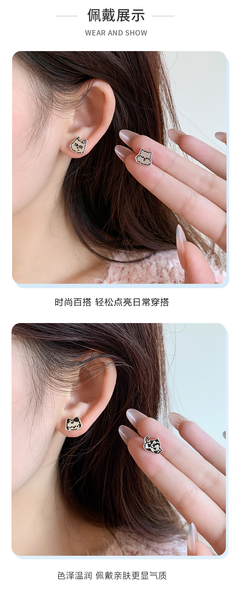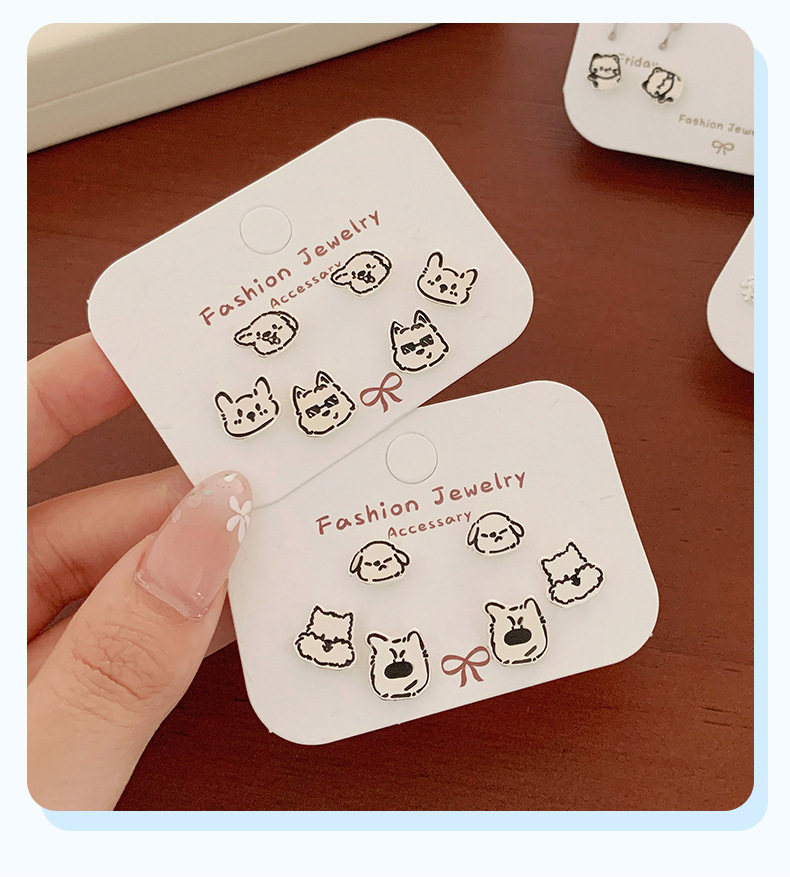 原创设计高级感线条猫咪小狗耳钉套装女银针小众可爱小巧卡通耳饰