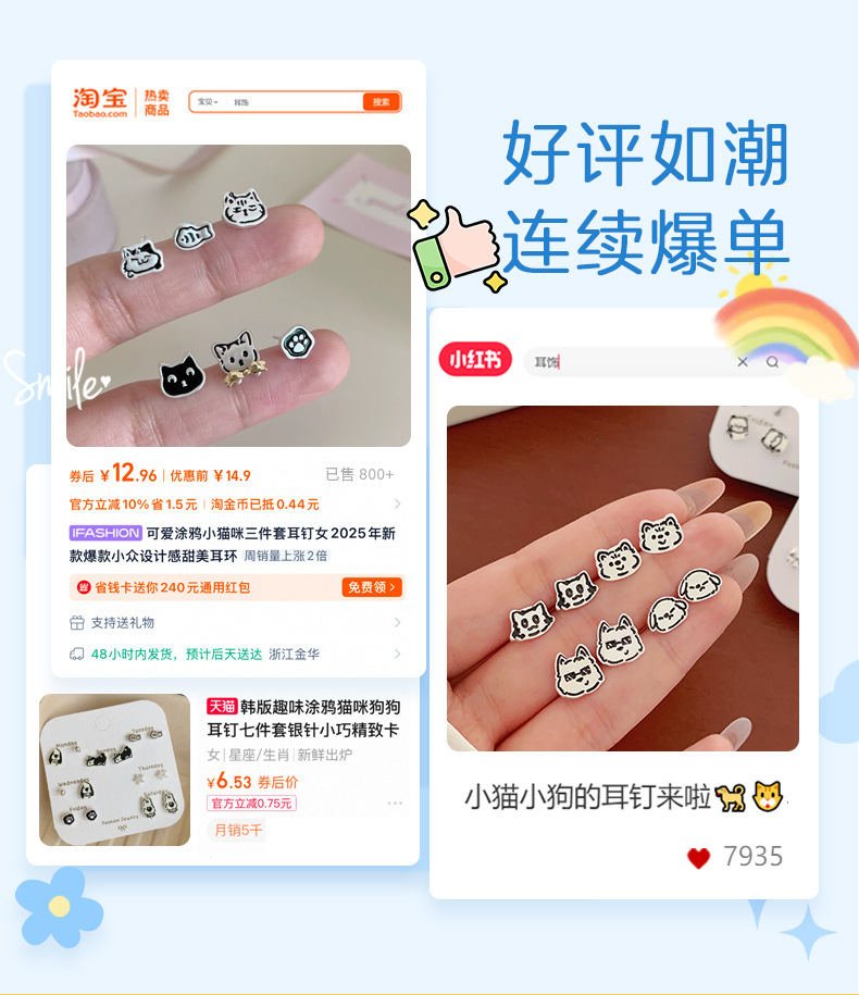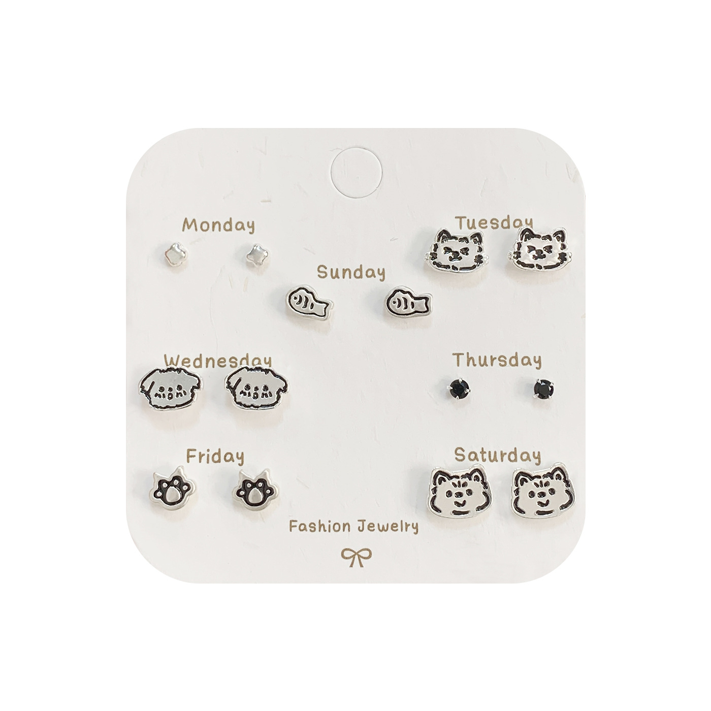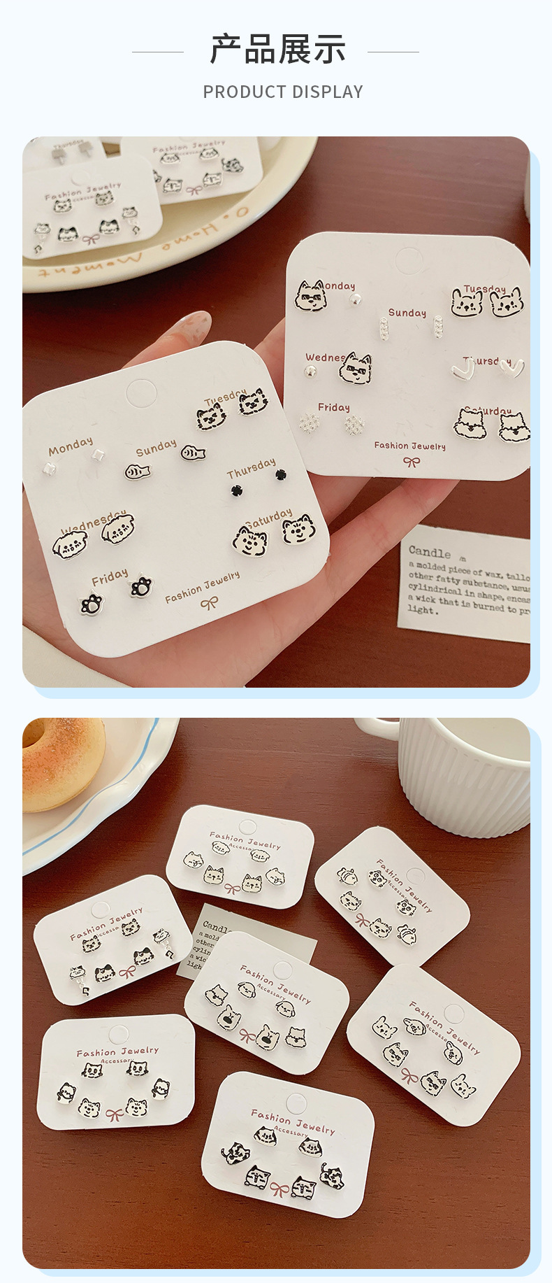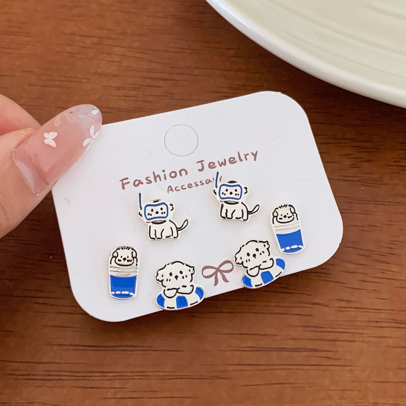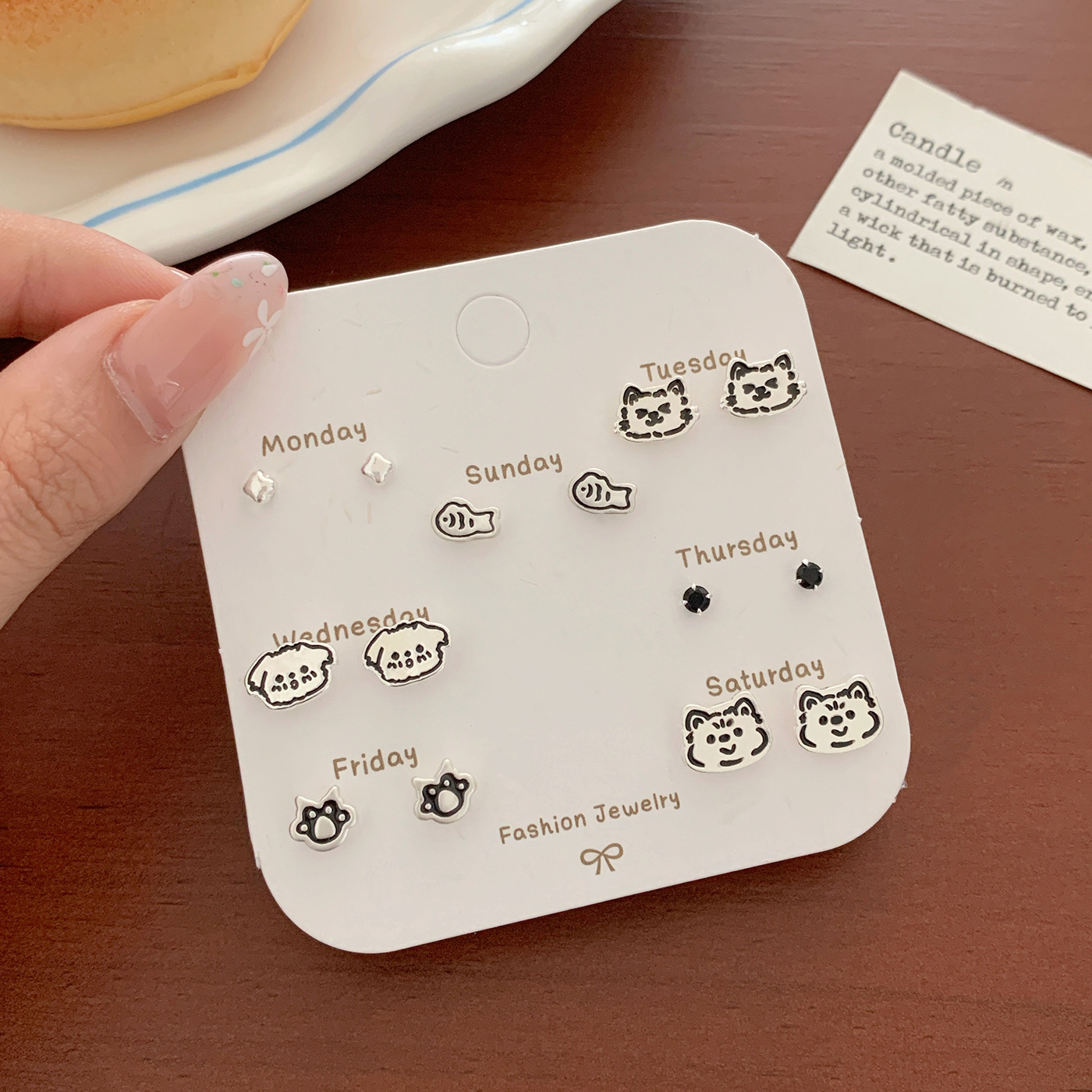 原创设计高级感线条猫咪小狗耳钉套装女银针小众可爱小巧卡通耳饰