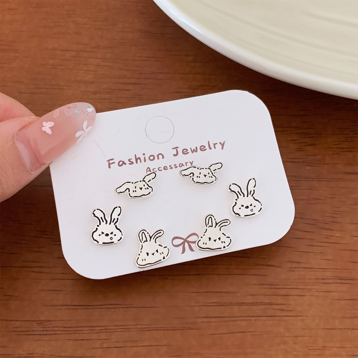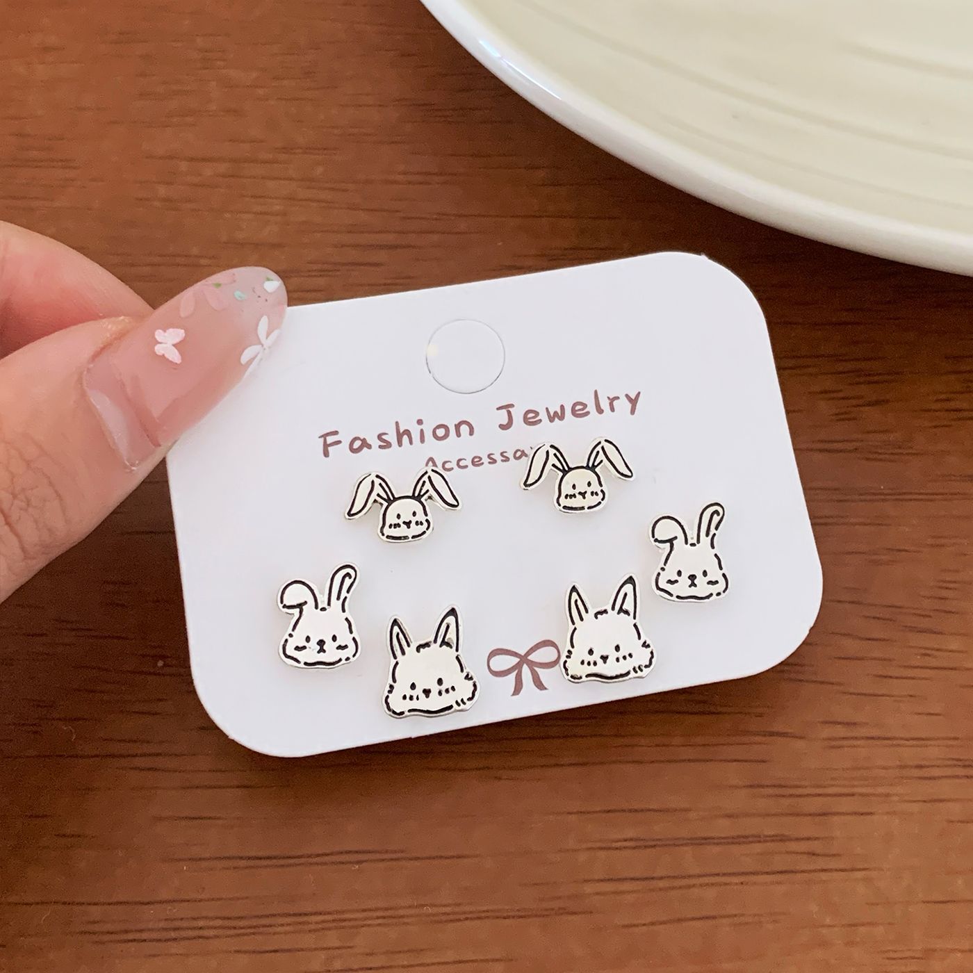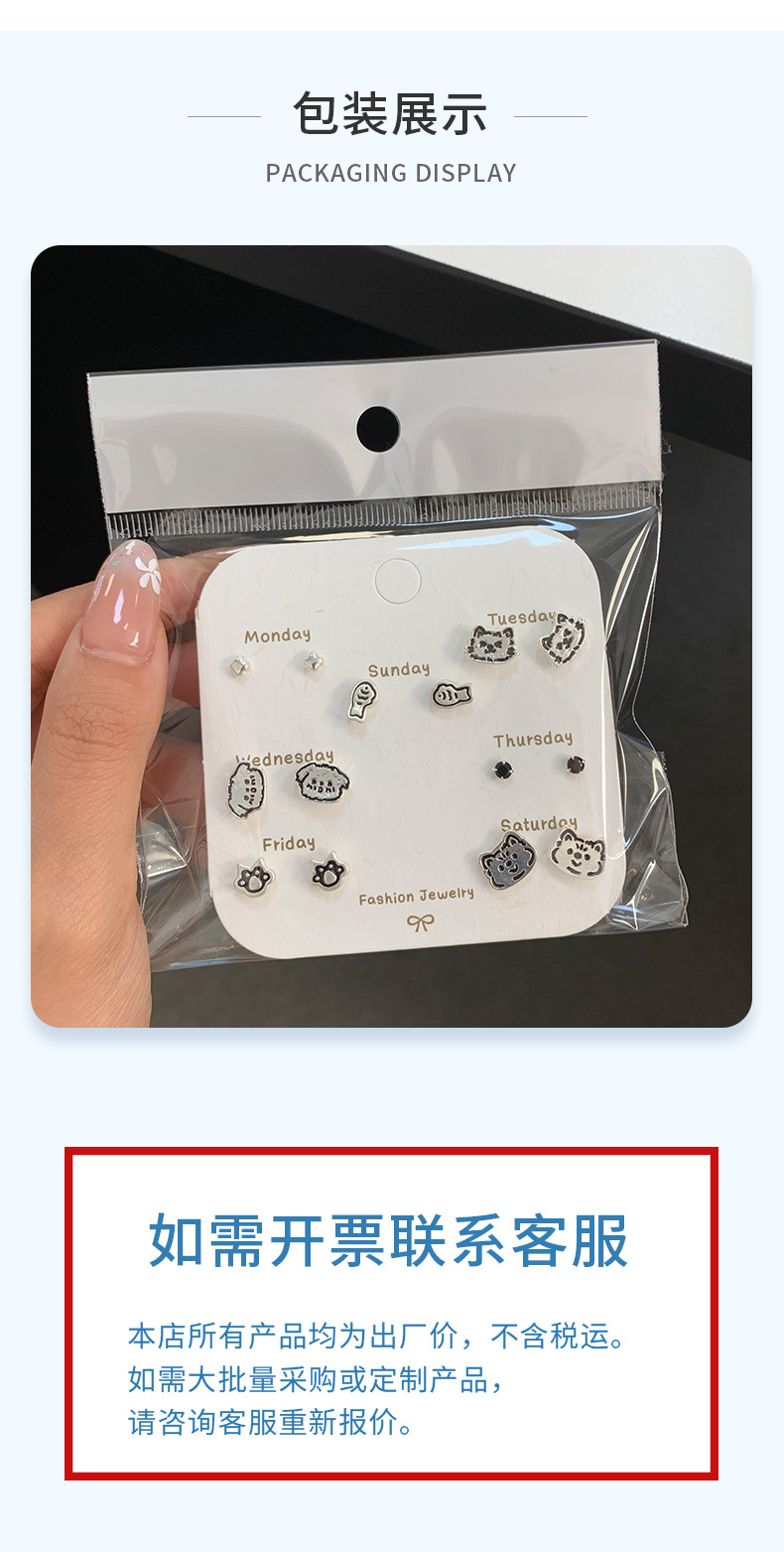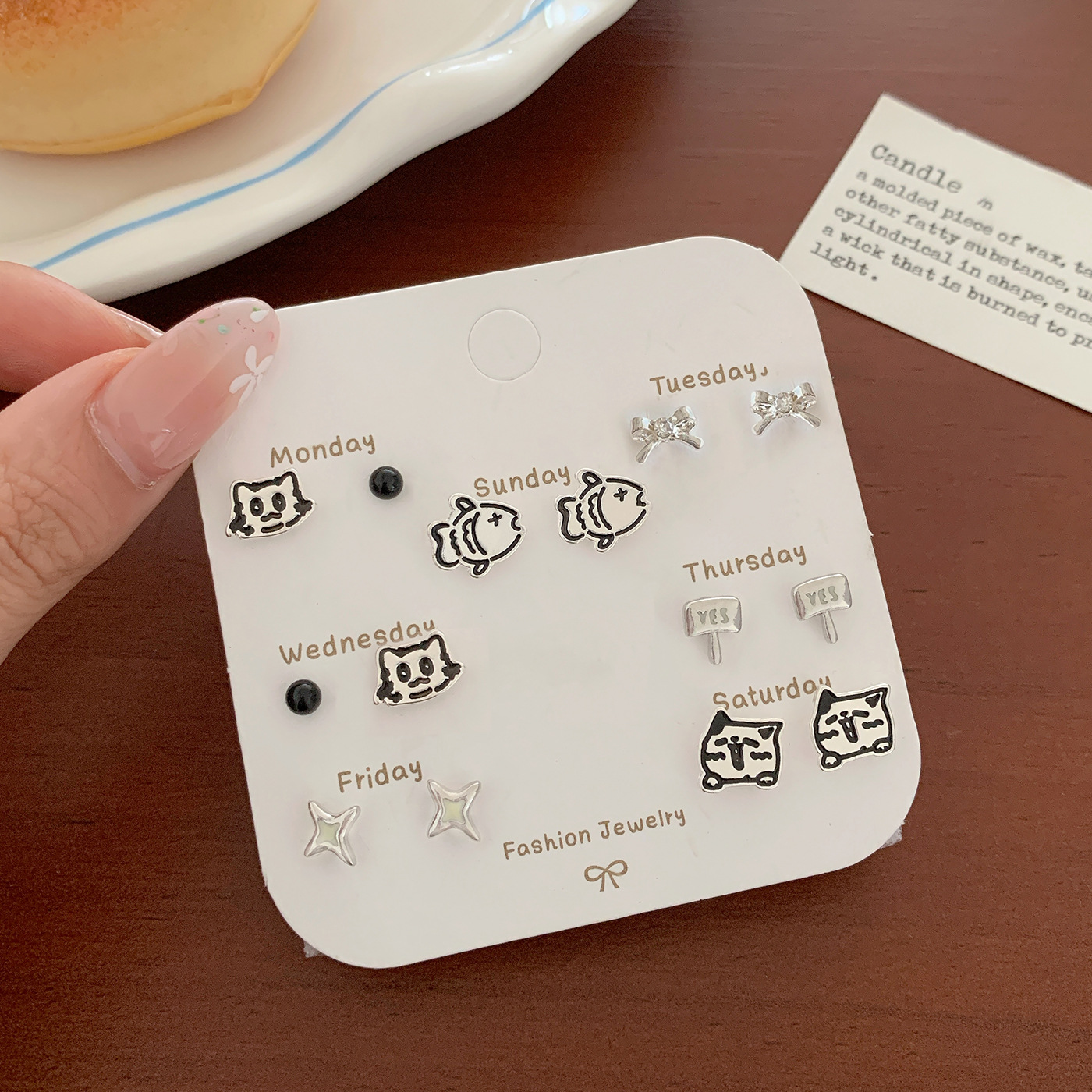 原创设计高级感线条猫咪小狗耳钉套装女银针小众可爱小巧卡通耳饰