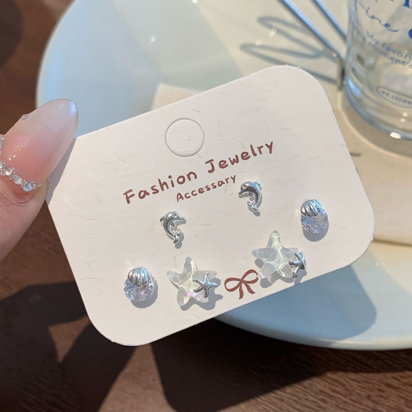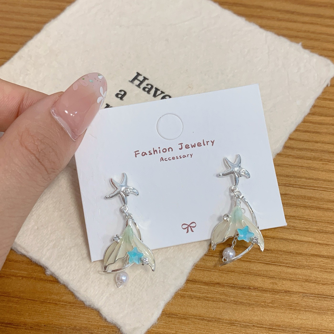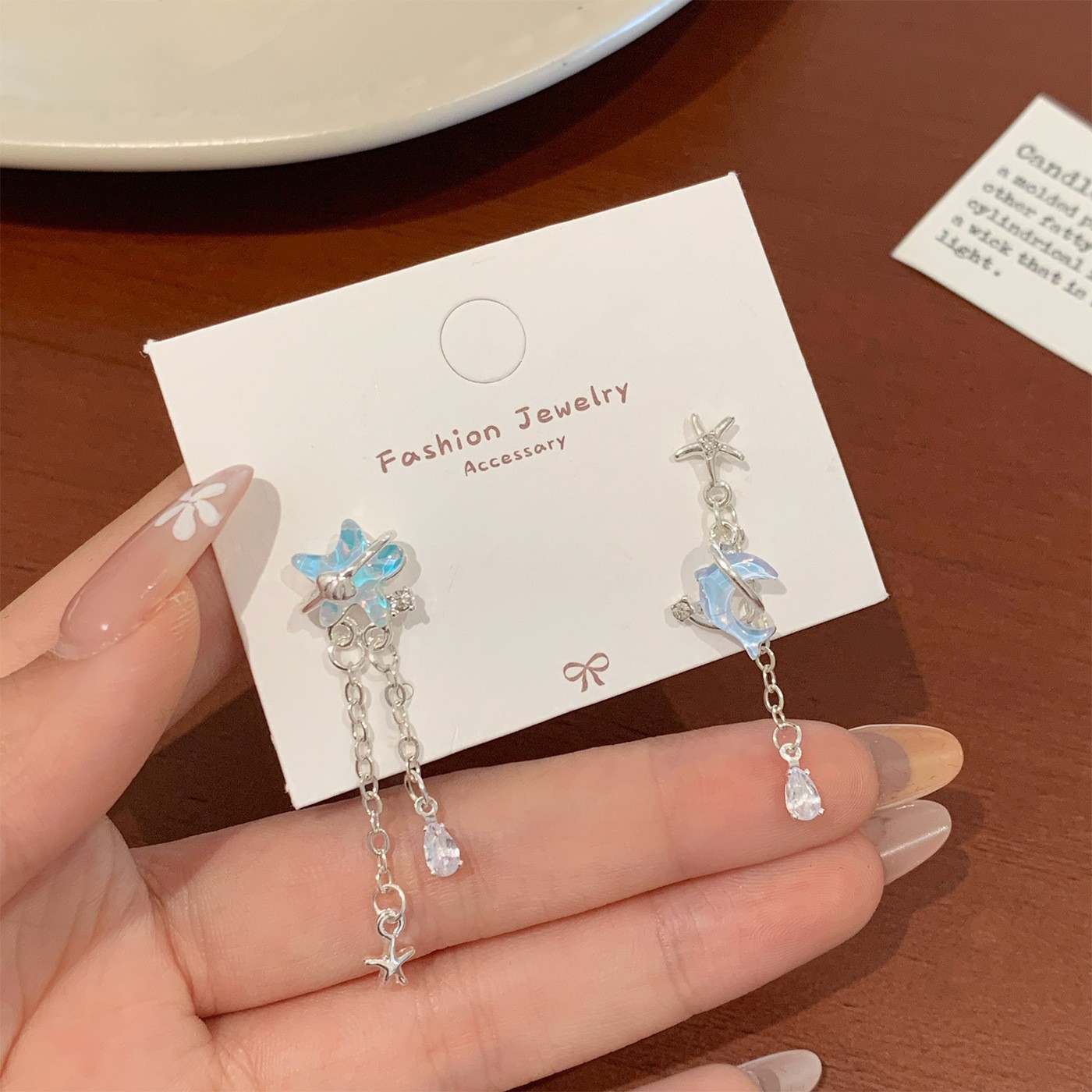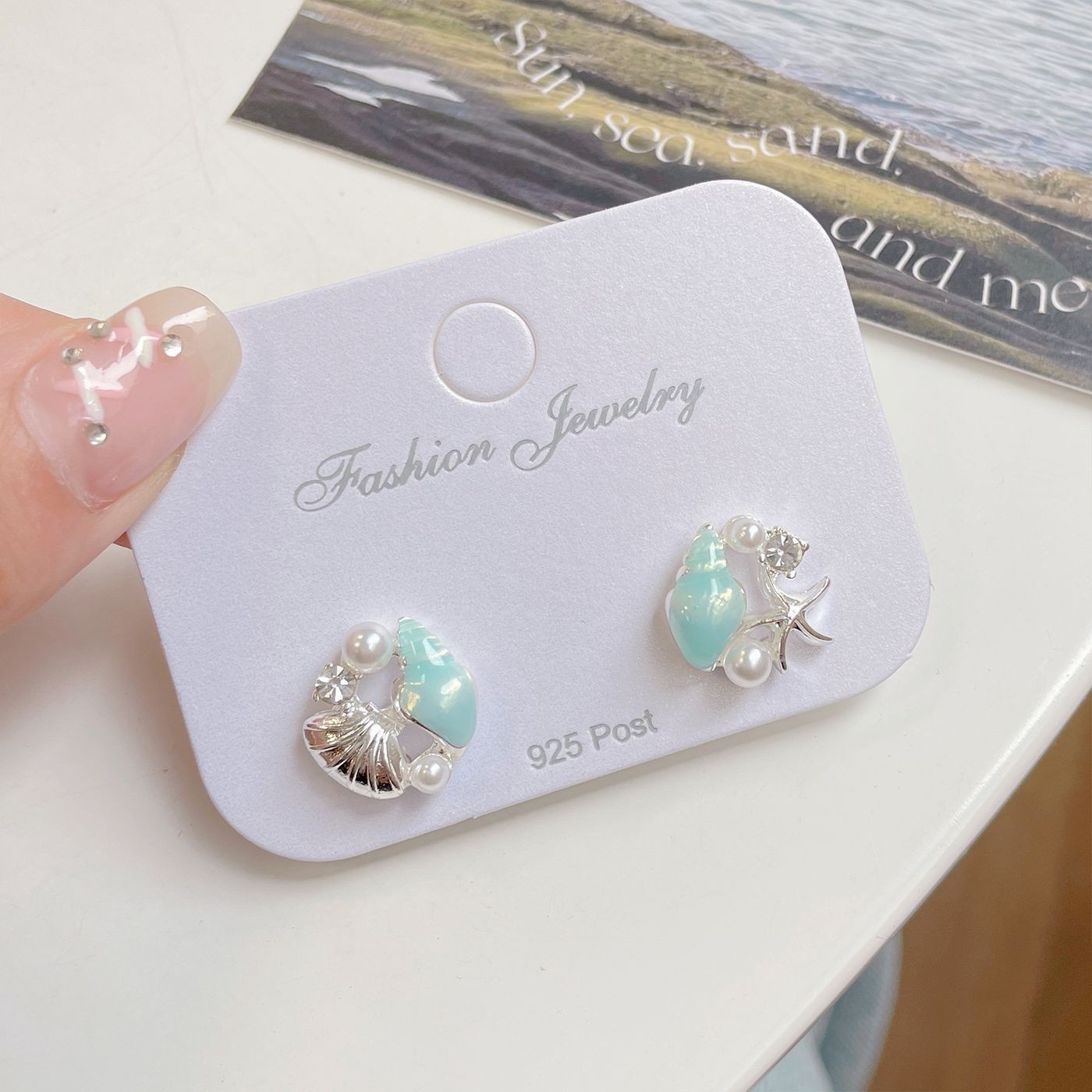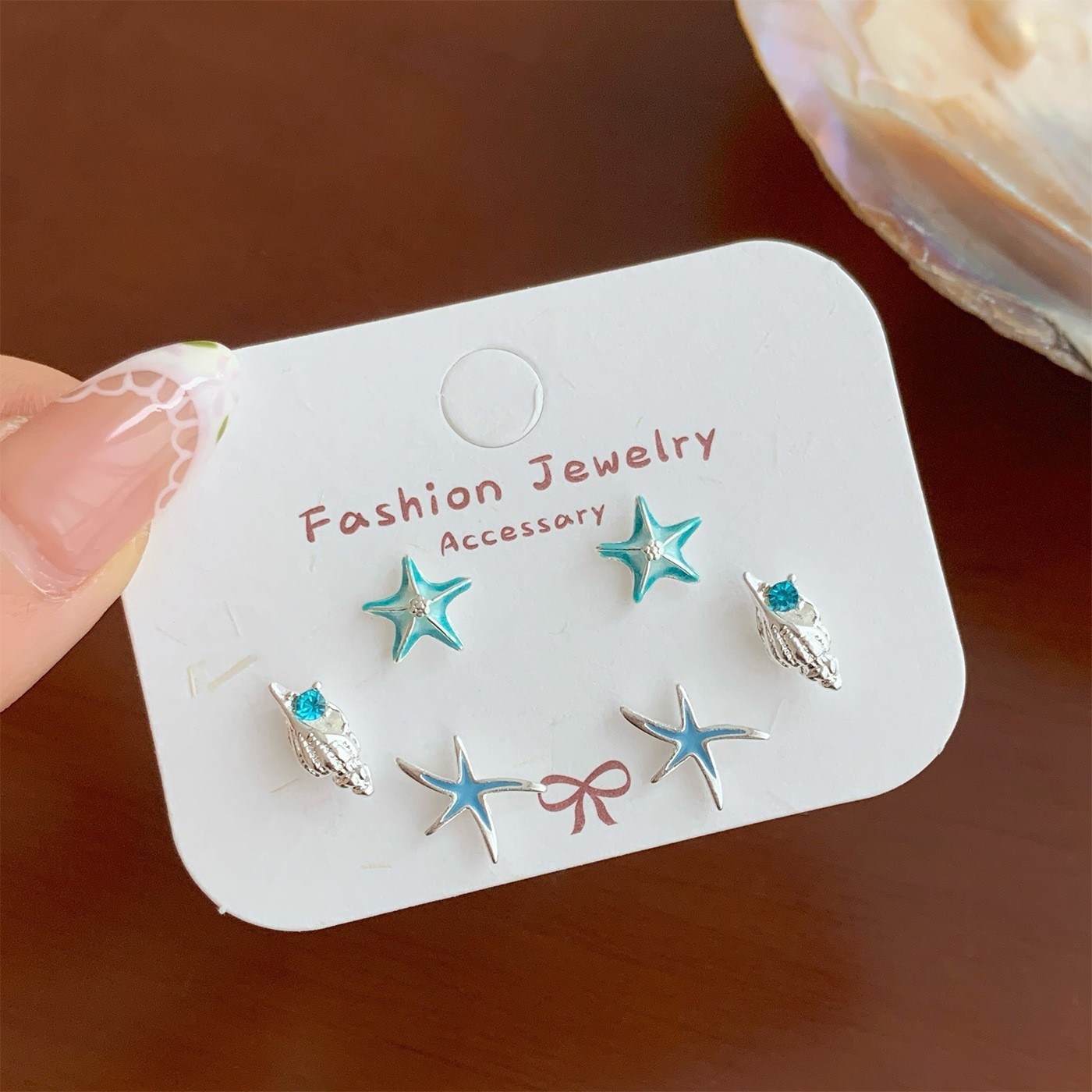 新款蓝色海洋系列合集耳环女银针简约海星海边度假风鱼尾学生耳饰