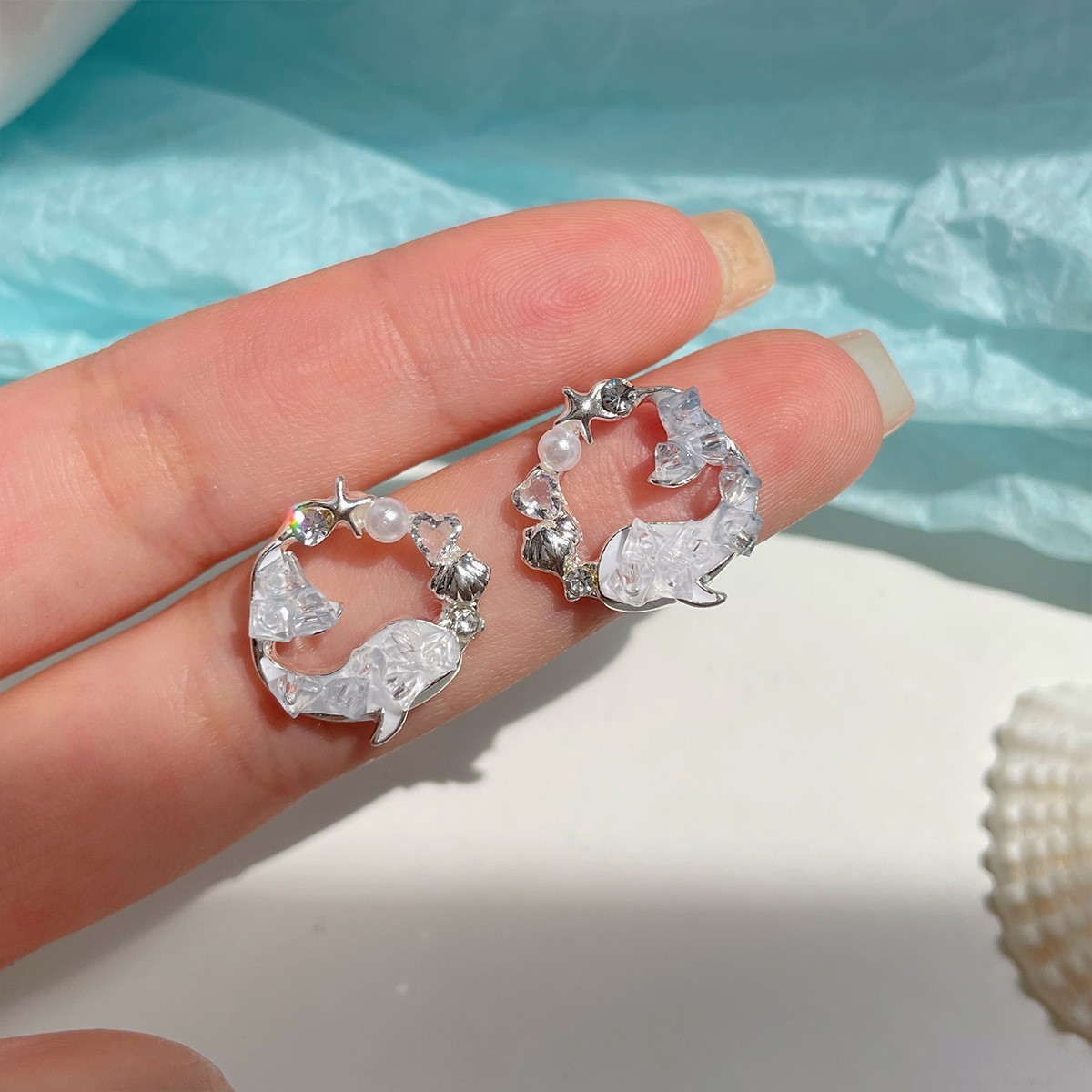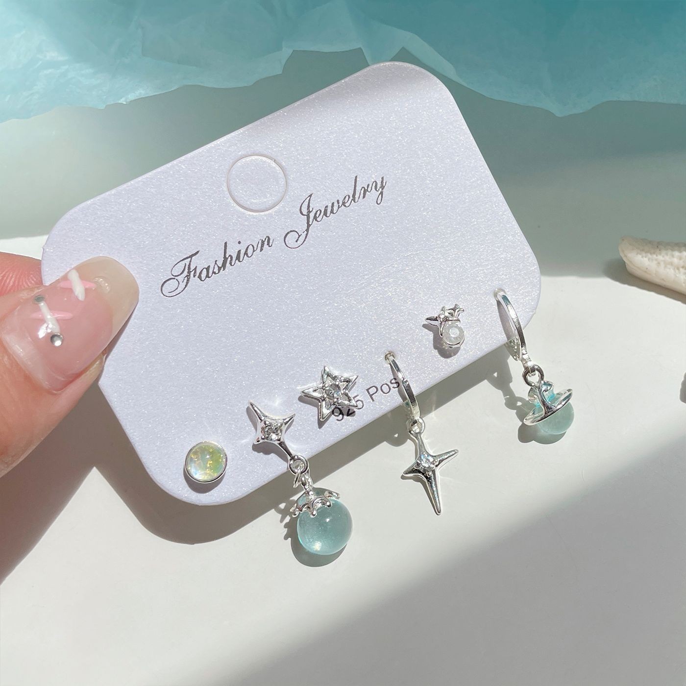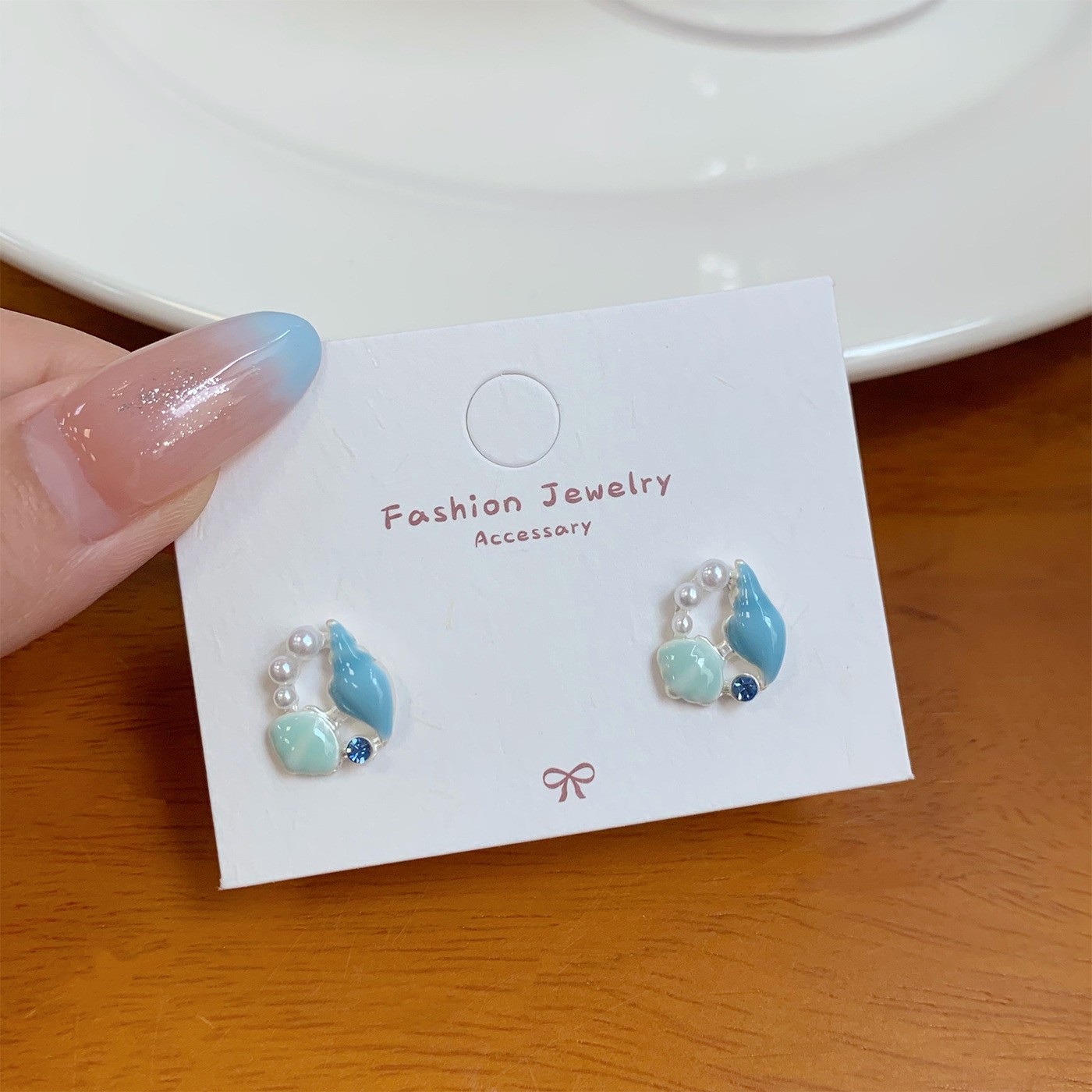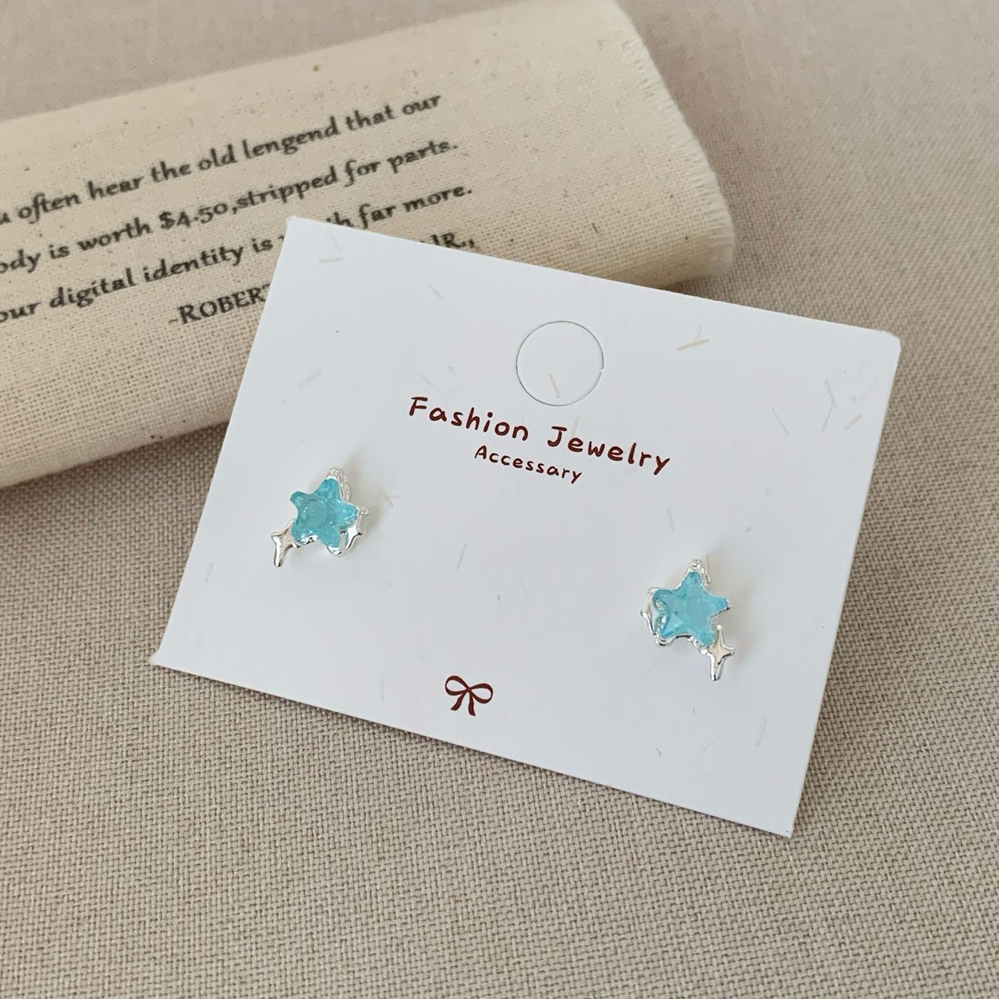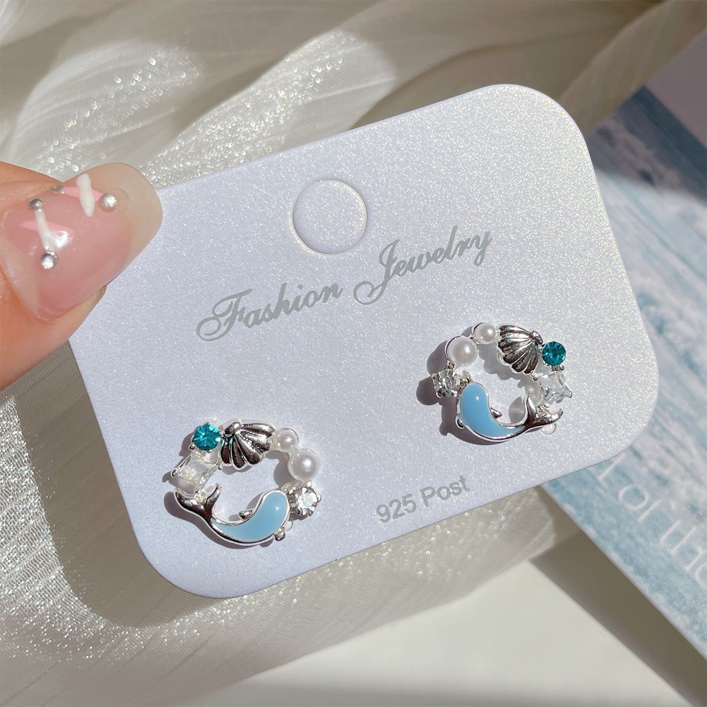 新款蓝色海洋系列合集耳环女银针简约海星海边度假风鱼尾学生耳饰