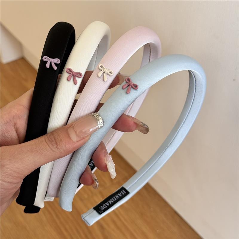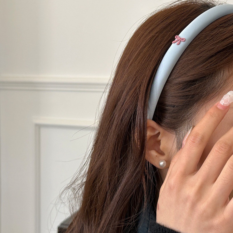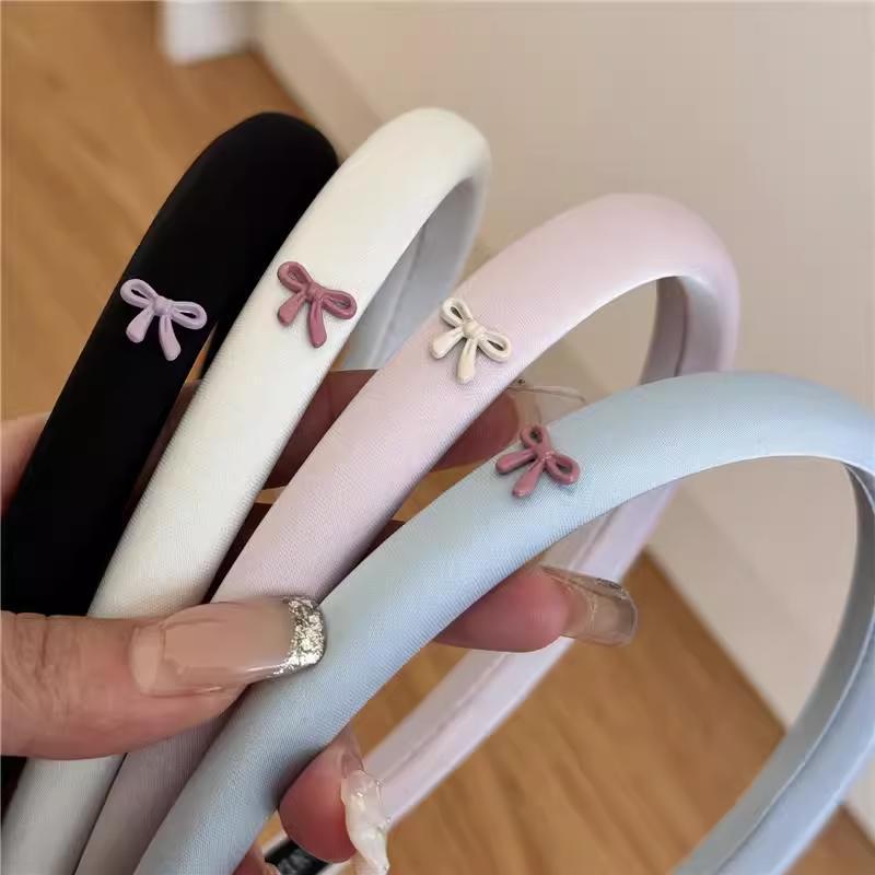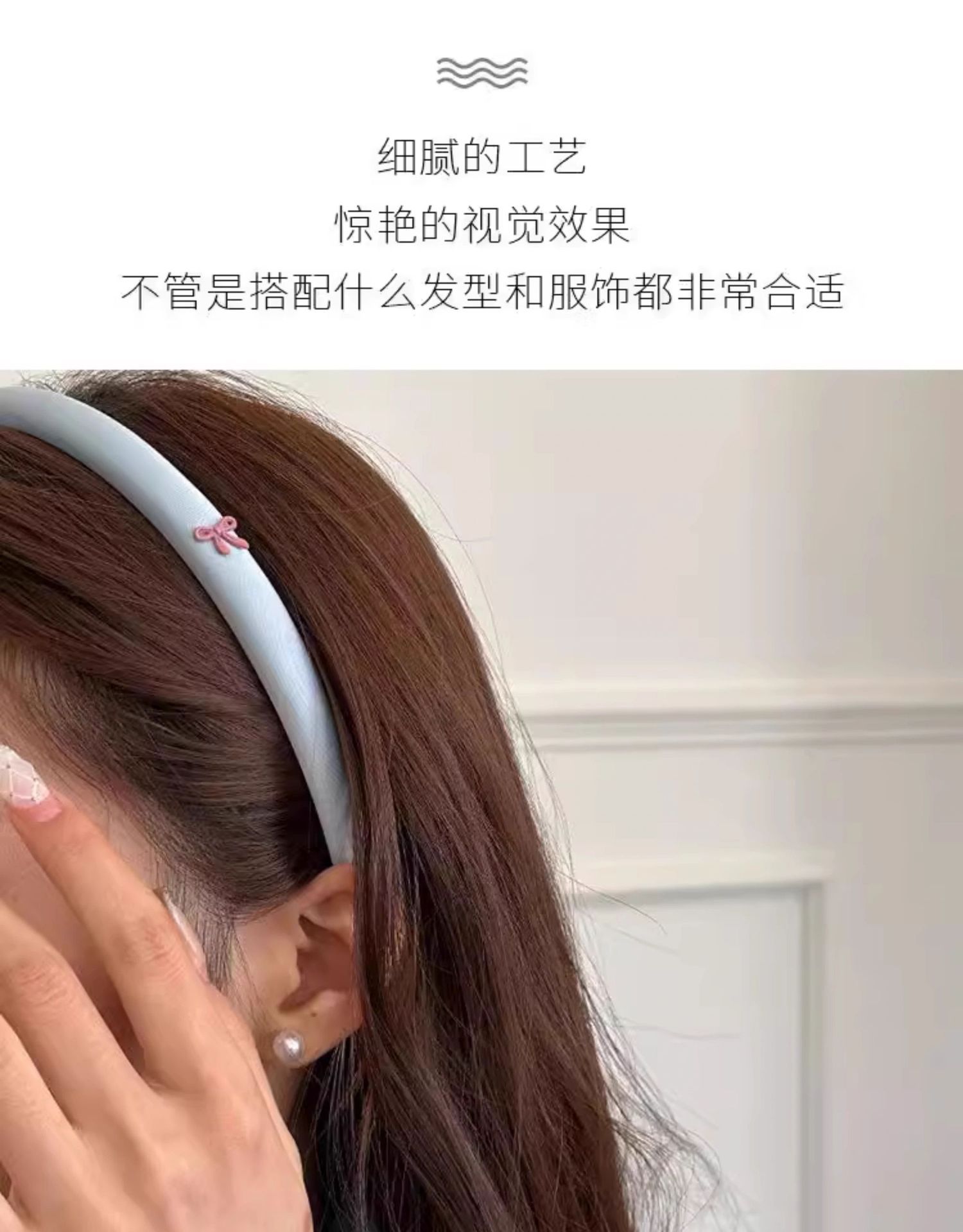 小标新款韩版高颅顶缎面蓝色发箍女彩色蝴蝶结高级感洋气时尚头箍