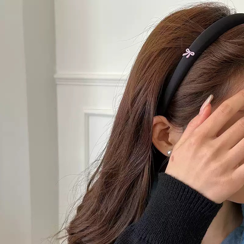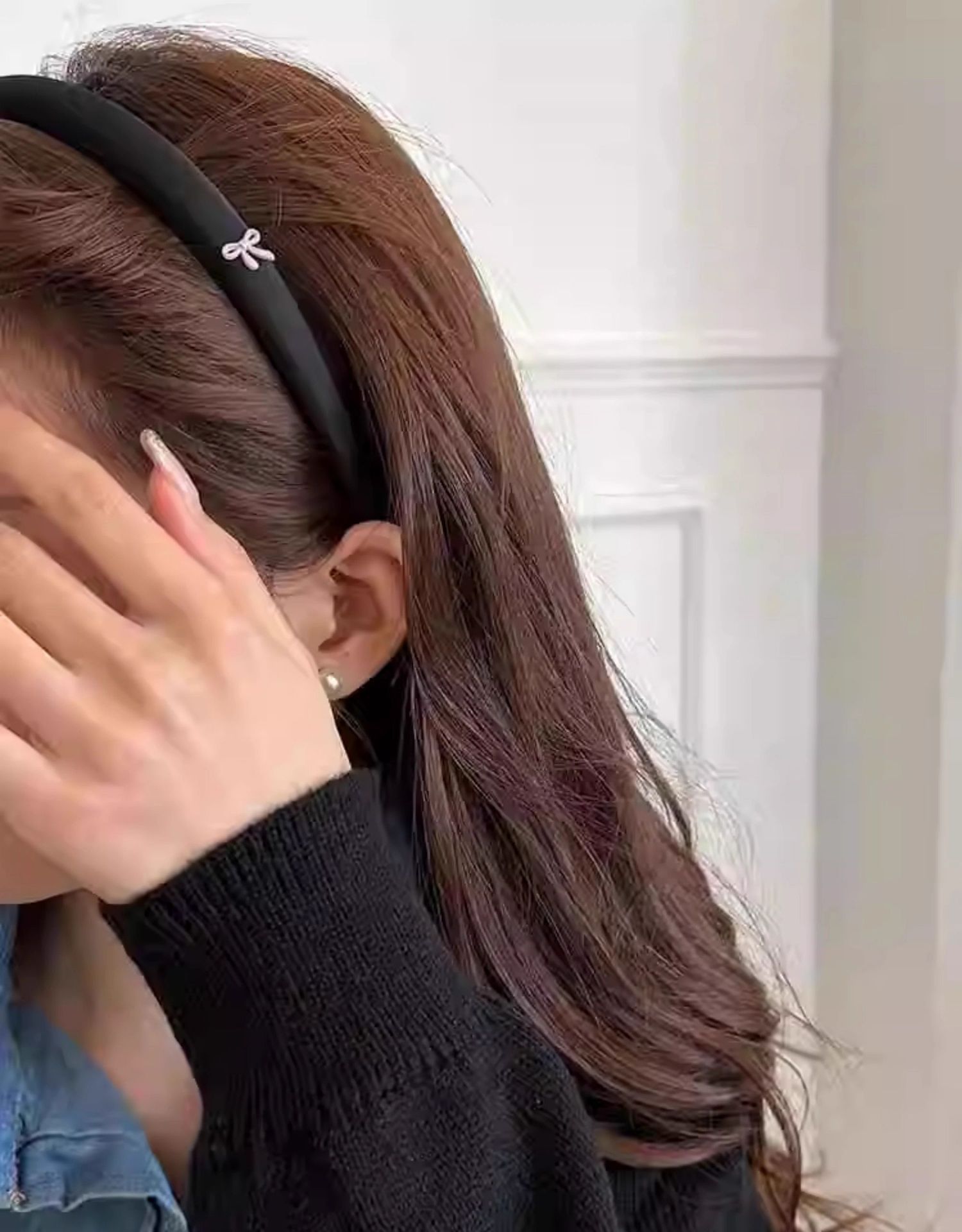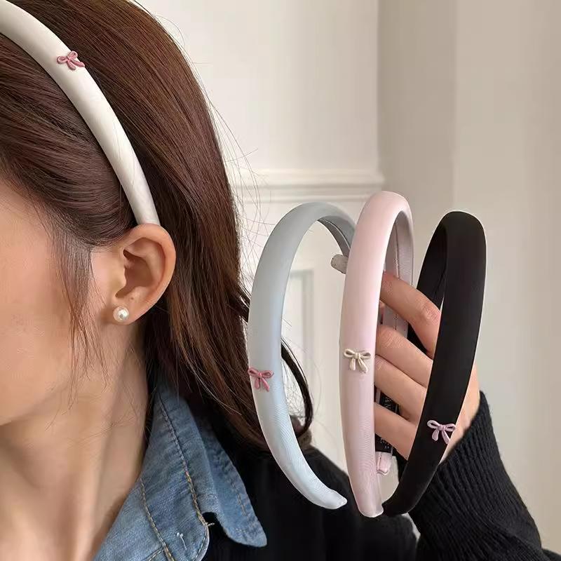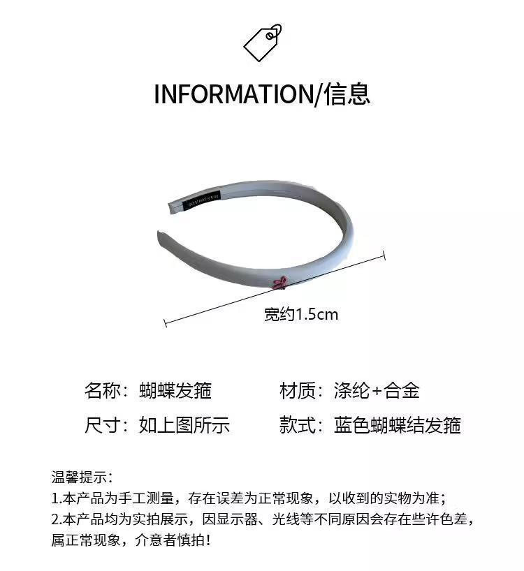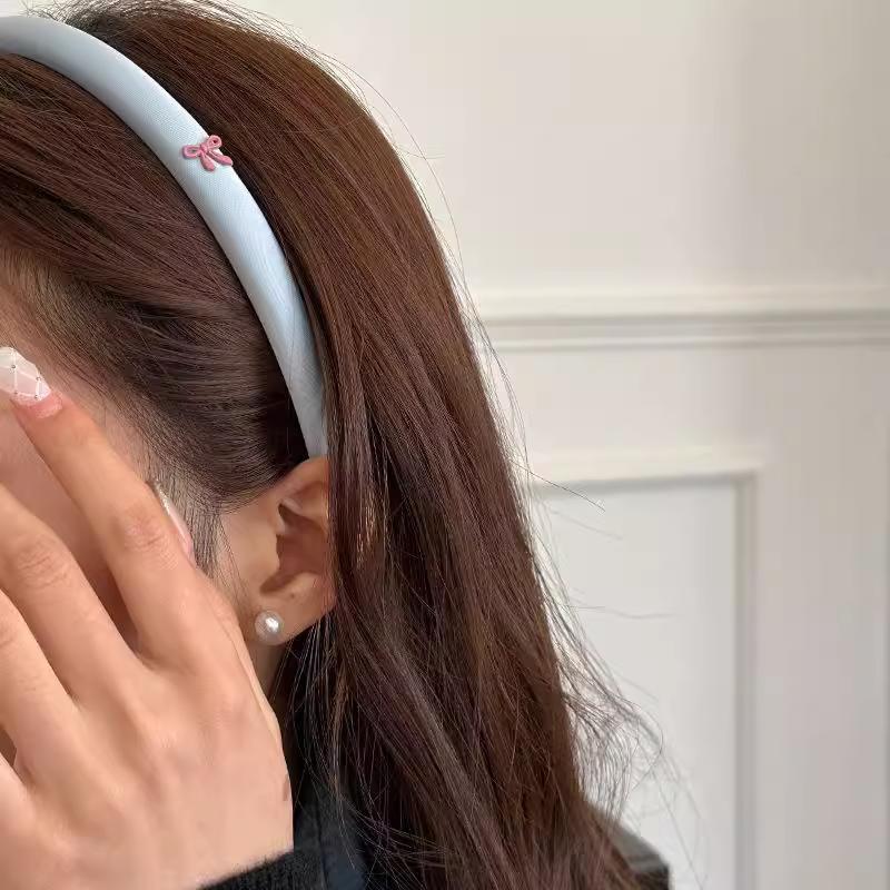 小标新款韩版高颅顶缎面蓝色发箍女彩色蝴蝶结高级感洋气时尚头箍