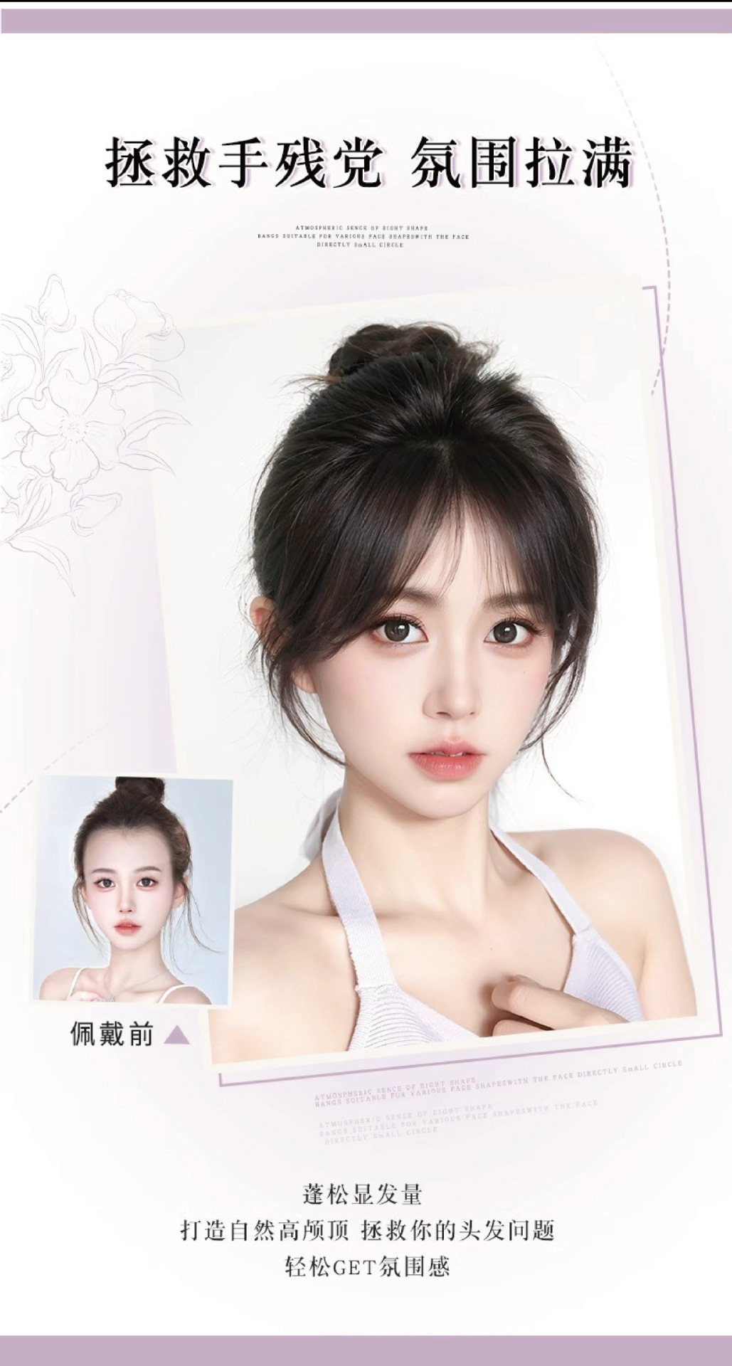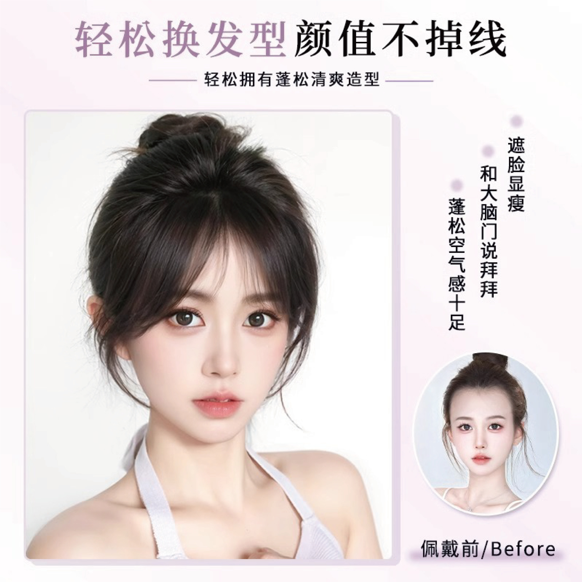 刘海假发女蓬松增发量头顶补发八字刘海夹轻薄隐形仿真人假刘海夹