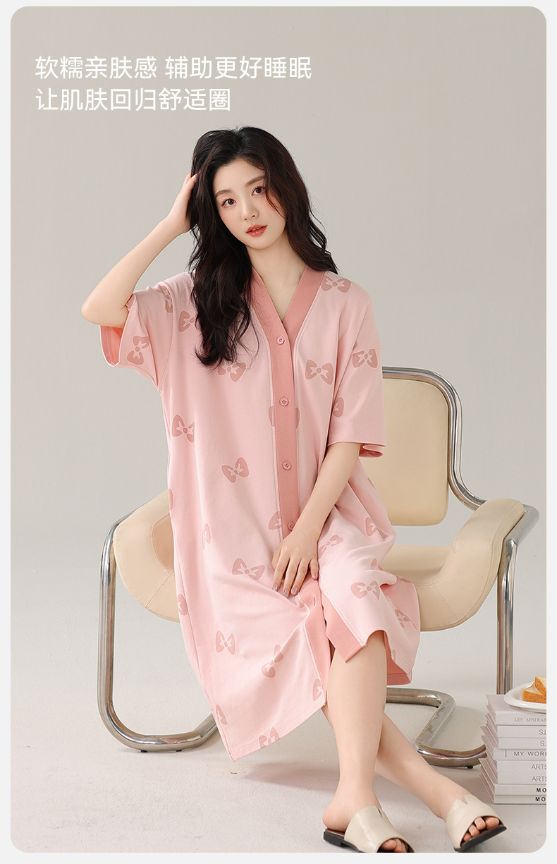 睡裙女款2025新款夏季纯棉女士睡衣短袖夏天夏款连衣裙全棉家居服