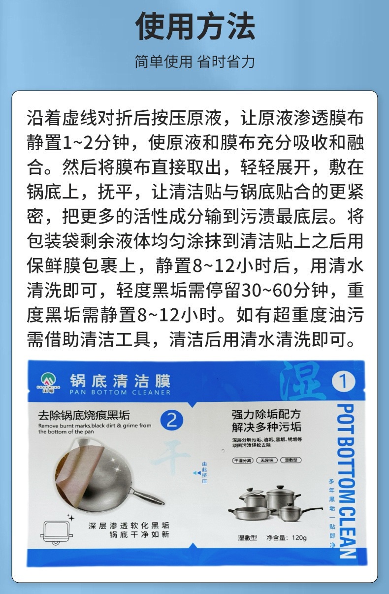 锅底清洁膜锅底顽固黑垢清除厨房强力除垢锅底防锈锅底黑垢一膜净