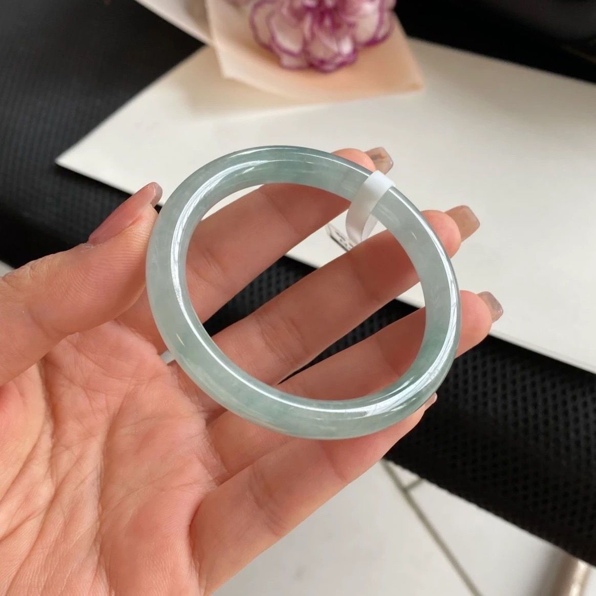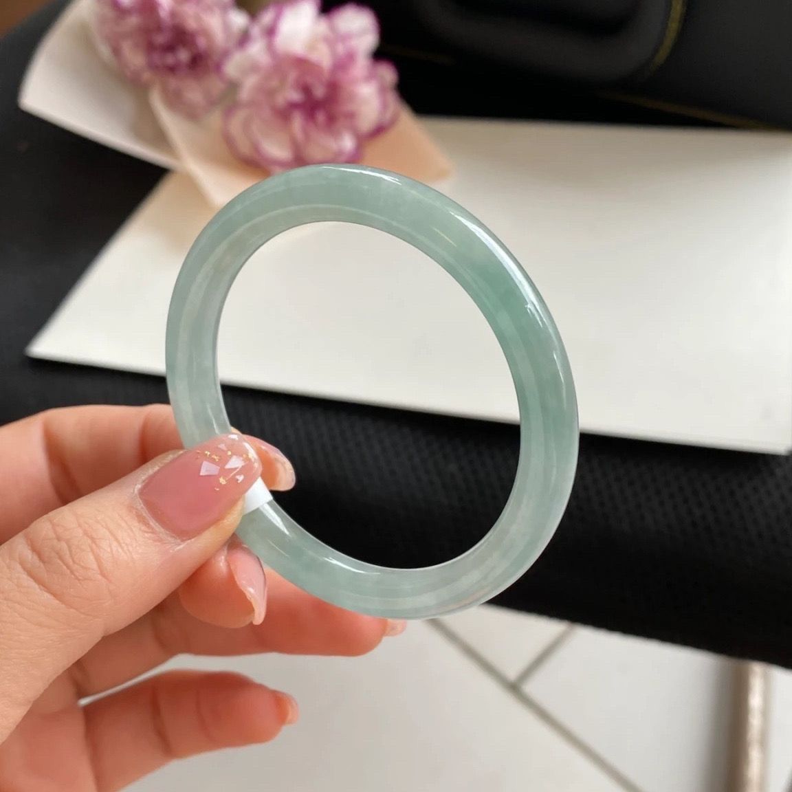 缅甸老坑翡翠冰糯种浅绿飘绿平安镯细圆条翡翠玉镯子处理贵妃女款