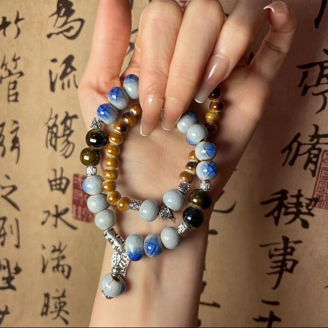 景德镇陶瓷手链批发夜市摆摊创业爆款合集花釉珠手串珠民族风饰品