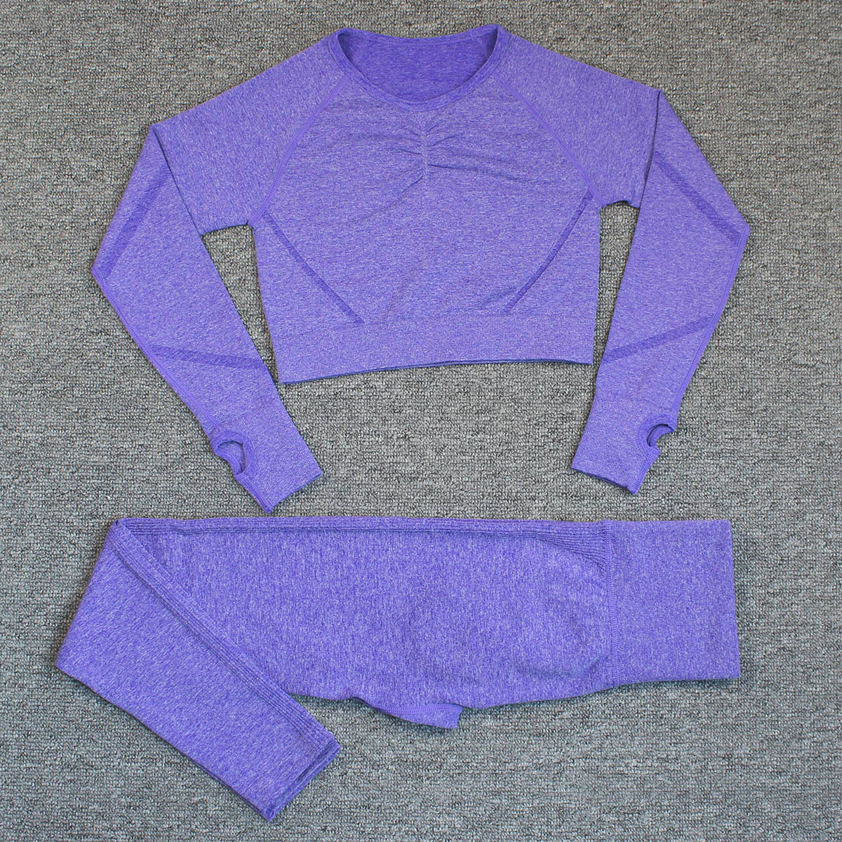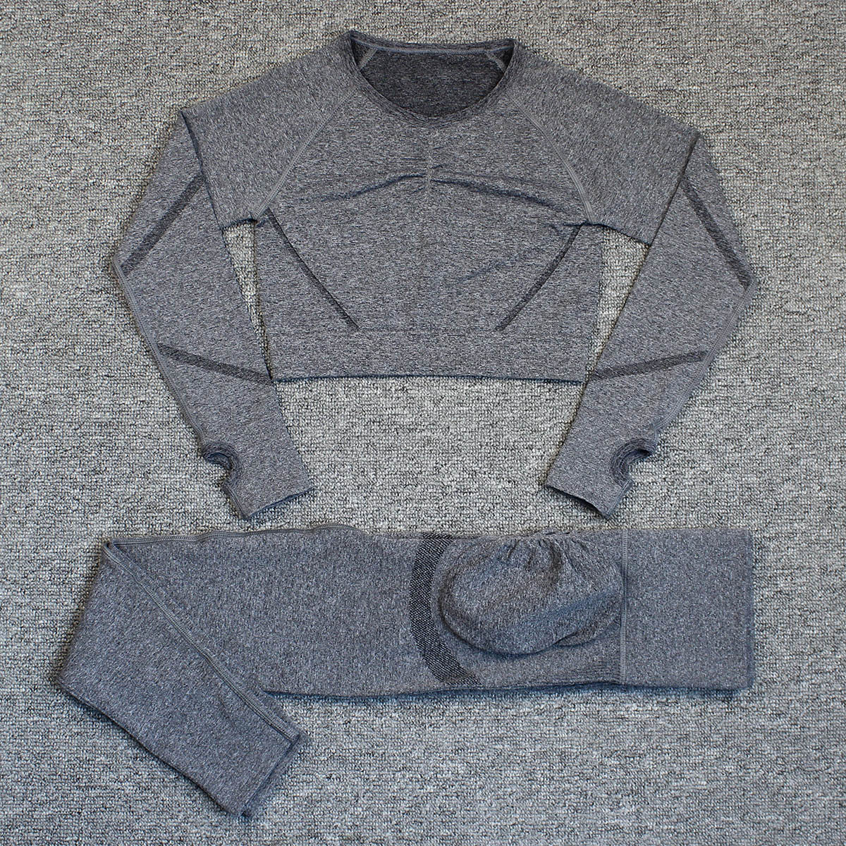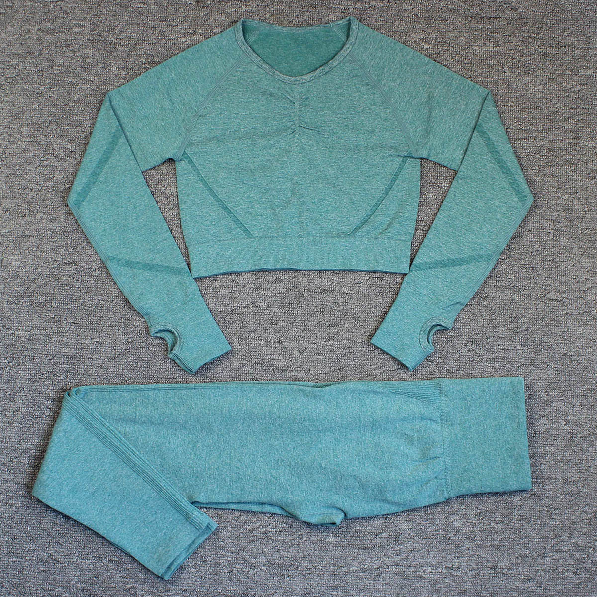 爆款无缝紧身笑脸瑜伽套装女高腰收腹蜜桃臀长裤长袖上衣健身衣