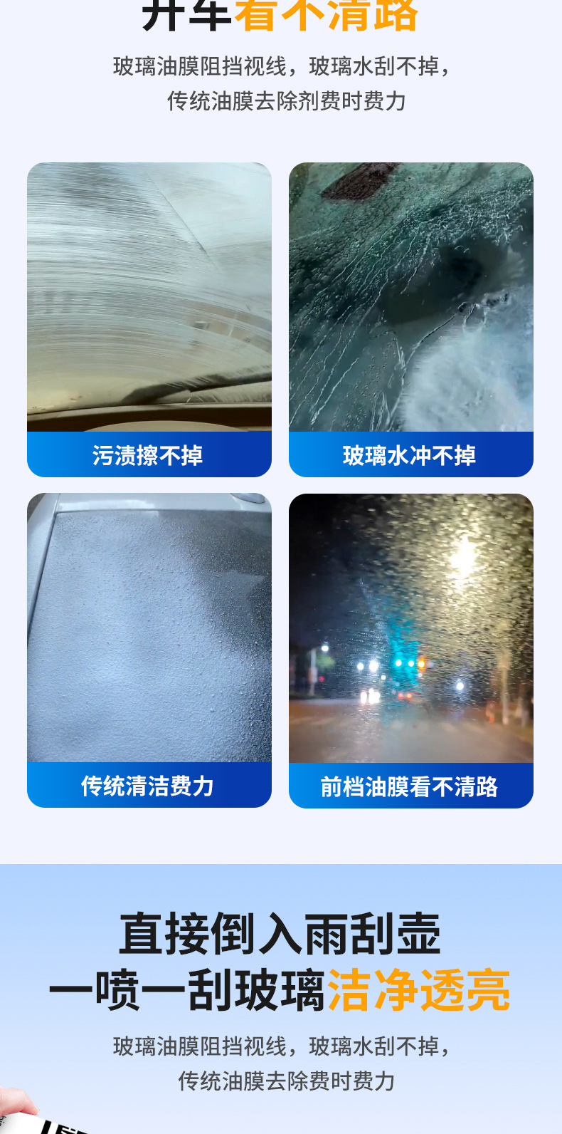 玻璃爽油膜清洁剂汽车前挡风玻璃强力去污除垢清洗剂车窗污渍专用