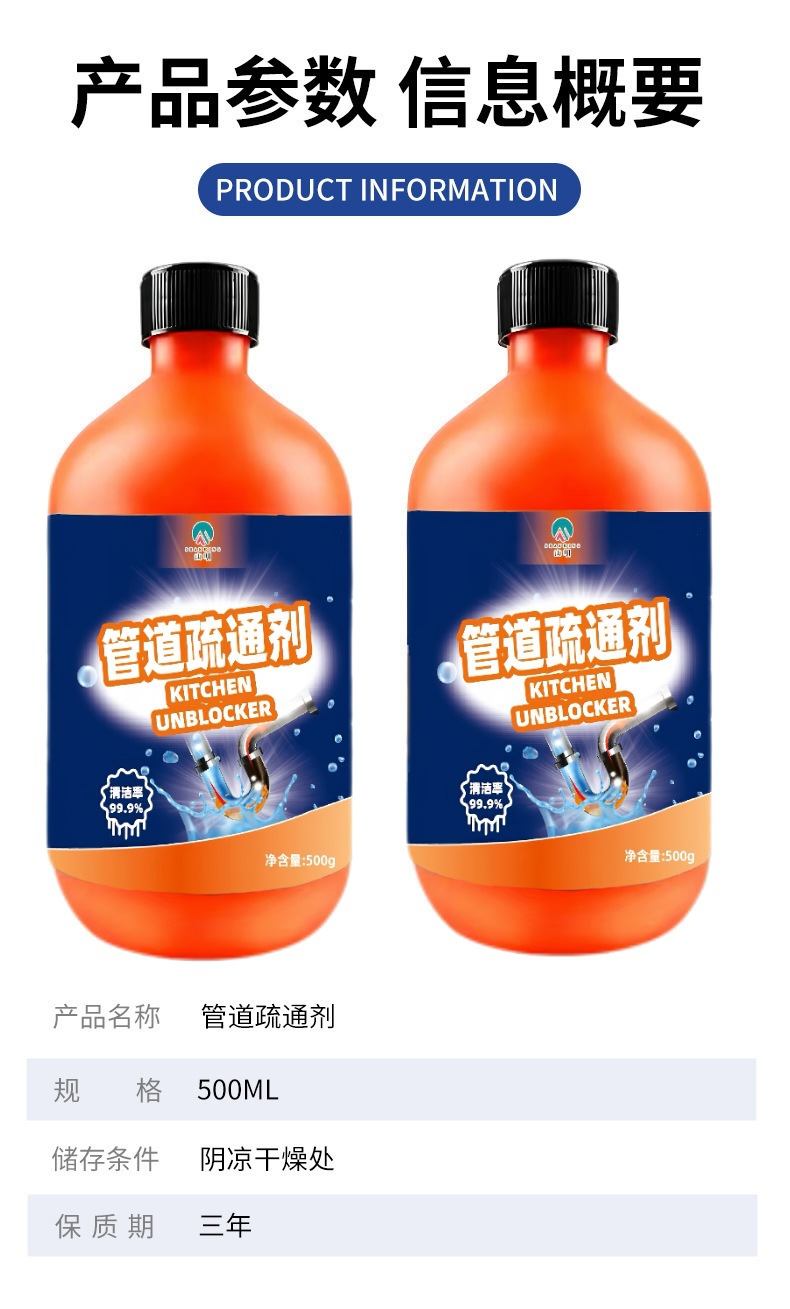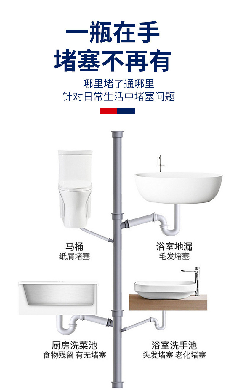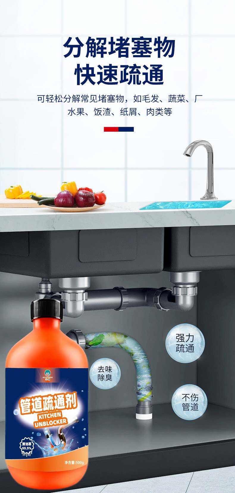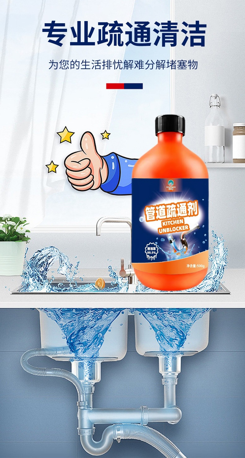 抖音同款管道疏通剂强力溶解厨房下水道油污渍马桶厕所堵塞疏通液