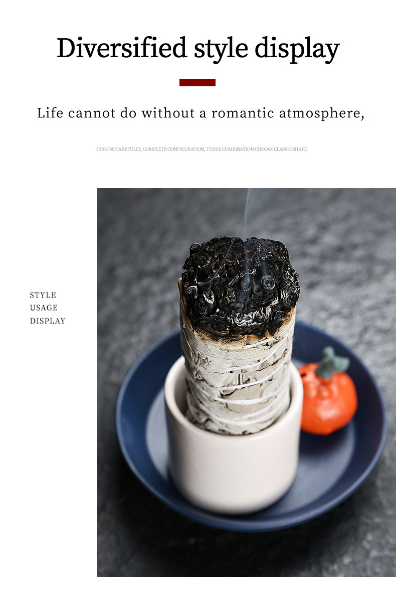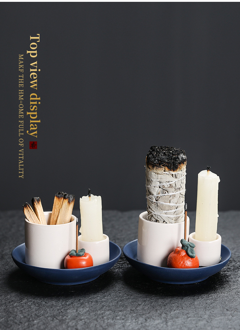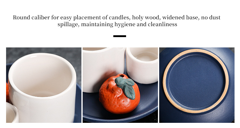 跨境 出口北欧风格陶瓷香薰烛台 烧鼠烧圣木托盘盘陶瓷底座蜡台