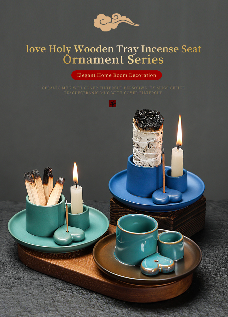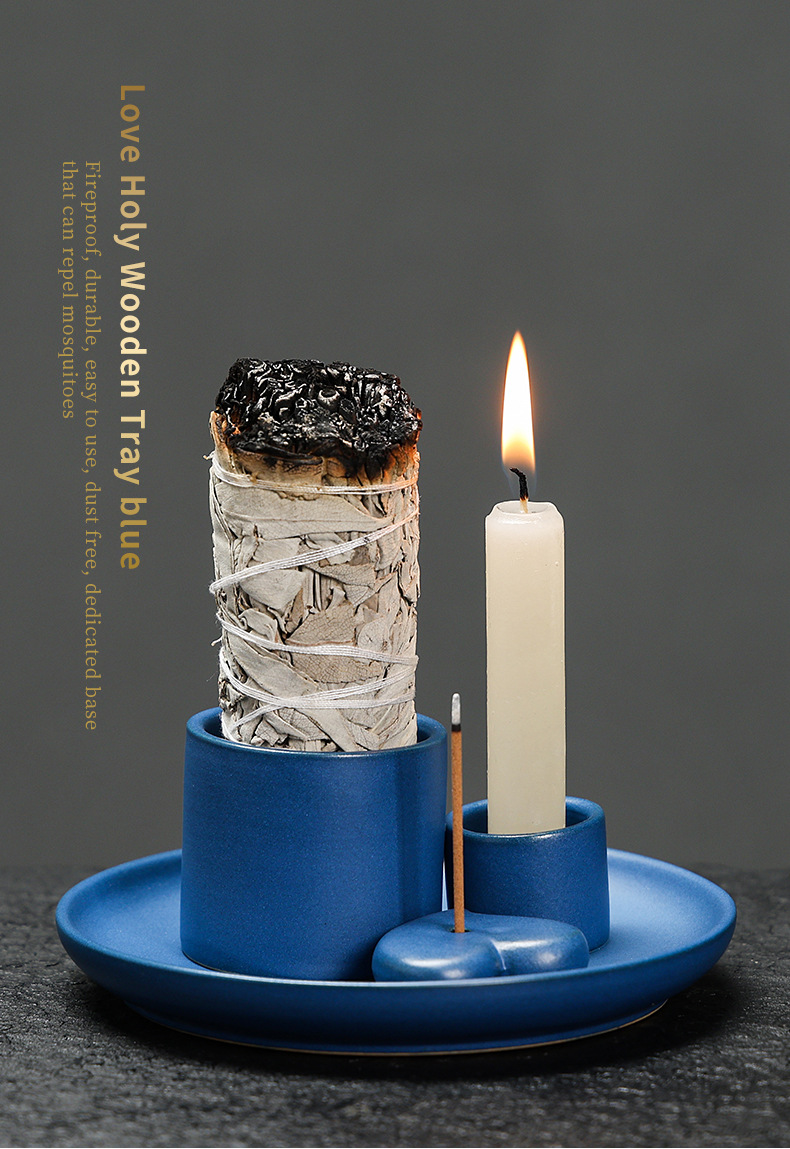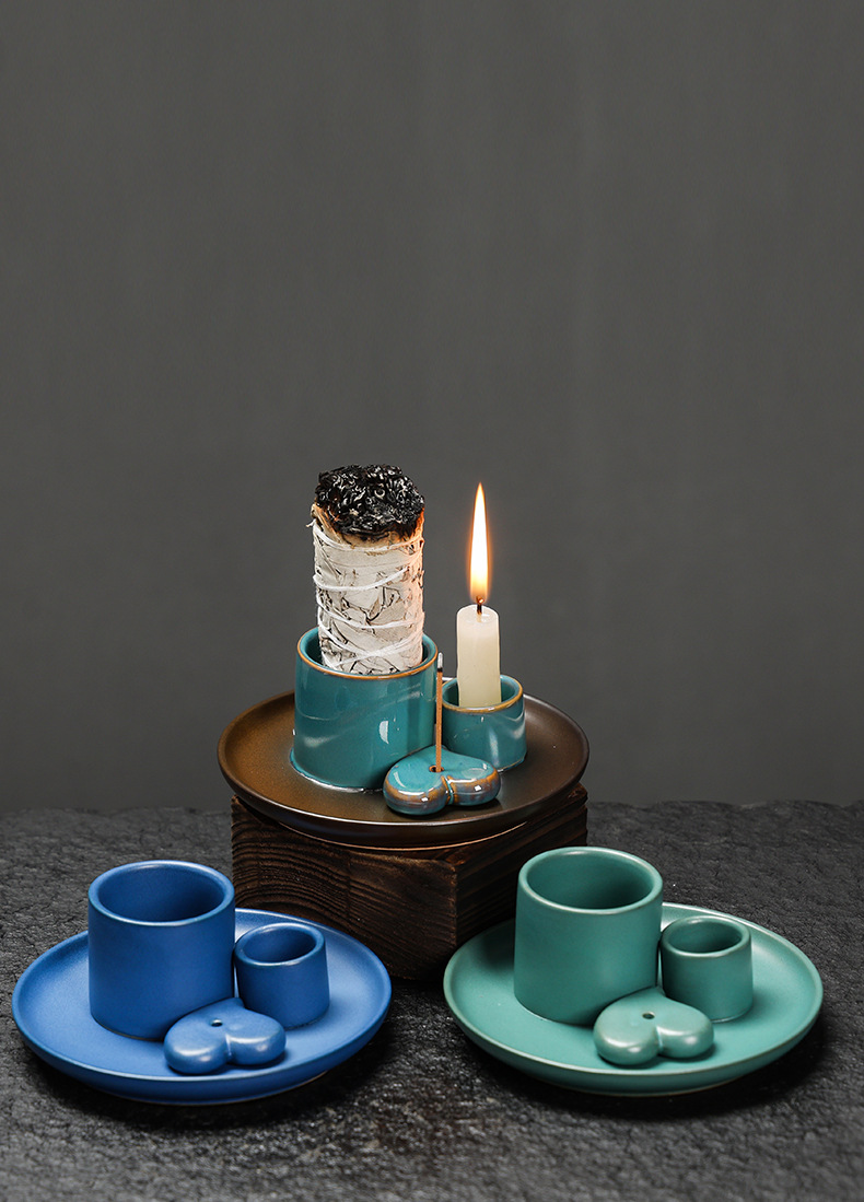 简约风格陶瓷香薰烛台香薰炉北欧风蜡烛杯氛围装饰鼠尾草圣木托盘