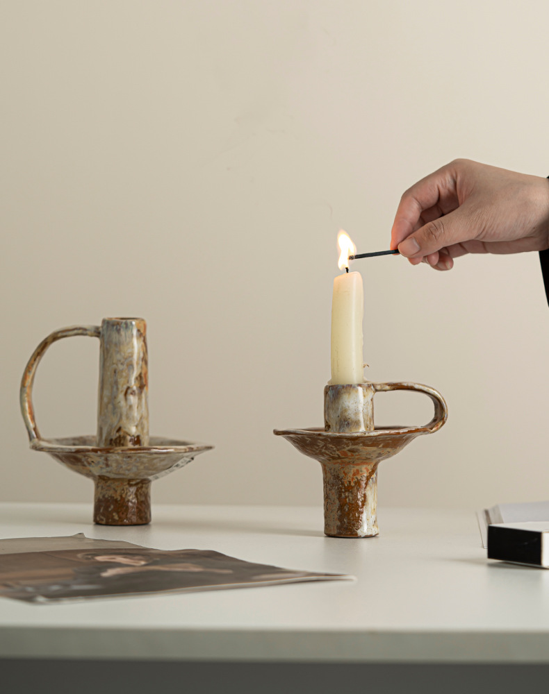 桂陇陶瓷 复古陶瓷烛台民宿家用陶瓷窑变香薰装饰手工蜡烛摆件