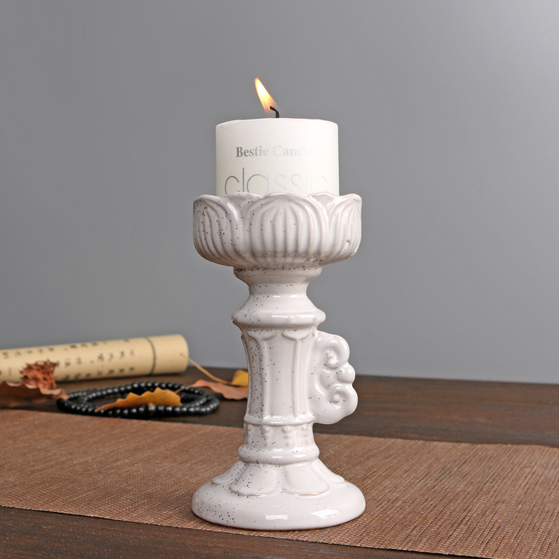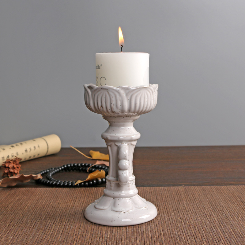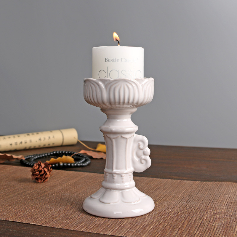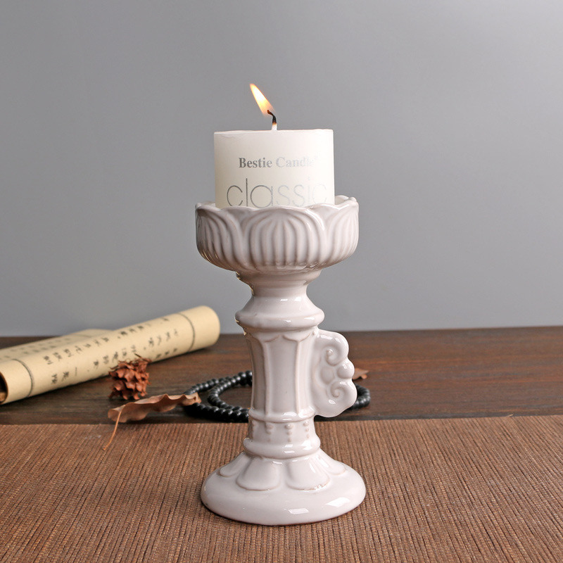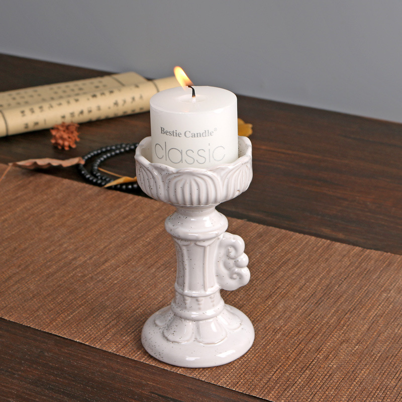 古罗马陶瓷烛台蜡烛托北欧家居家用摆件气氛装饰白色高脚蜡台批发