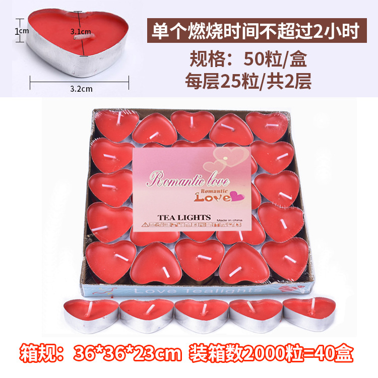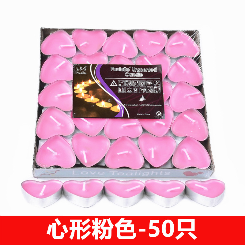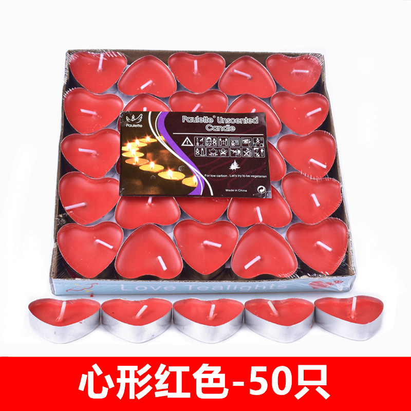 跨境50个无烟蜡烛浪漫创意生日心形圆形网红蜡烛酒店茶蜡煮茶批发