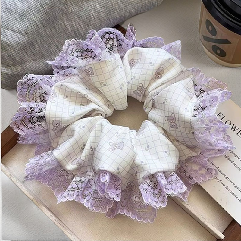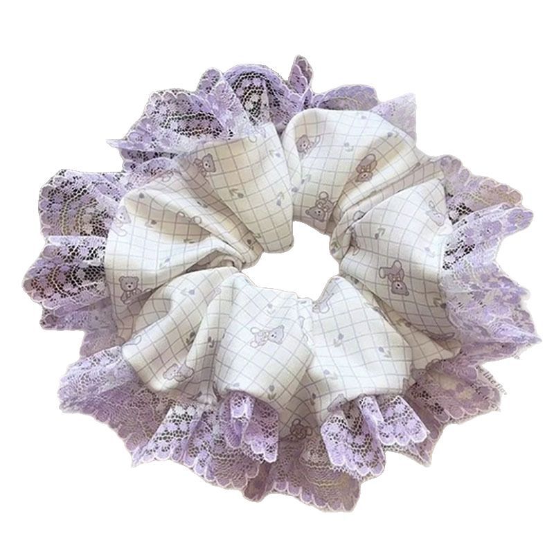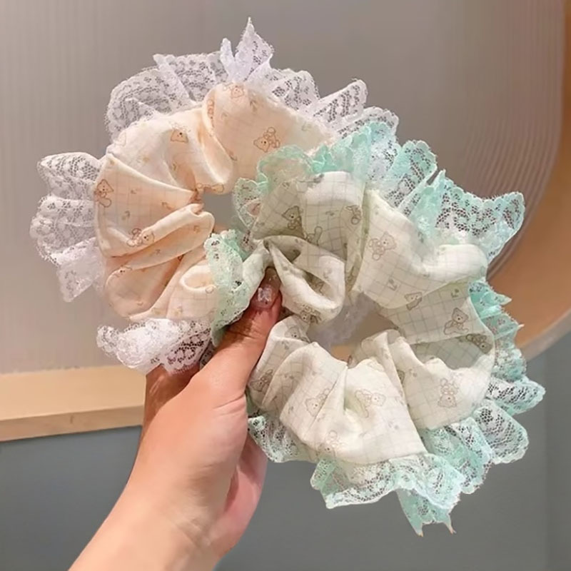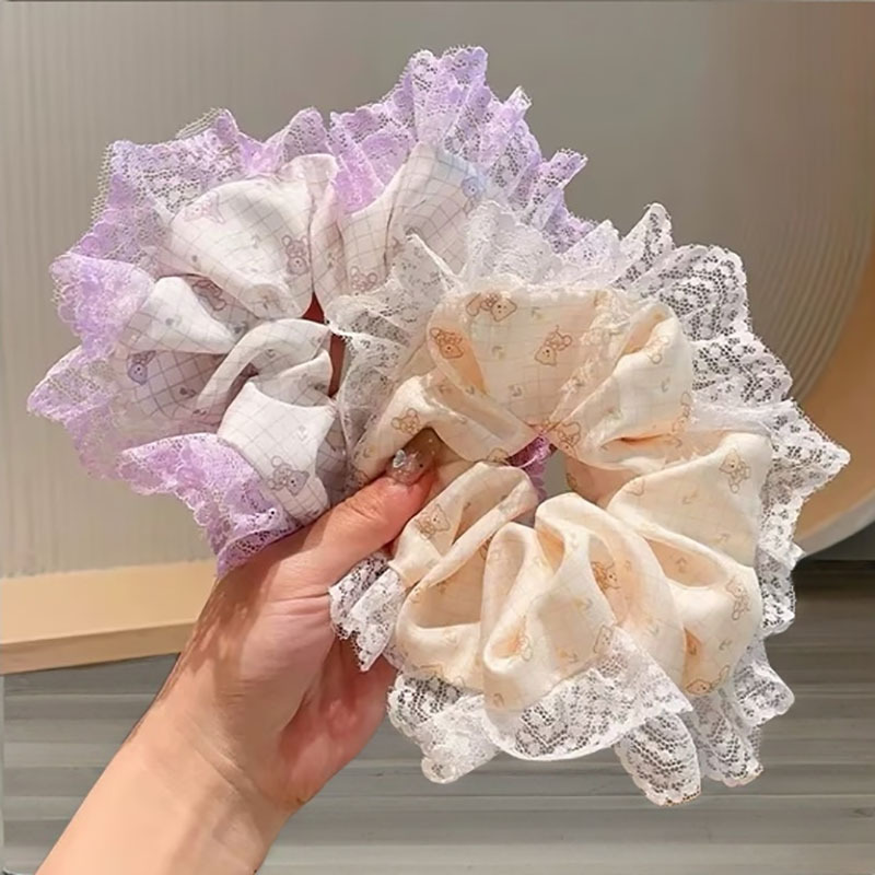 2025新款春夏韩系粉色碎花蕾丝大肠发圈女高级感马尾绳甜美头饰