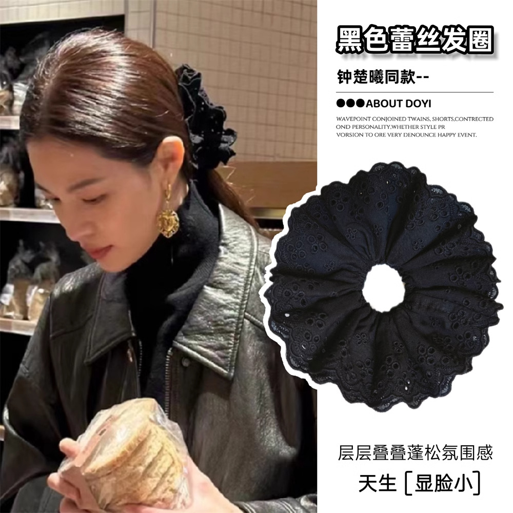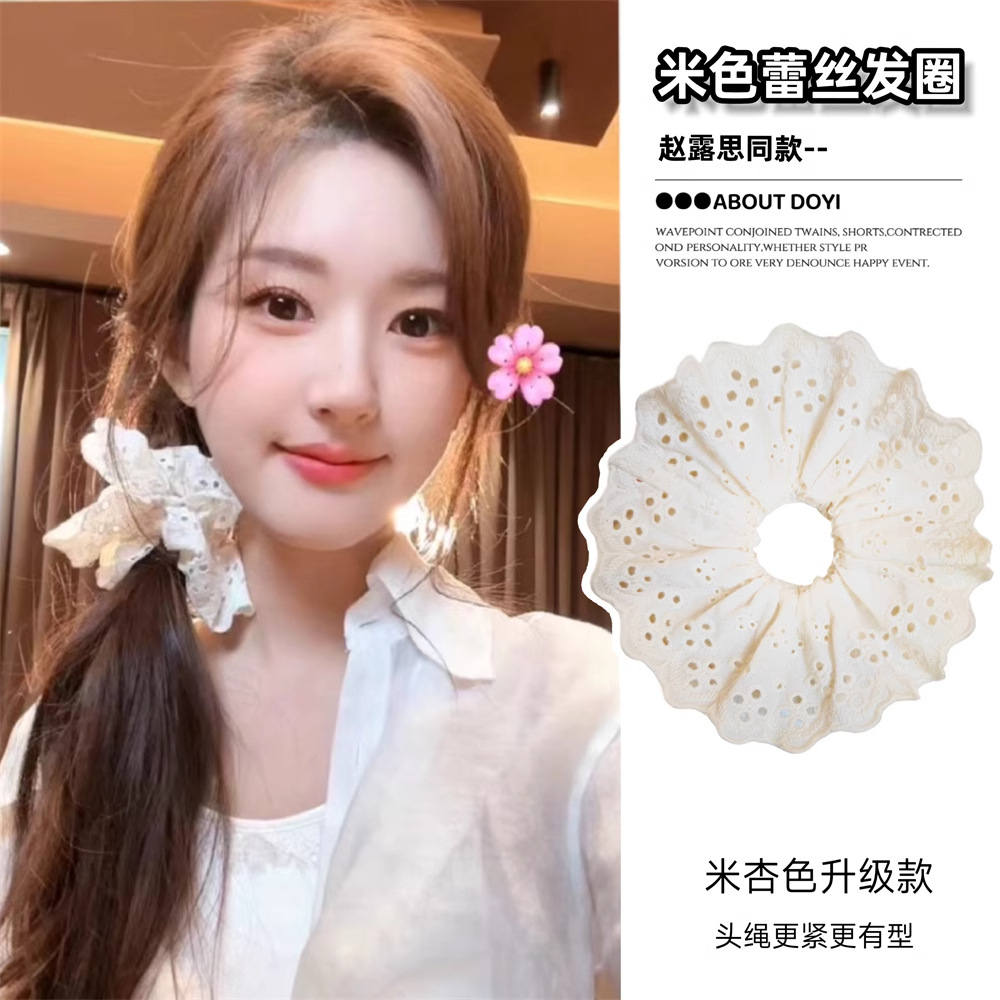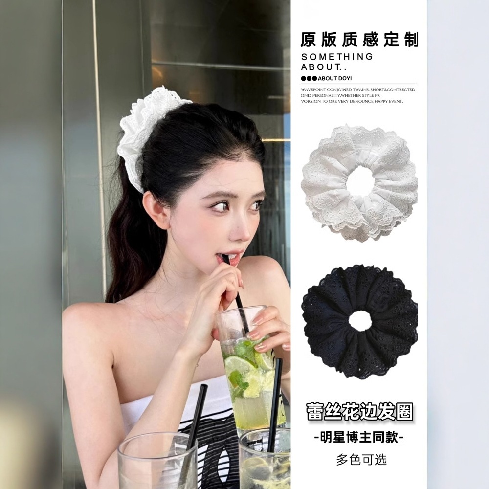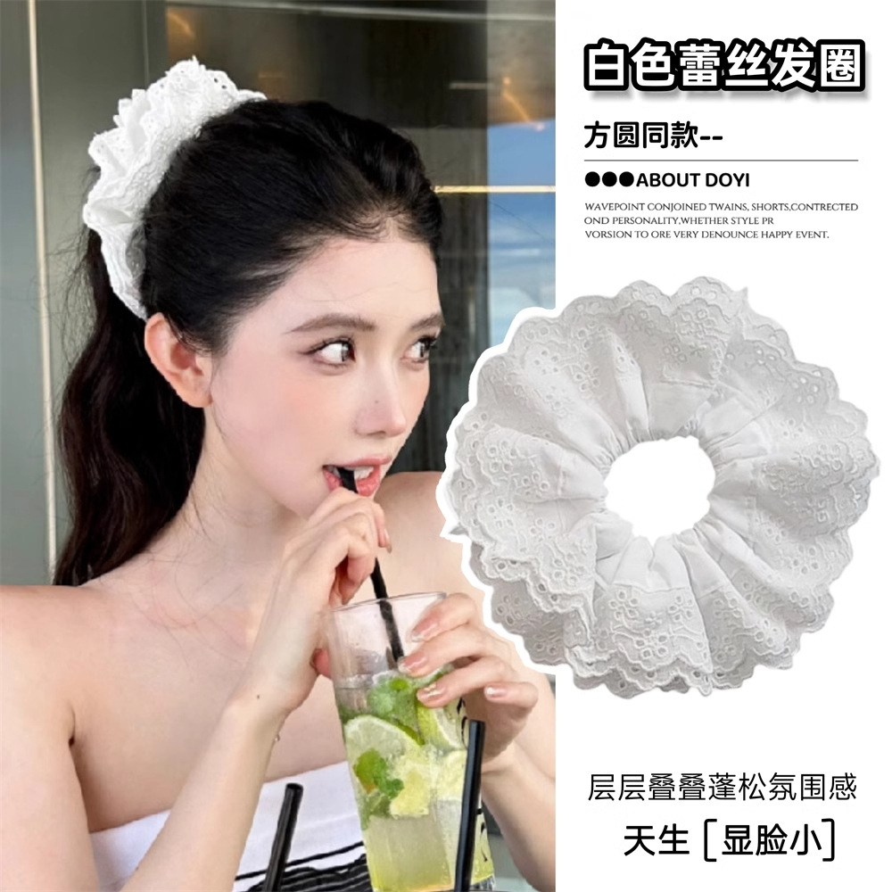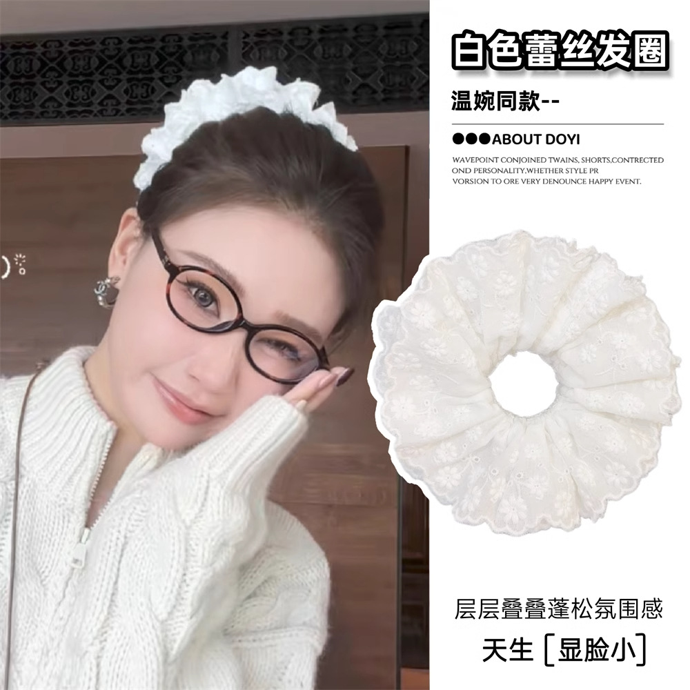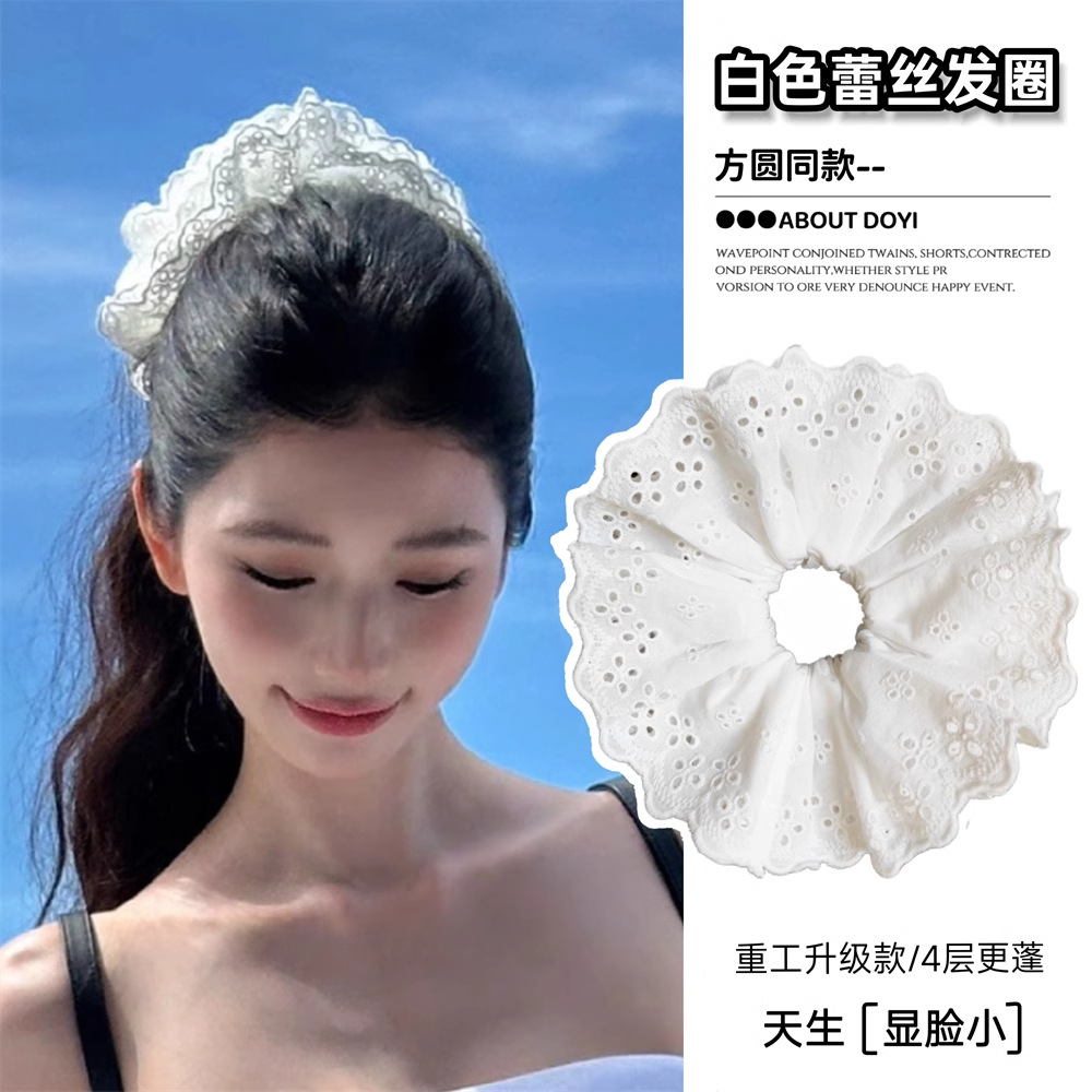 芭蕾风头饰法式蕾丝镂空发圈公主超大头花女发绳白色蕾丝发圈大号